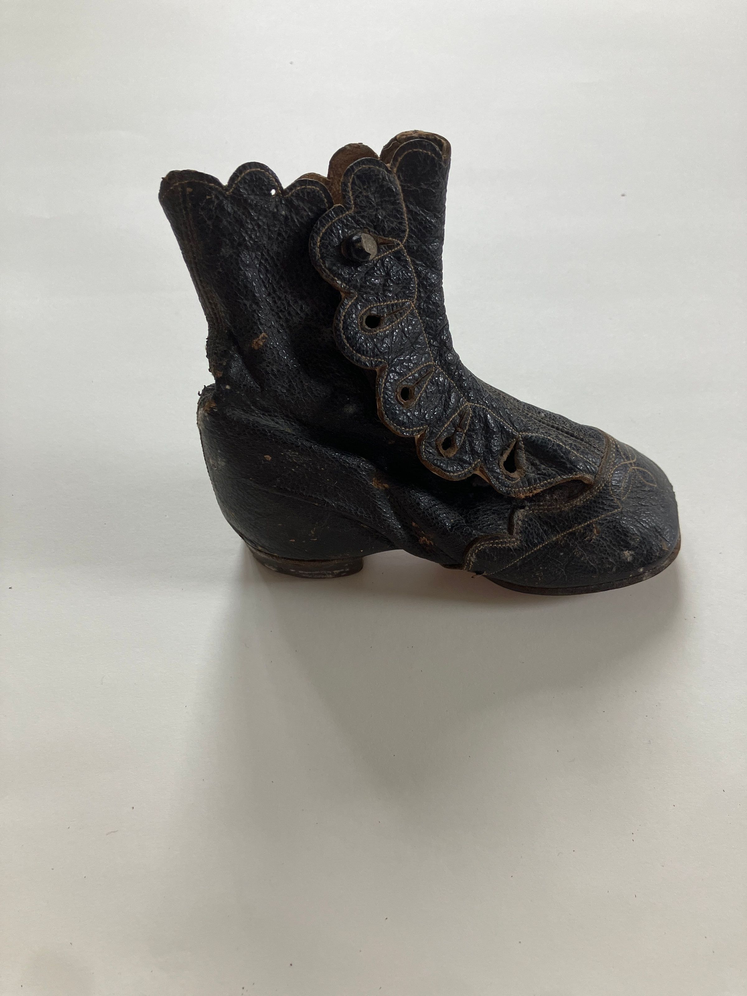 SPECIAL SIGNIFICANCE: Nettie Robinson's (1871 - 71) shoe. Sister of Henry Hatch's mother, Blanch L. Robinson Hatch.