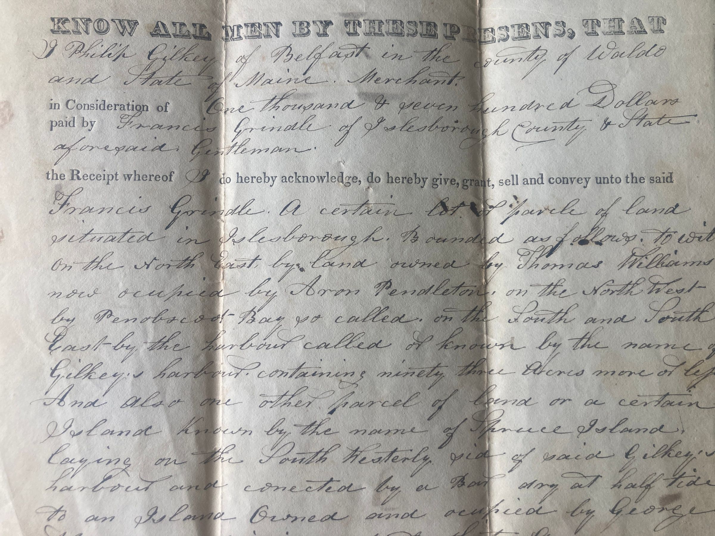 Philip Gilkey to Francis Grindle, parcel of land in Islesborough, Oct. 22, 1831.
