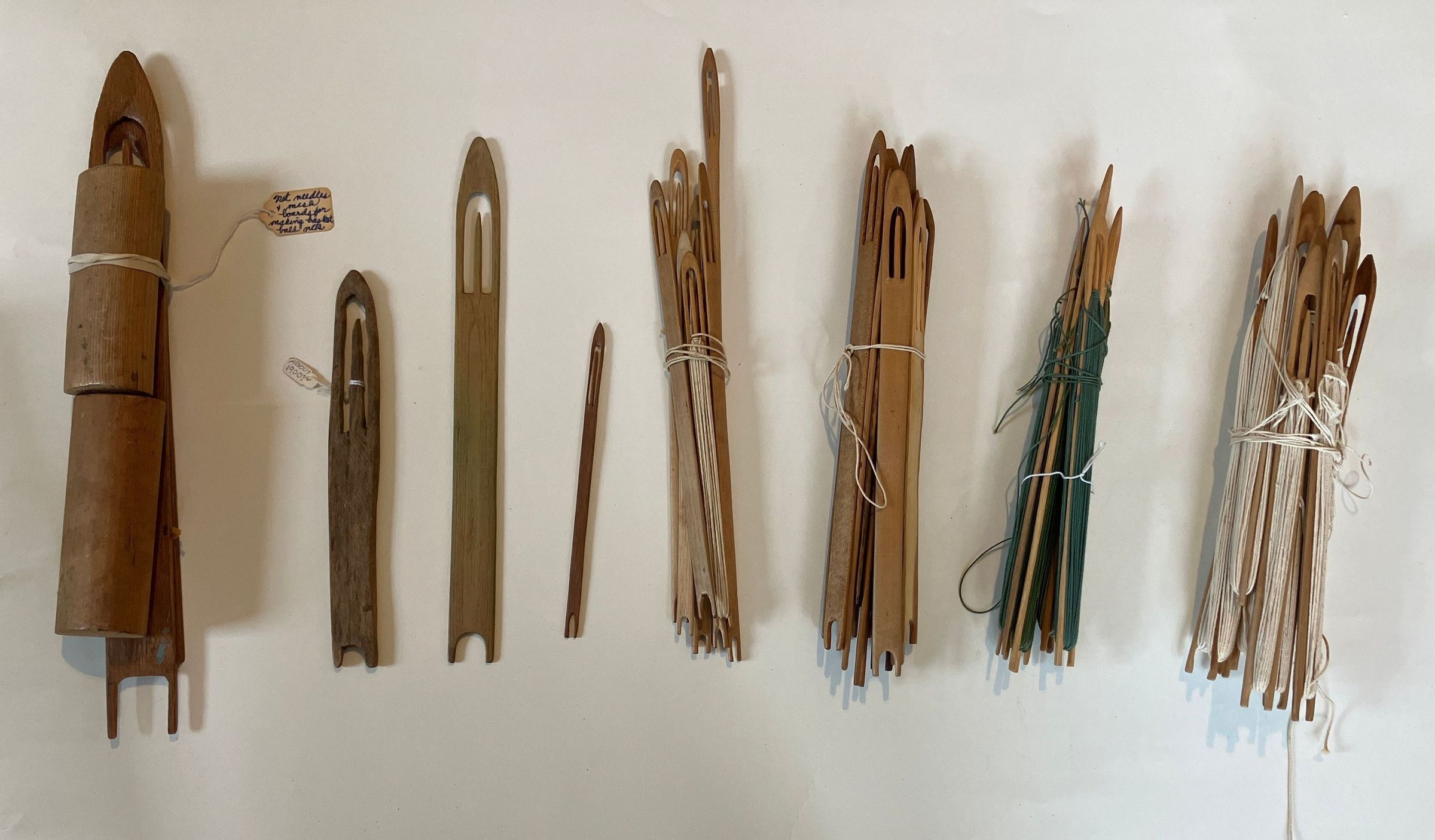 1 large (1"x8") handmade shuttle, labelled "c. 1900"