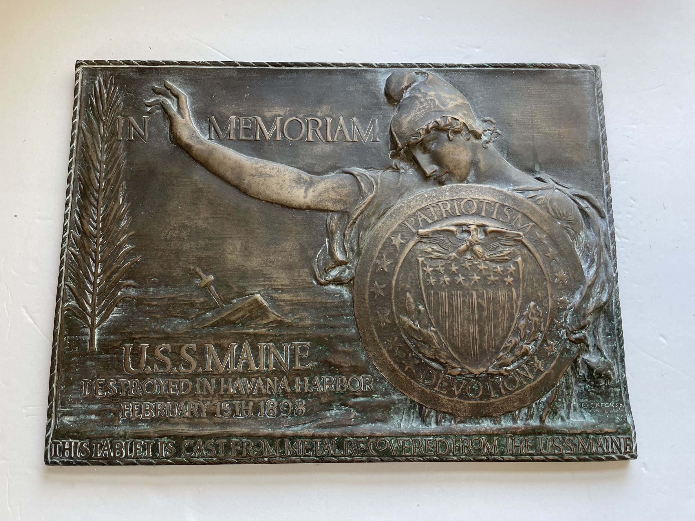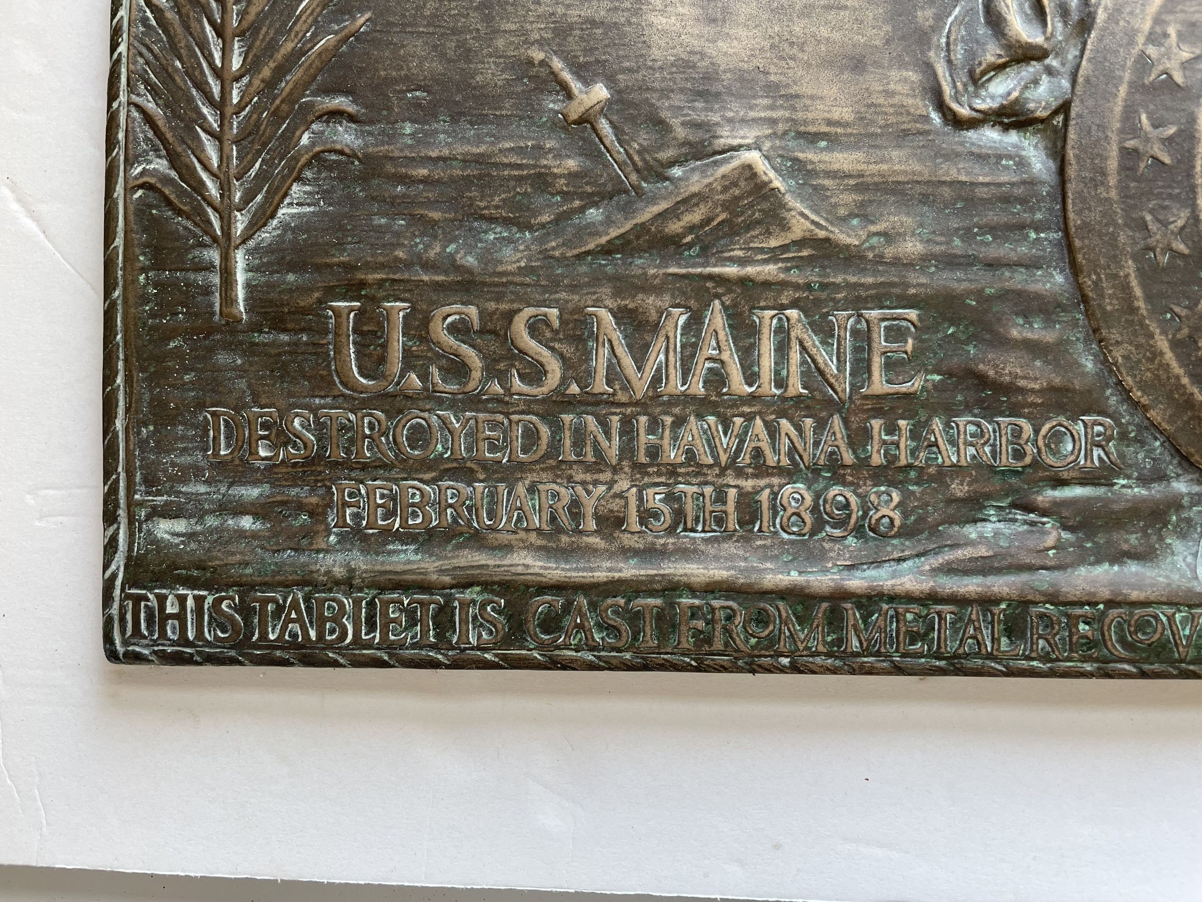 Large bronze plaque cast from metal recovered from the USS Maine.