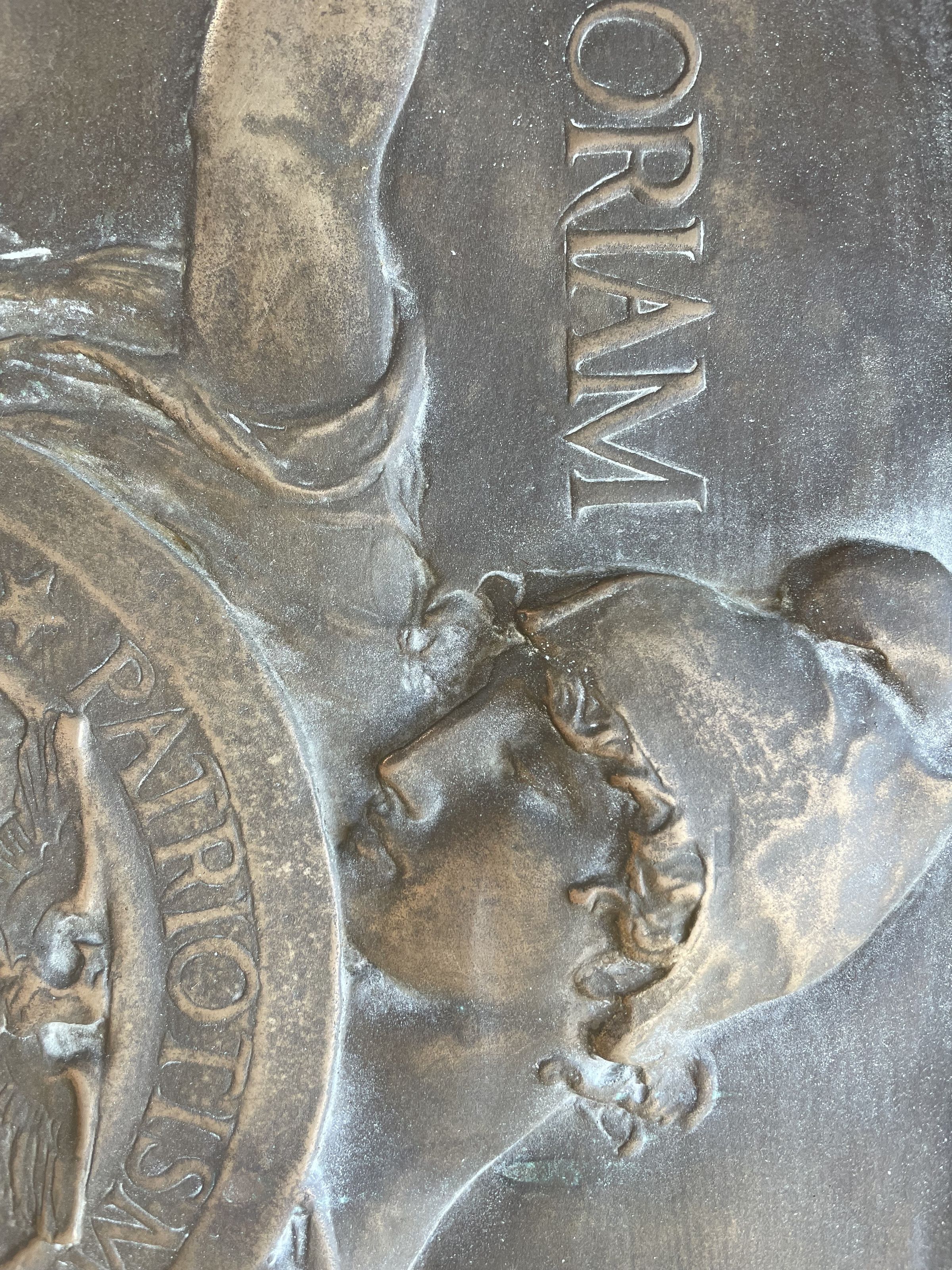 Artist and foundry marks on bottom right of the plaque. "C. Kecks SC. 1913 cast by Jno. WIlliams Inc., N.Y."