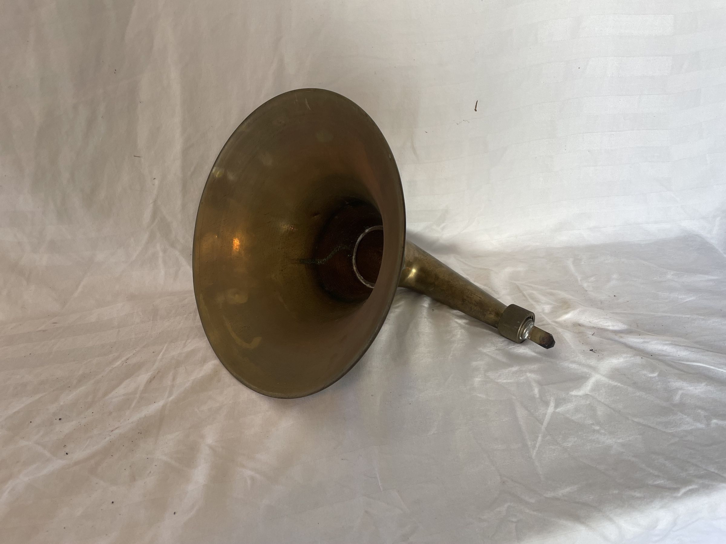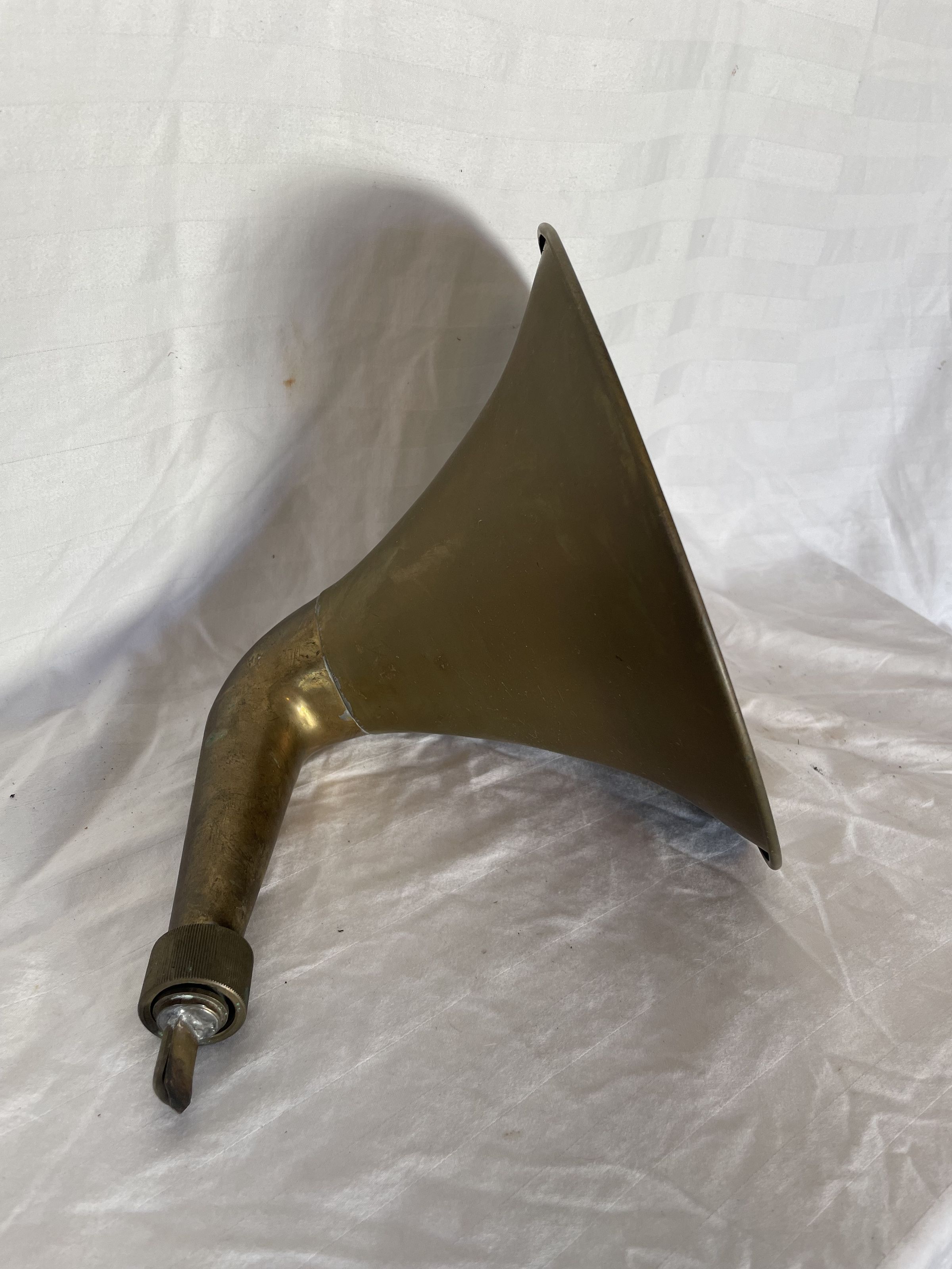 A brass, tulip shaped phonograpgh or trumpet of sorts. I wonder if this goes with the radio.