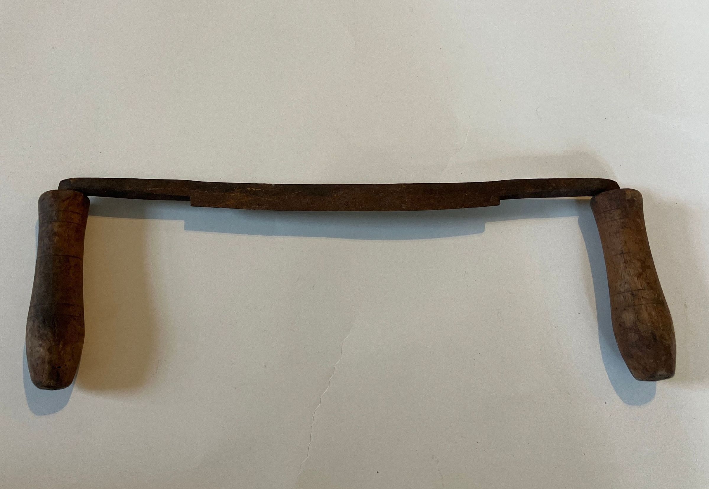drawknife or spokeshave or drawshave: woodworking tool, metal blade with sharpened edge 16" long with wood handles. Came from the Clarence G Nevels grocery store, now the site of the Paul Pendleton home.