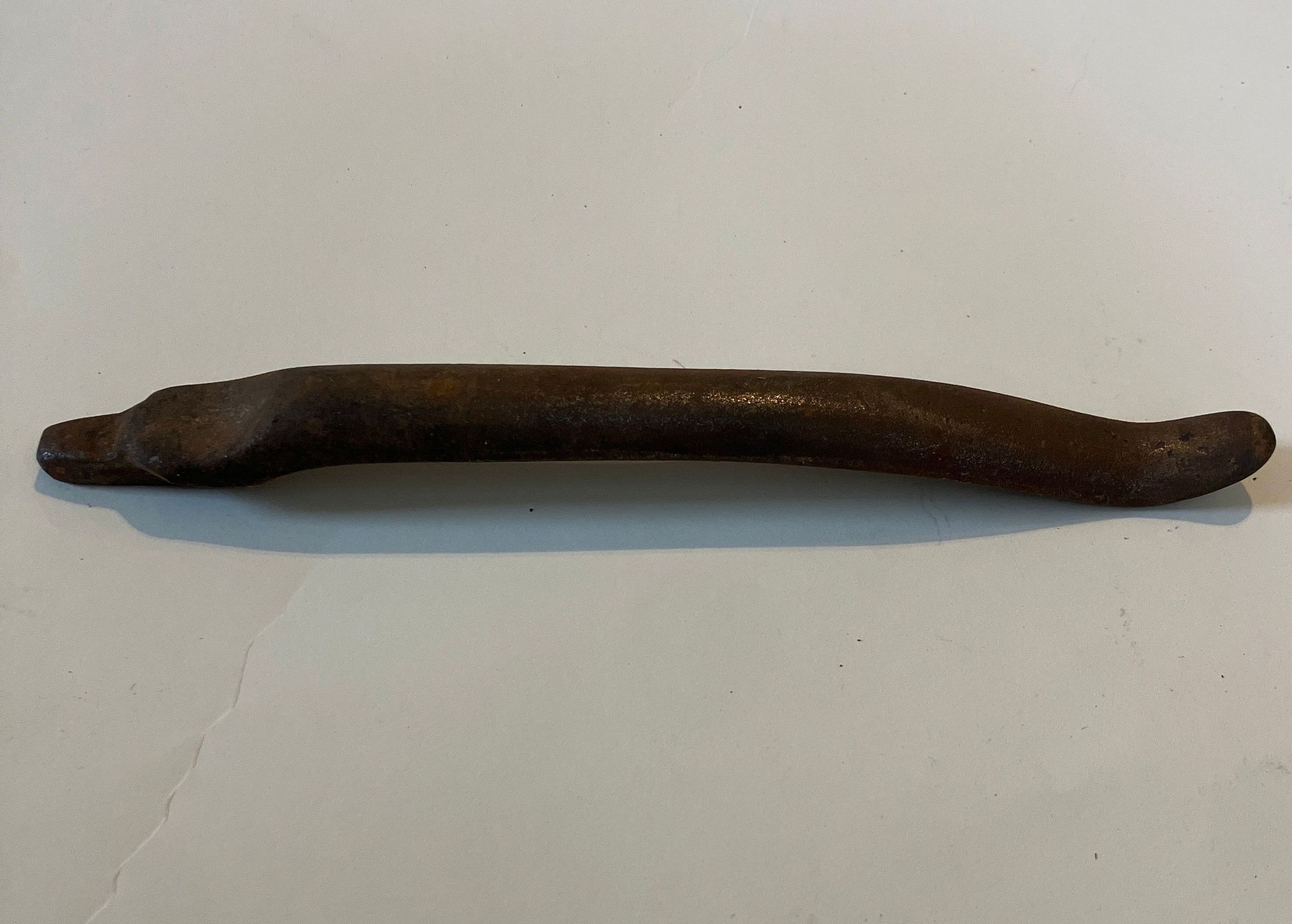 7 3/4" iron stove lid lifter. From the Clarence G Nevels grocery store in Dark Harbor, now the site of the Paul Pendleton home.
