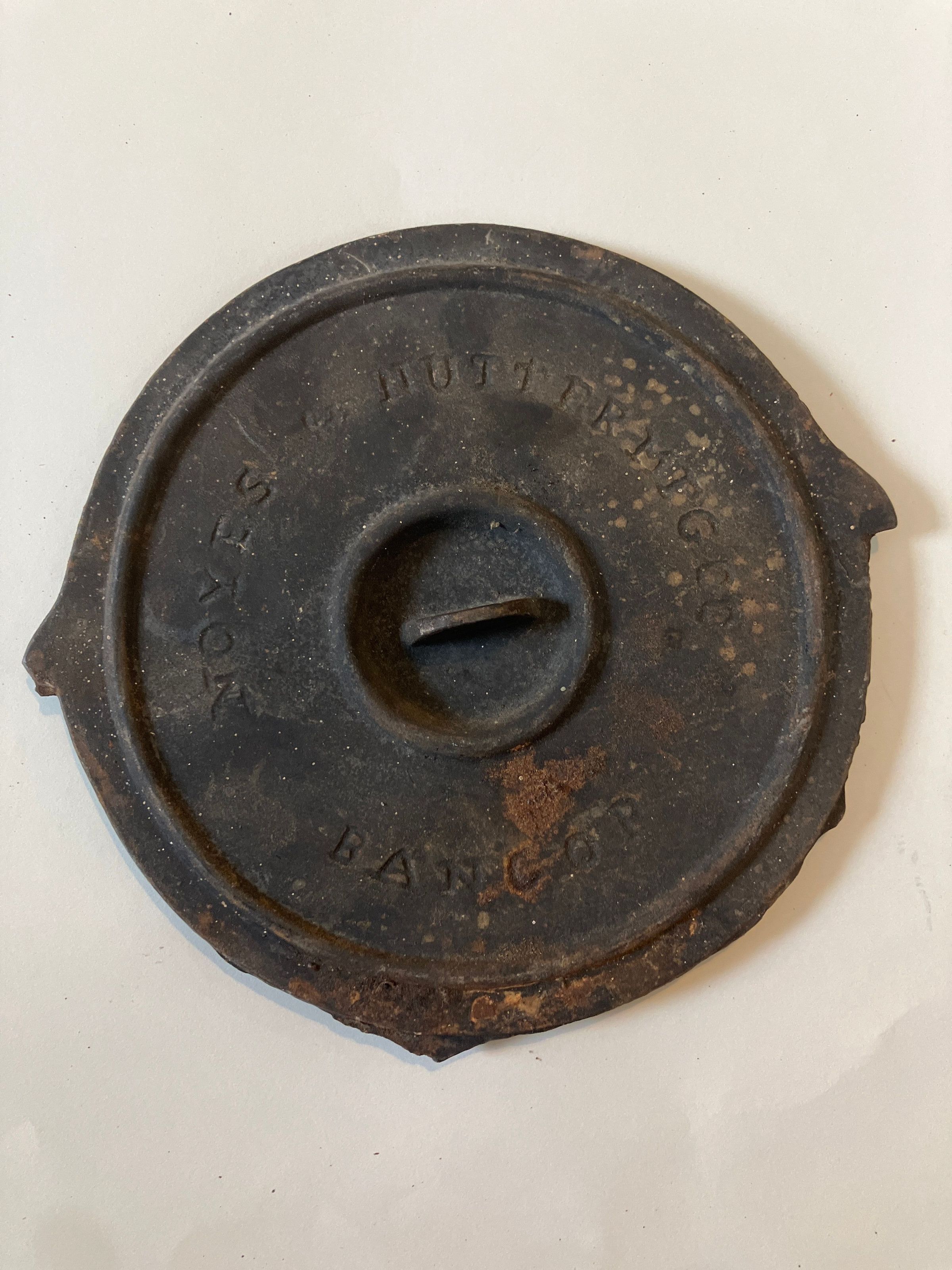 6.5" diam iron circle when suspended in stove pipe serves to regulate the draft. From the Clarence G Nevels grocery store in Dark Harbor, now the site of the Paul Pendleton home.
