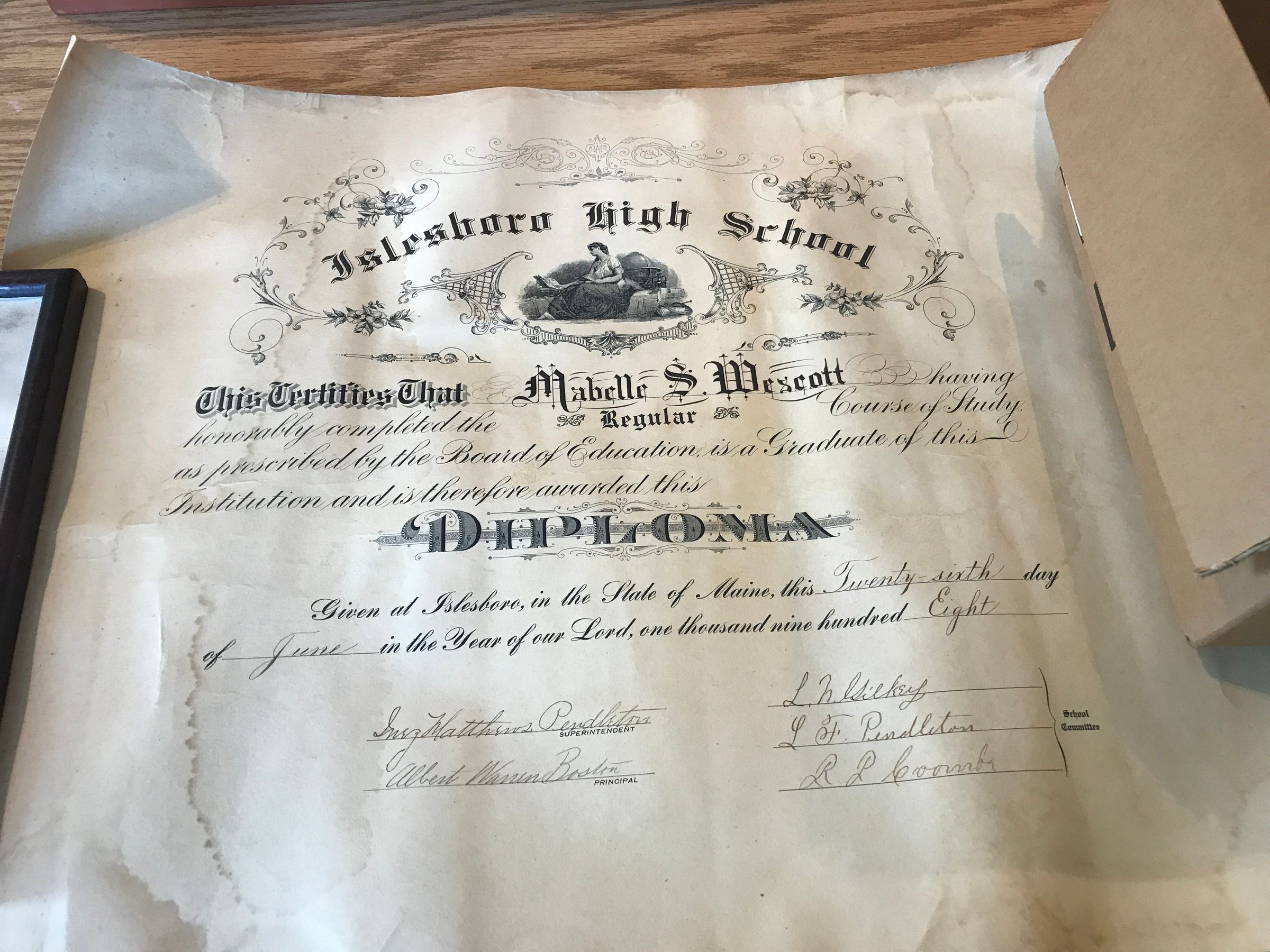 IHS Diploma of Mabelle S. Wescott
