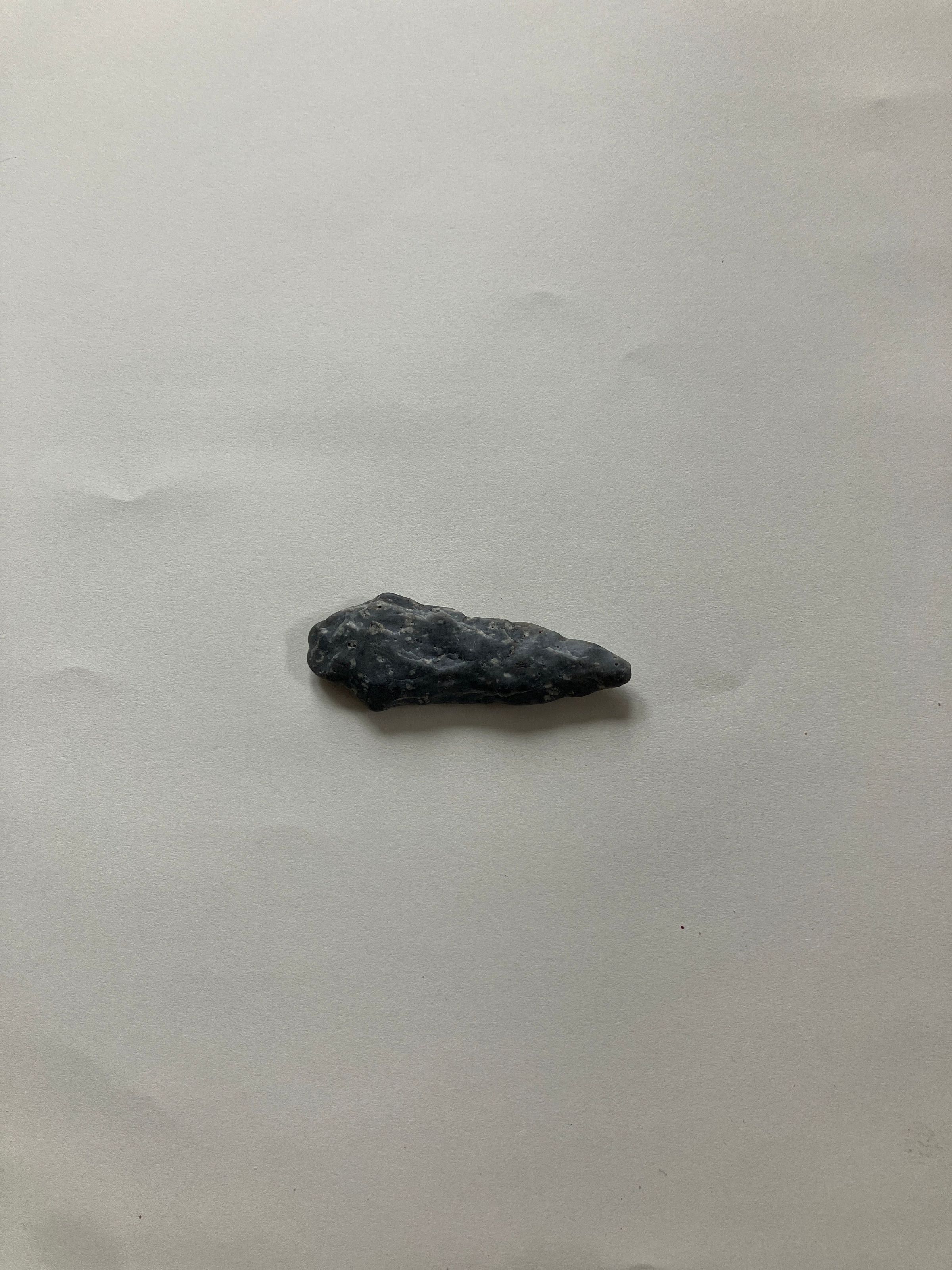 Found August 30th, 2007 at BigTree Beach on Seal Harbor by Benjamin Scammell, grandson of the Hathaways of Pendleton Point Road. A photograph was sent to Steven Cox, authority on Native Americans in Maine. He replied that this type of arrowhead or spearhead was used from7000-1500 years ago; from the Middle Ceramic or Middle Woodland period. It is volcanic rock, either rhyolite or felsite from a local Penobscot Bay volcanic, or it could be Kineo rhyolite, a material that outcrops around Moosehead Lake, but was brought down to the central coast in some quanity by glacial transport during the last Ice Age.