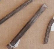From the set of tools belonging to and well-used by Frederick A Lee, master mason of Islesboro during the first half of the 20th century. See book "Summer Cottages of Islesboro" p. 119. This chisel is 10.25" long with an octagonal shaft 1" diameter 10" long which tapers to a blunt edge for chipping stone or brick. The top is well mashed by hammer blows.