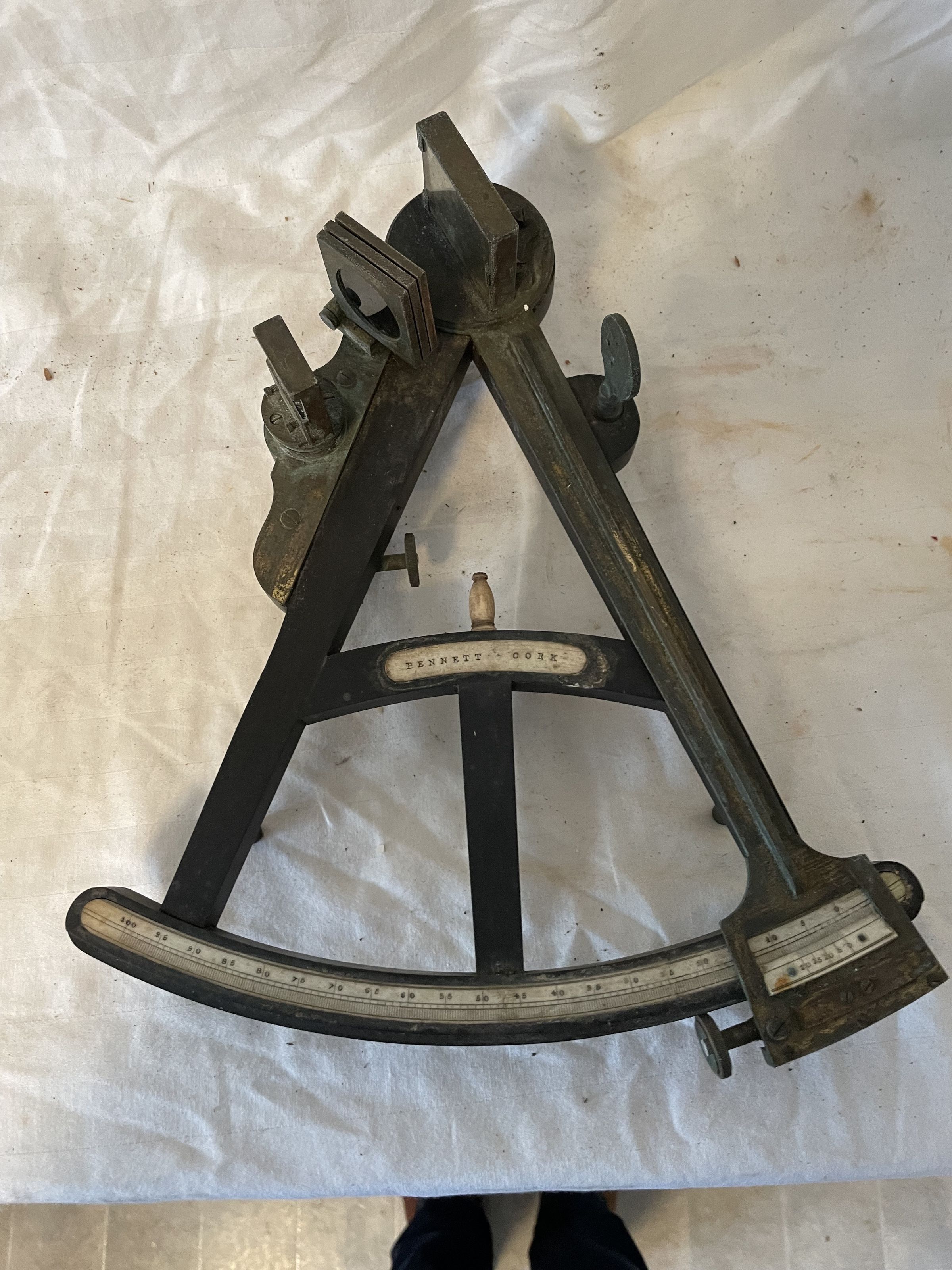 A quadrant that reads Bennett Cork, dealer: I.S. Thaxter Boston. Used by Captain Lincoln Warren Gifted by: Mr. Charles Dana Gibson.