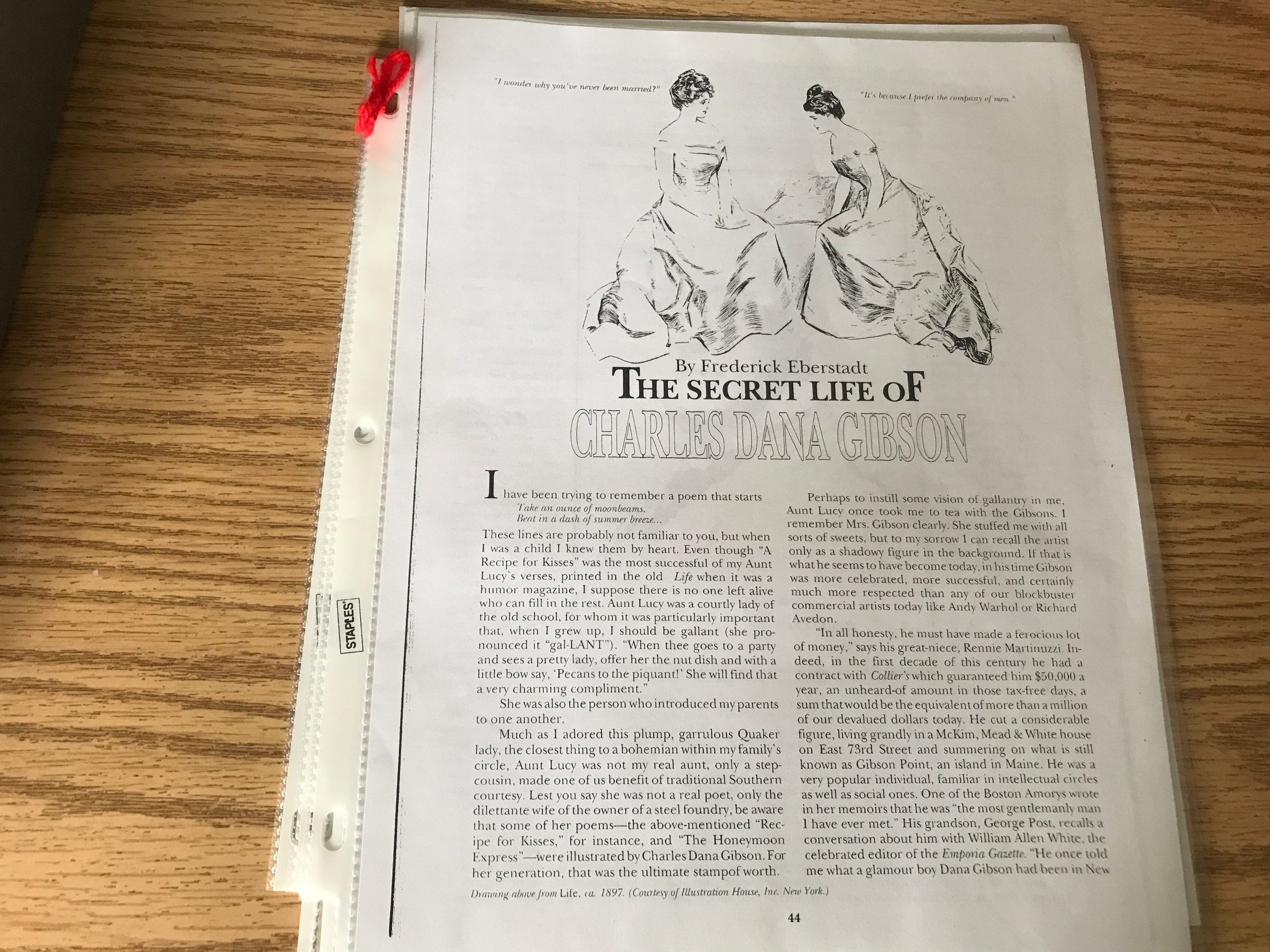 Biographical materials on Gibson, notes on setting up the exhibit, sketches, etc from Amanda Hobart