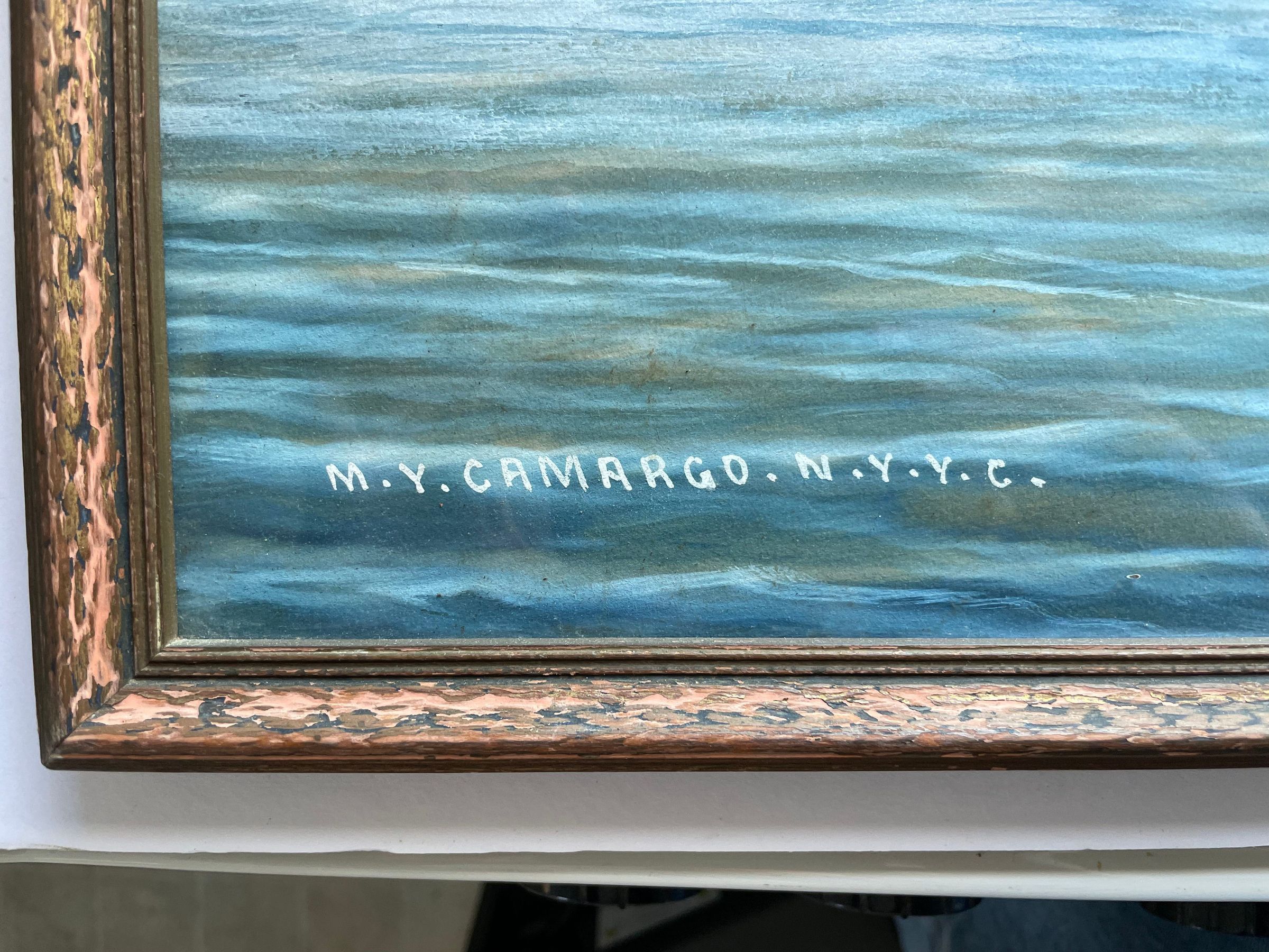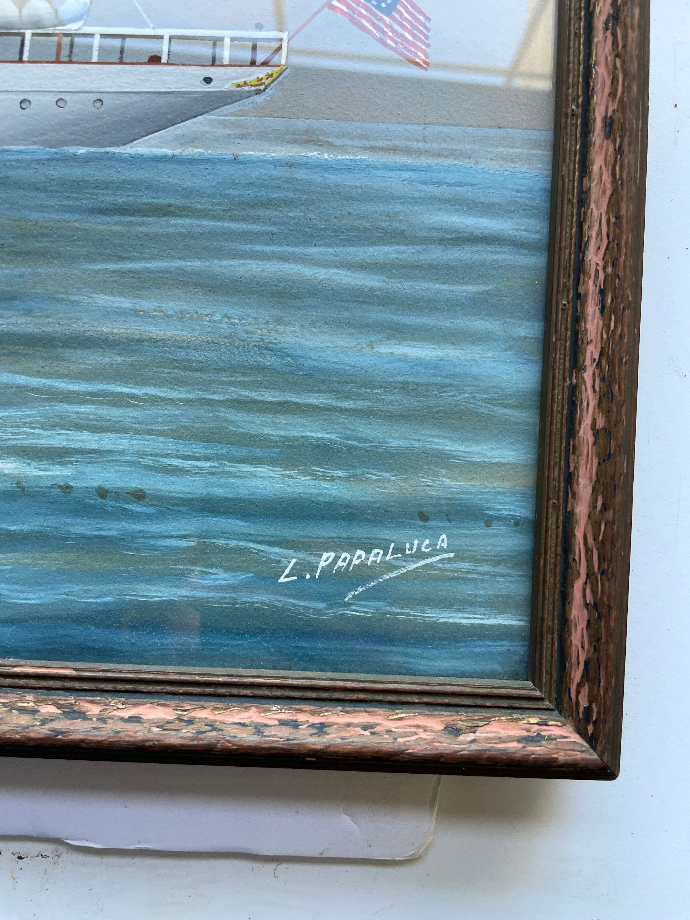 Print of a white steam ship. Signed in the bottom right corner L. Papaluca
