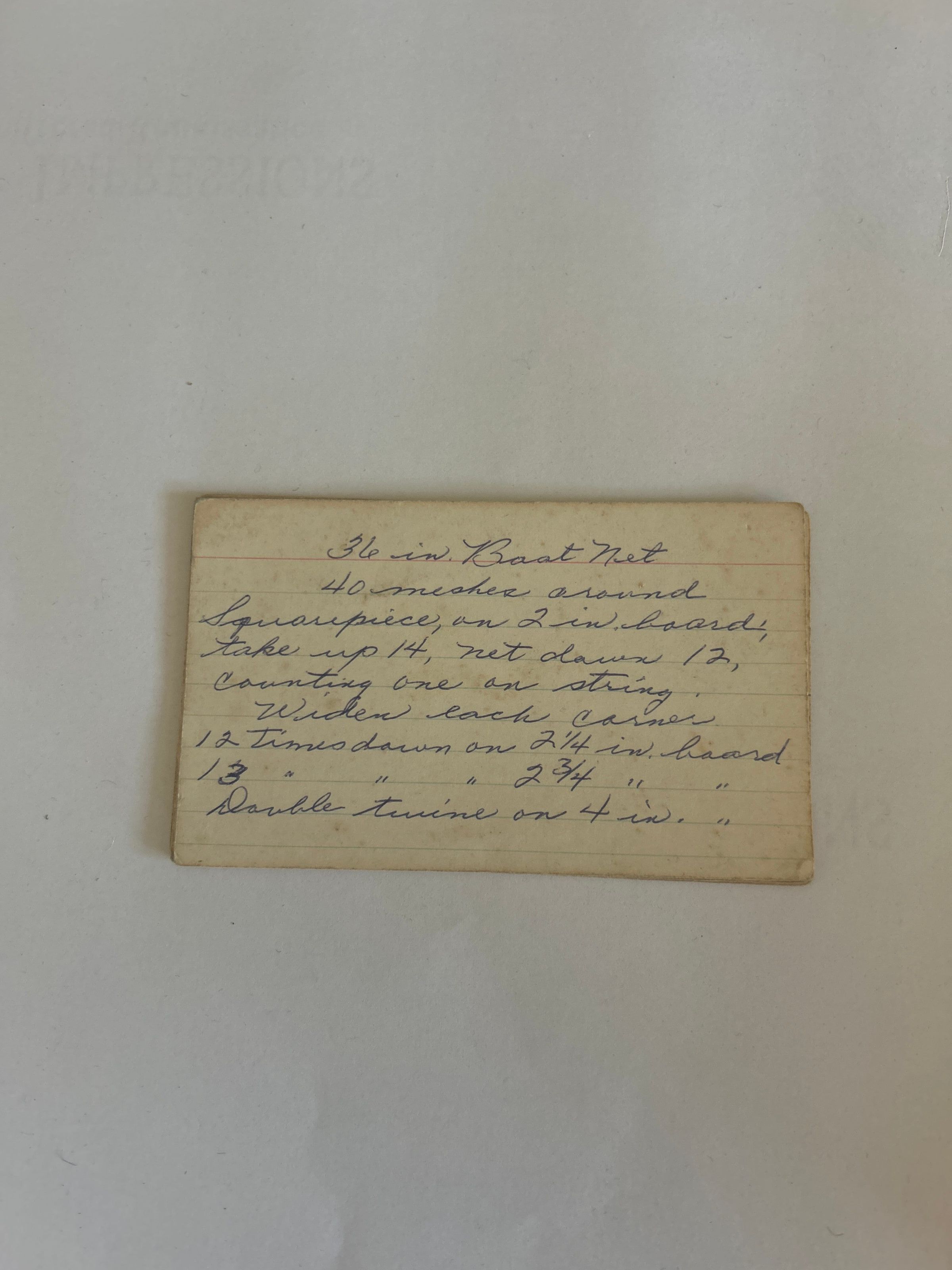 Instructions for making 30" and 36" Boat Nets, 24" Trout Net, 24" Front Nets, 42" Heavy Boat Net, and a note "Orders from Ed Cummings."