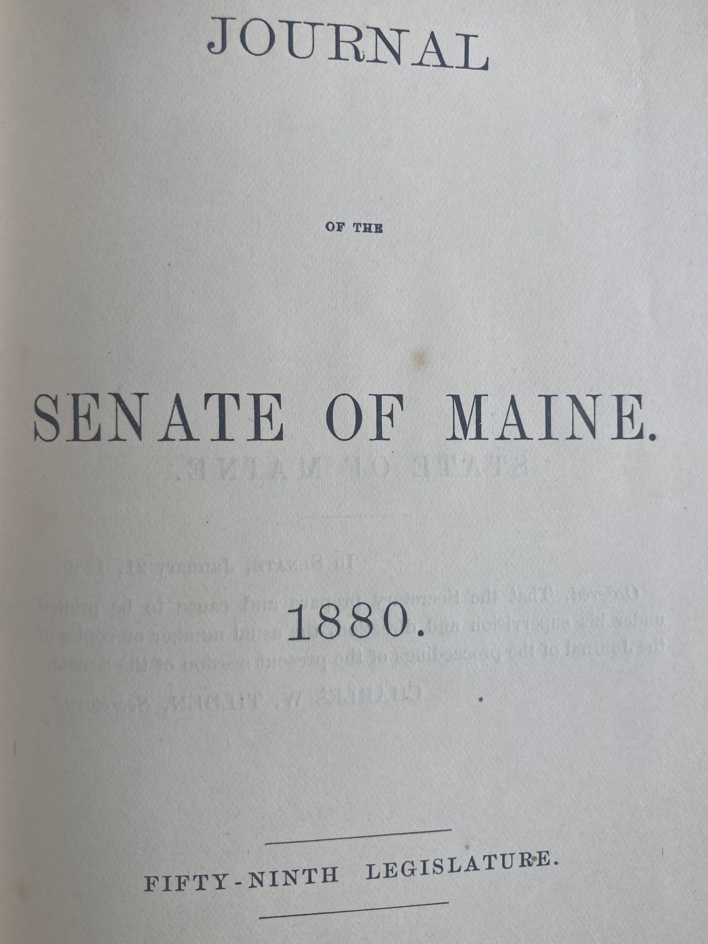 Journal of the Senate of the State of Maine, 1880. Inscription: C. W. Sherman, Islesboro, Me. 1880 Calvin Sherman