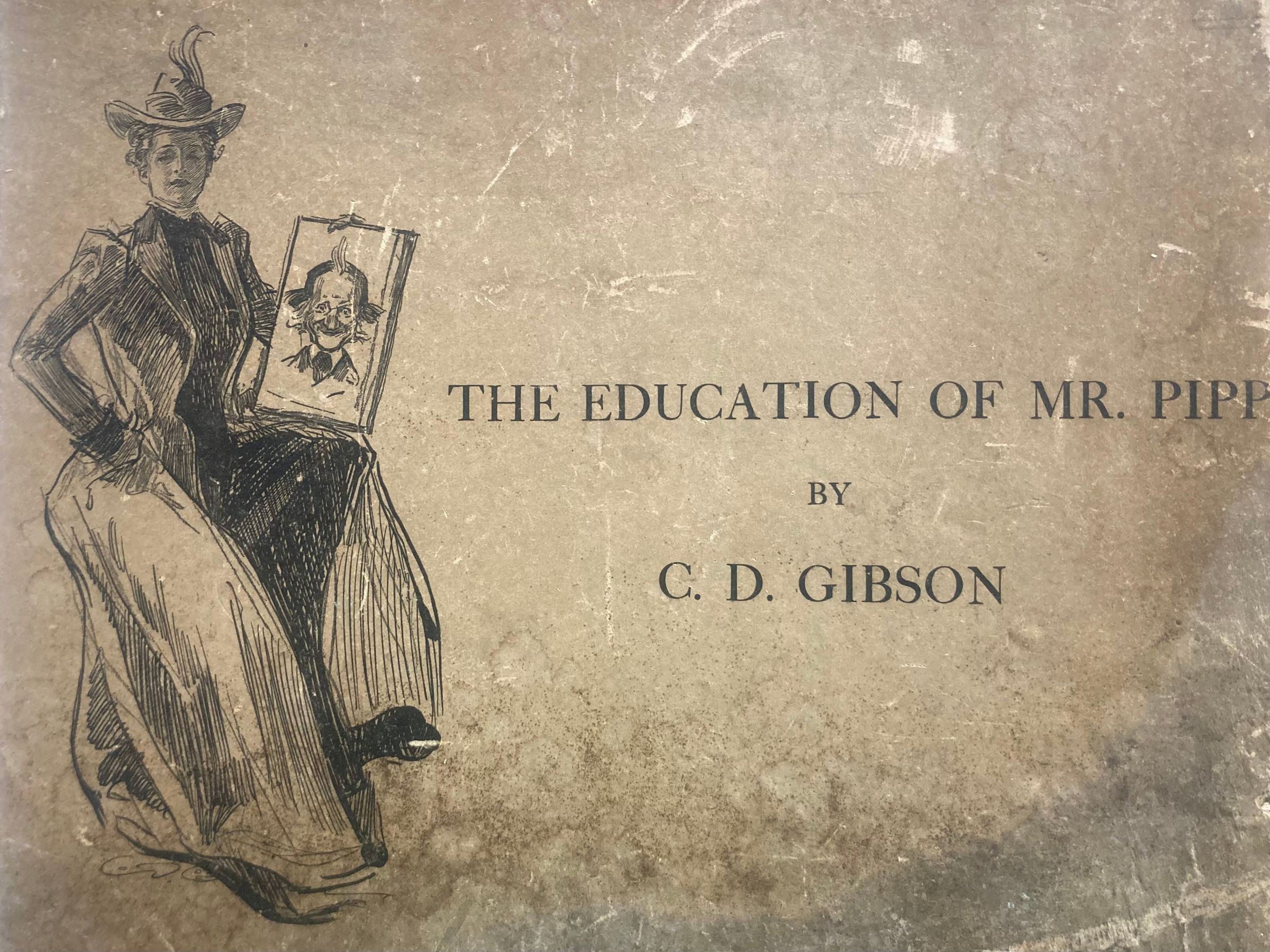 Book of drawings by Charles Dana Gibson, "The Education of Mr. Pipp," published by R. H. Russell 1899, copy 2. "Frances Train" inscribed on half title page.