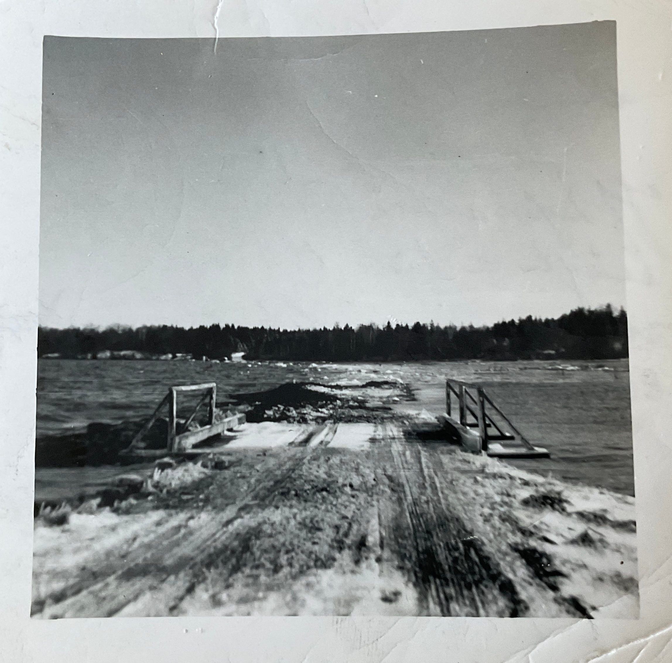 Photo of Sprague's Beach showing washed-out road, 1955Entry/Object ID