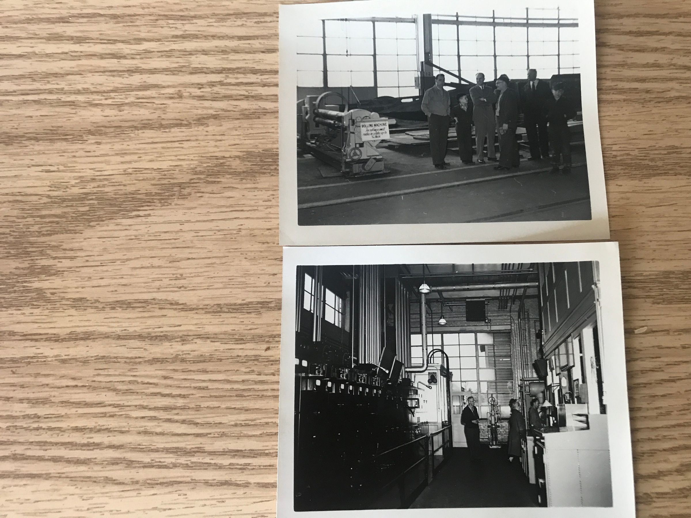 Collection of 6 b/w photos of the interior of Bath Iron Works - possible tour group?
