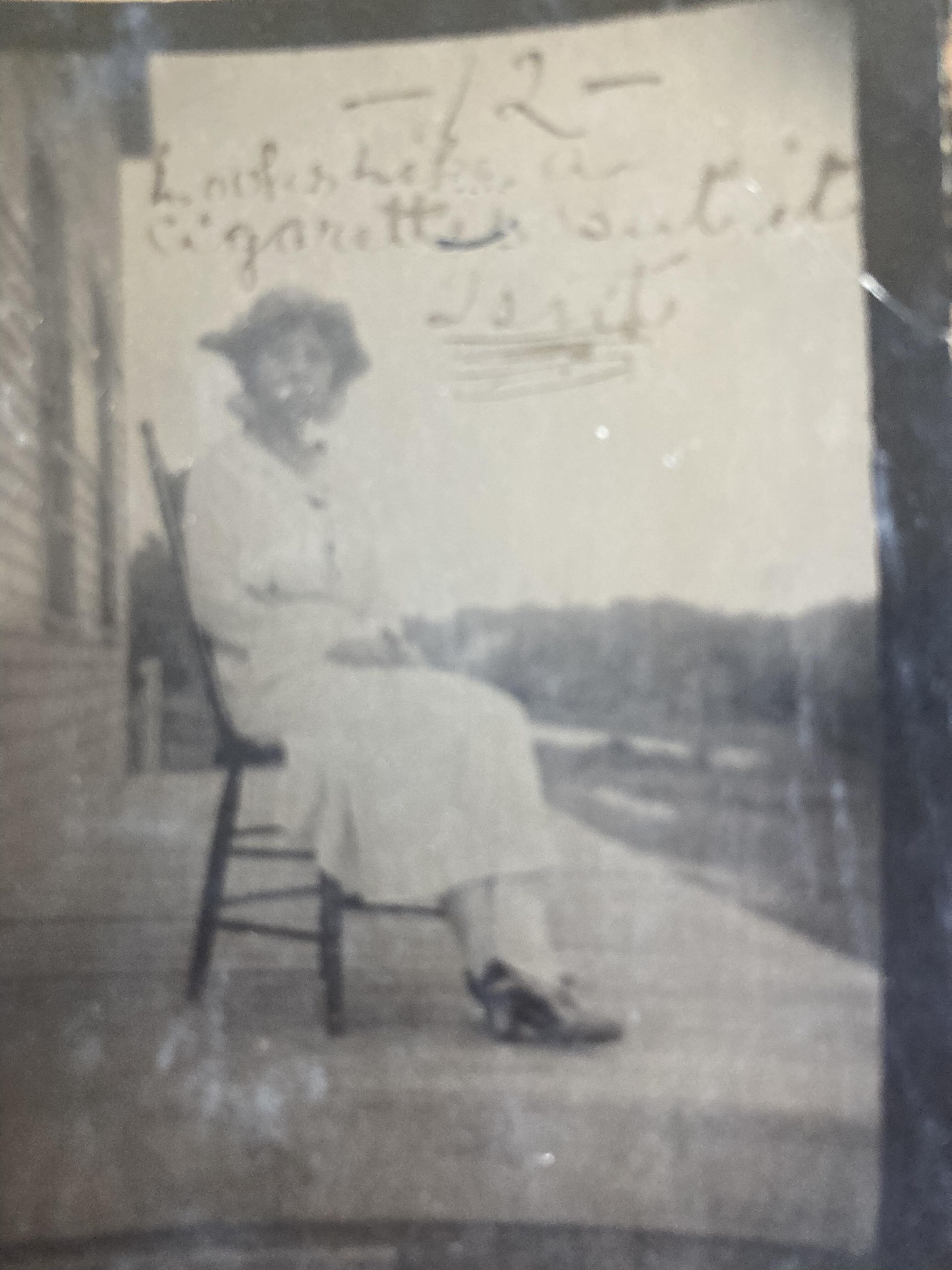 Four small (2.5" x 3.5") informal photographs on postcard stock, in poor condition, along with a single negative. They appear to have been taken at the same time and to have been torn from an album. Only one is identified on the verso: Alice Williams, age 12. Inscribed on the front: "-12- Looks like a cigarette but it isn't."