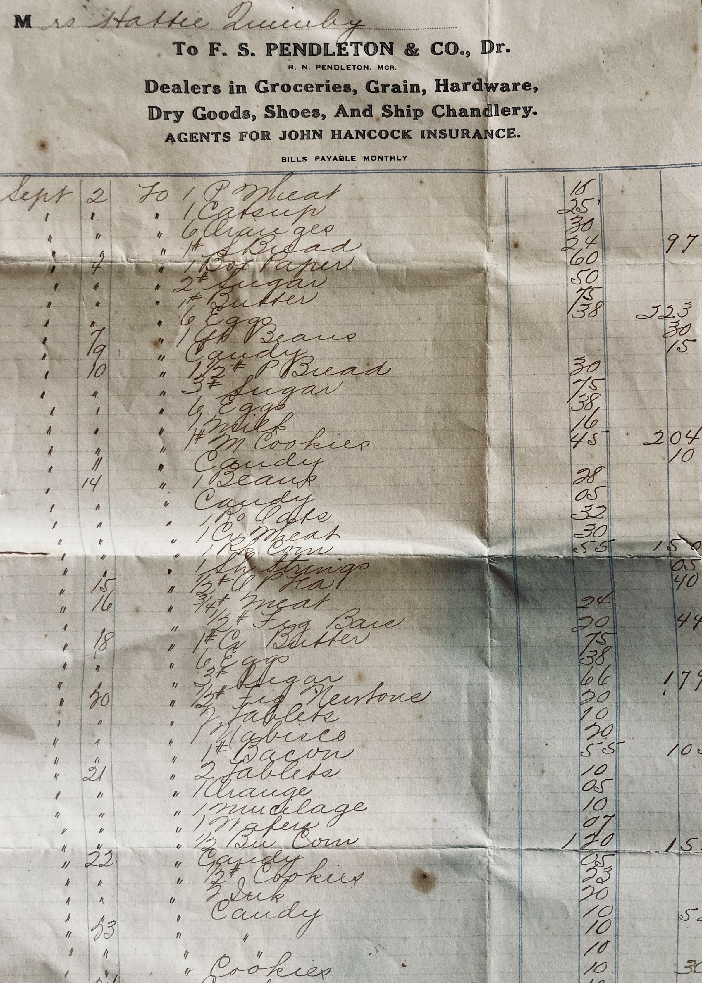 F. S. Pendleton invoice for Hattie Quimby, October 1920