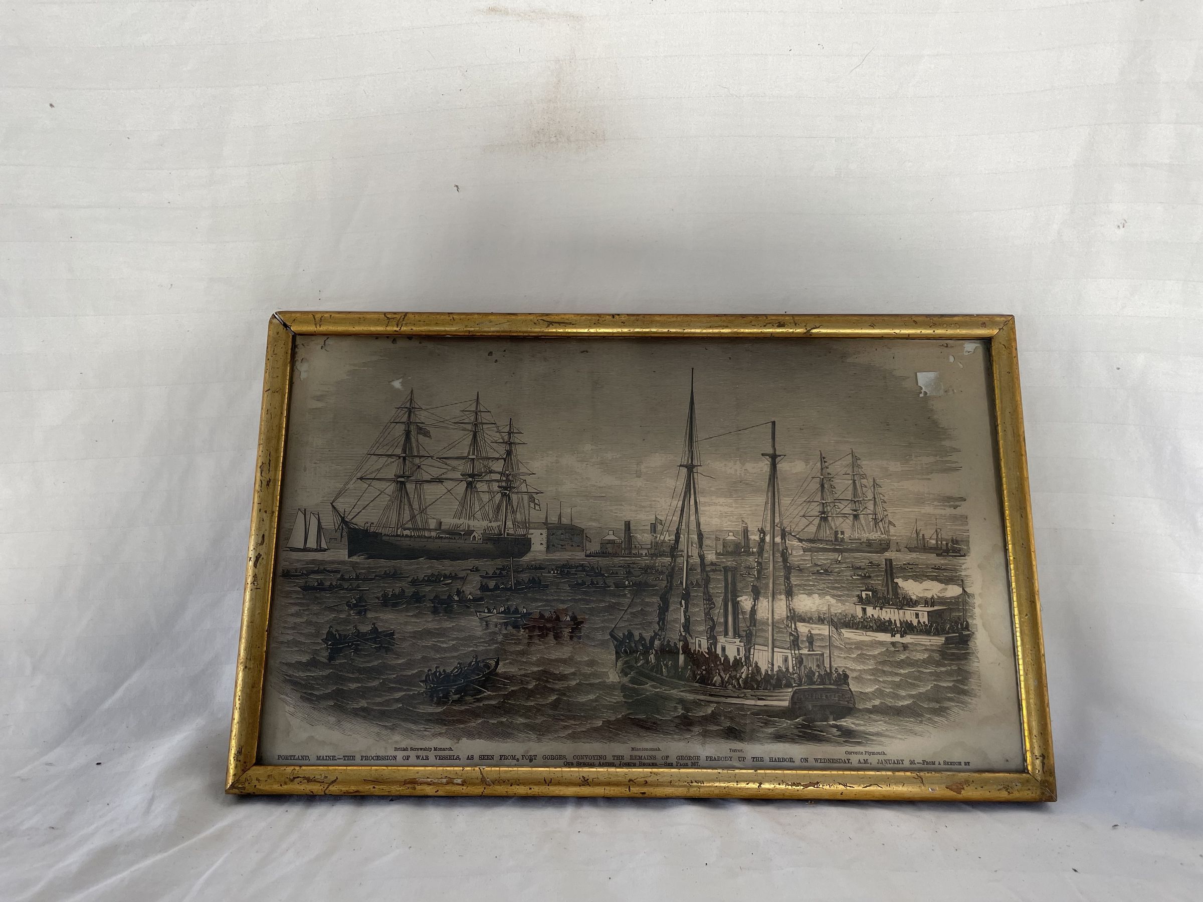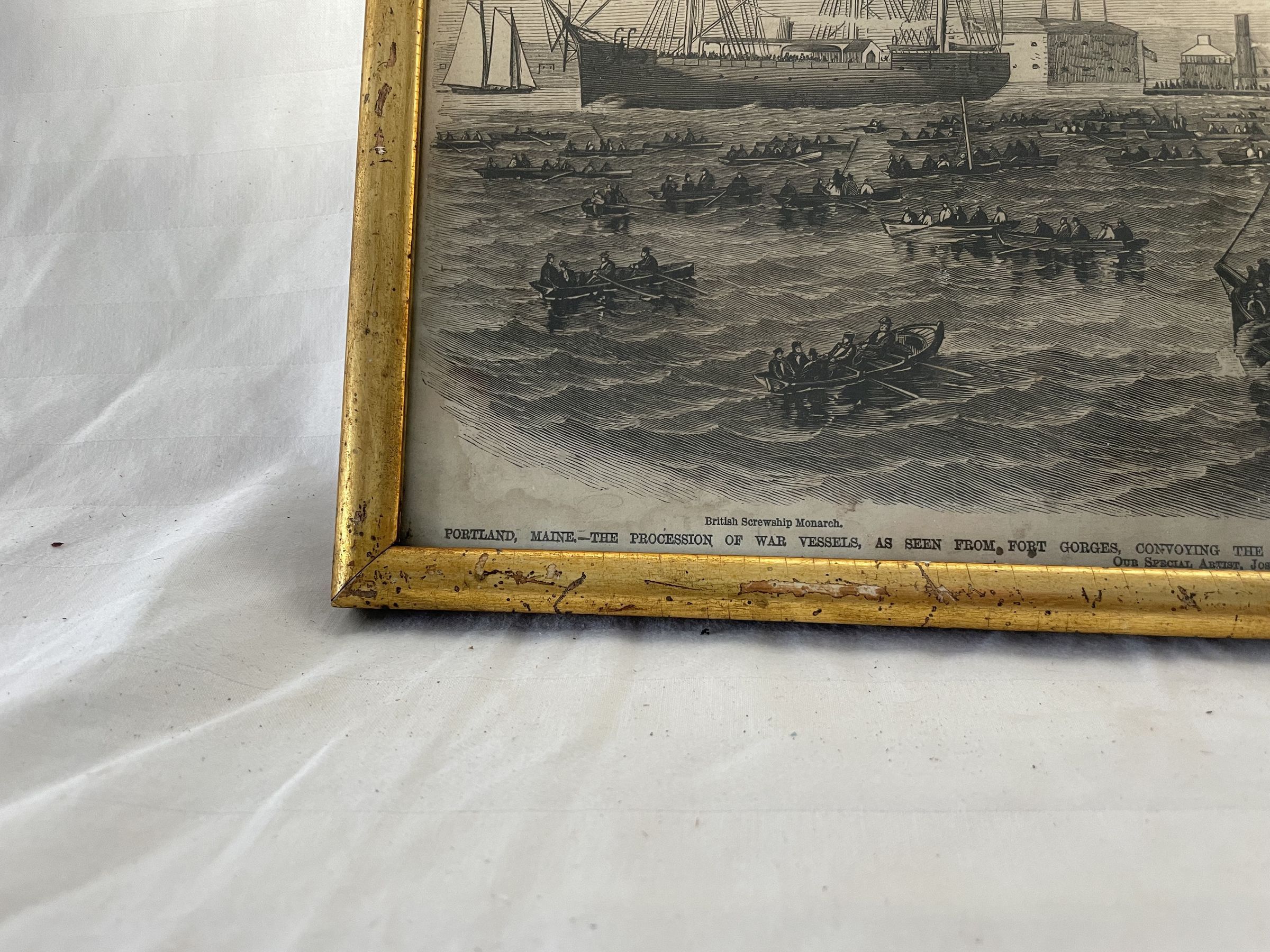 Framed Lithograph of "Portland, Maine-- The Procession of War Vessels, As seen from Fort Gorges"Entry/Object ID