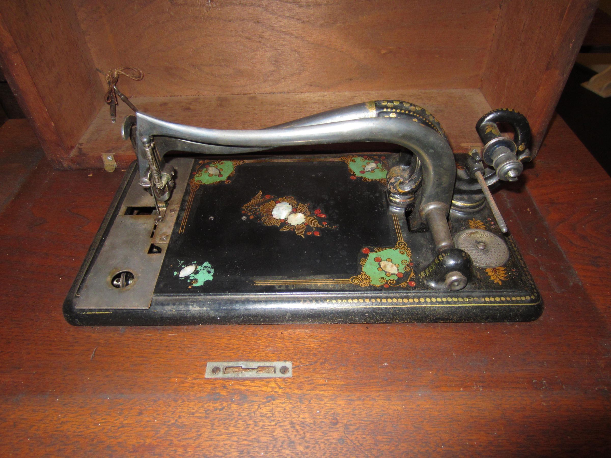 Original Inscription: On plate: No 217054 Grover and Baker S.M.Co. U.S.A. Patent Enter Nov. 12, 1850, Feb.11, 1851, June 22,1852, Feb.22, 1853,