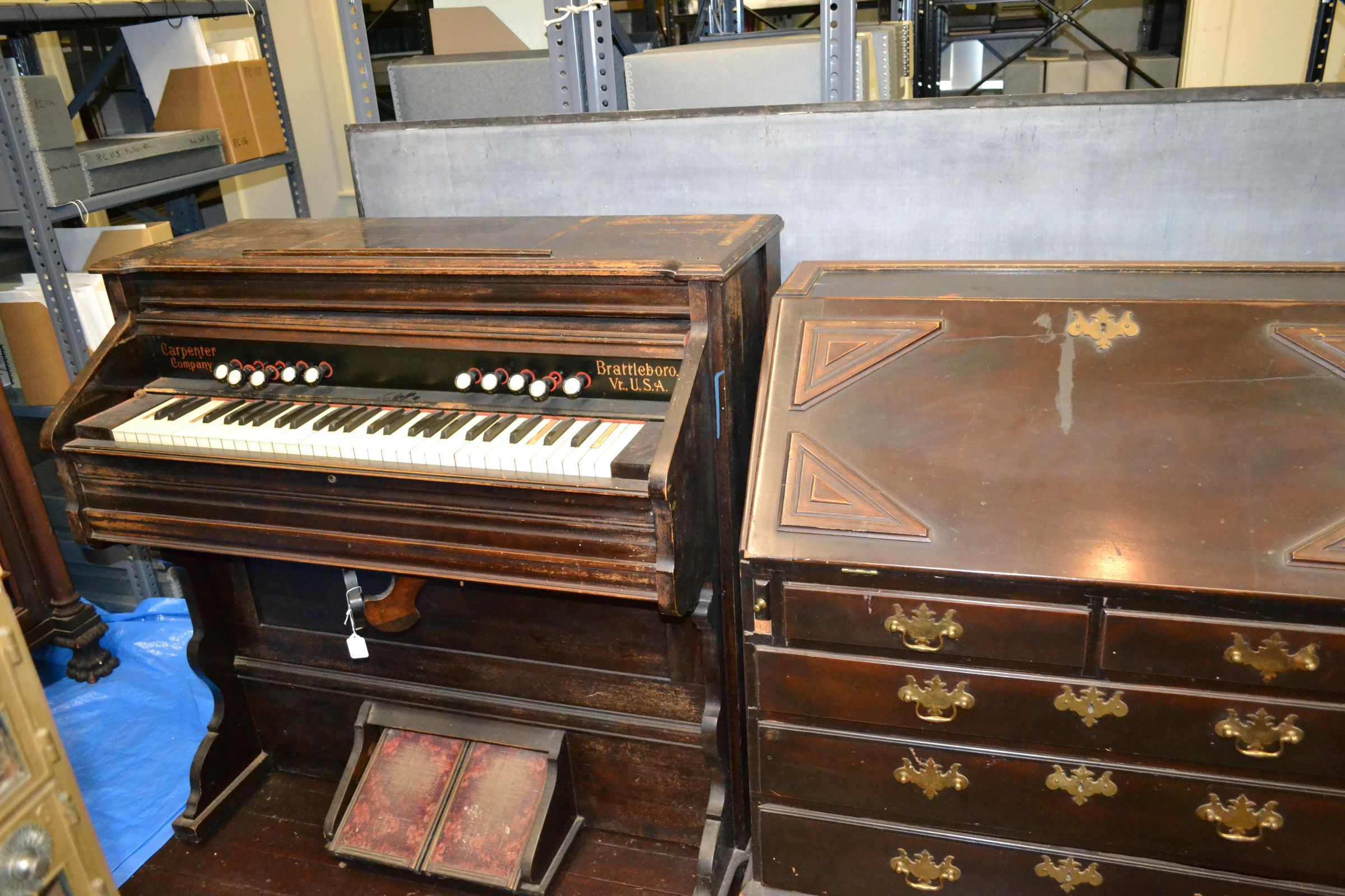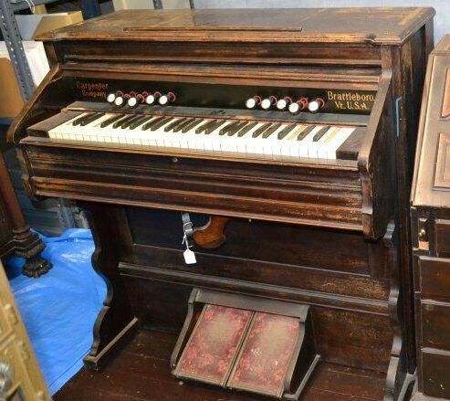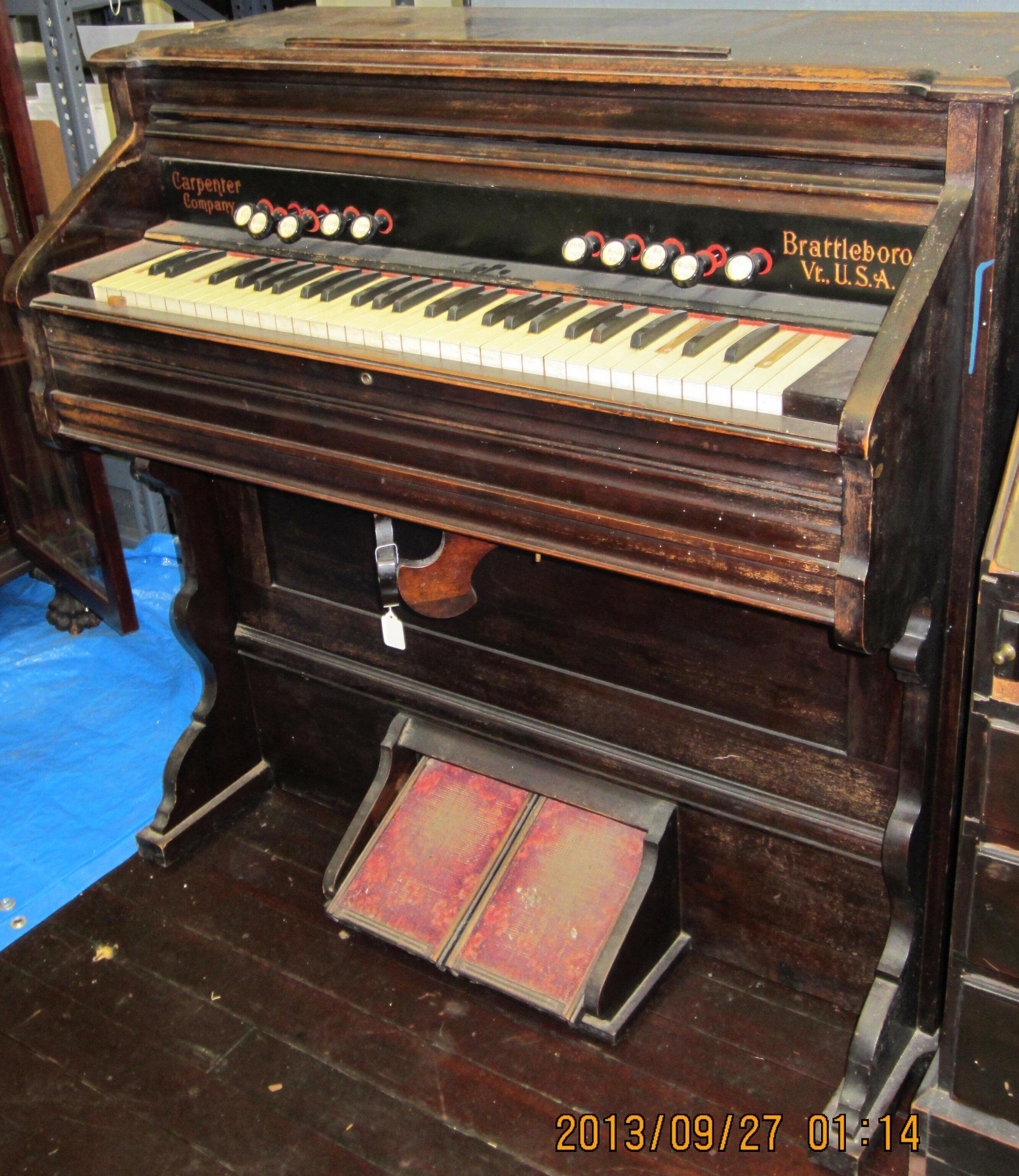 Original Inscription: In red & gold painting on panel above keyboard: CARPENTER COMPANY BRATTLEBORO VT U S A