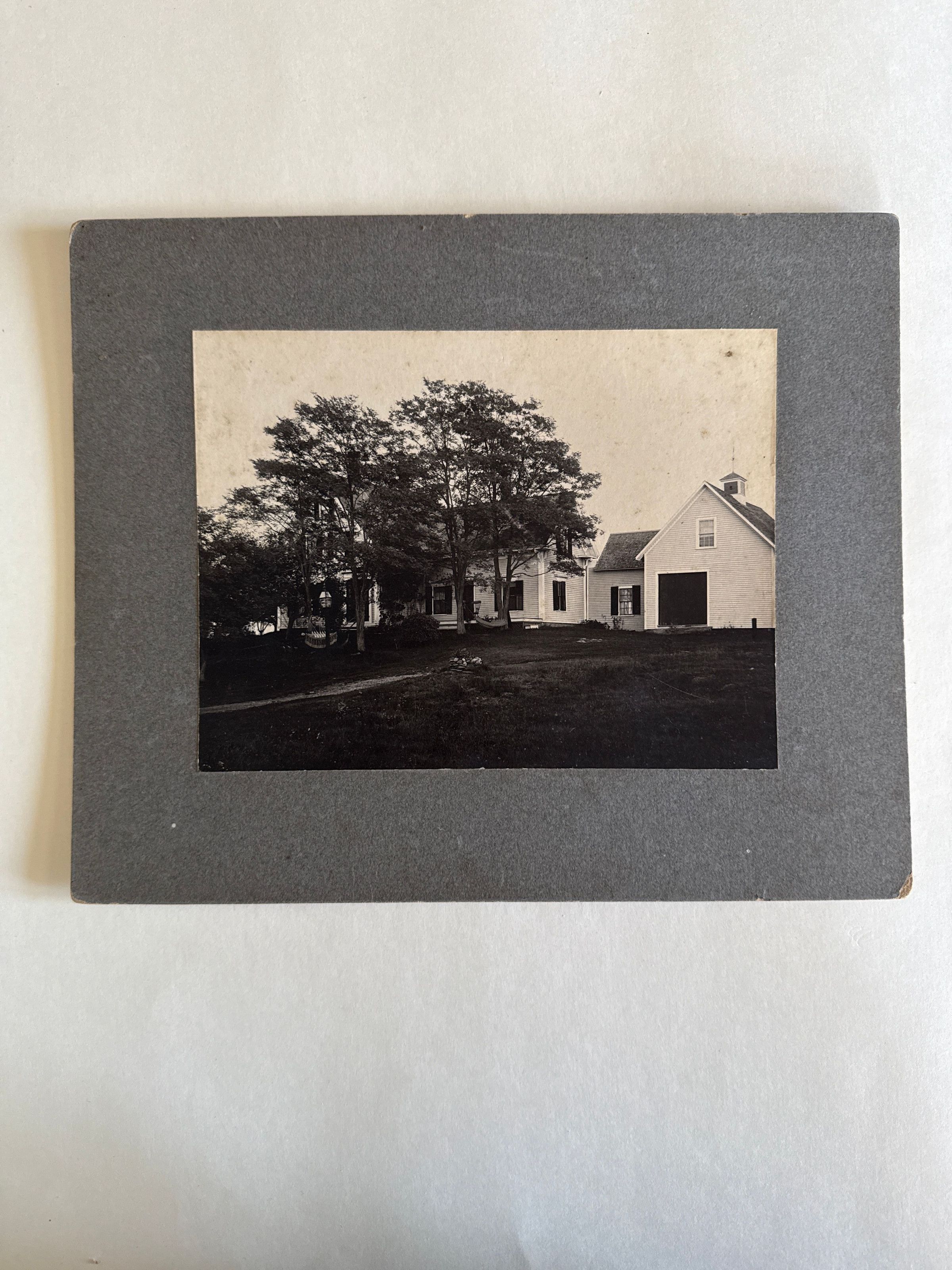 Captain Babbidge House, Main Rd. 6"x8" picture. House, 2 storey, with ell, shed, and two barns. Three people in front of house but not identified