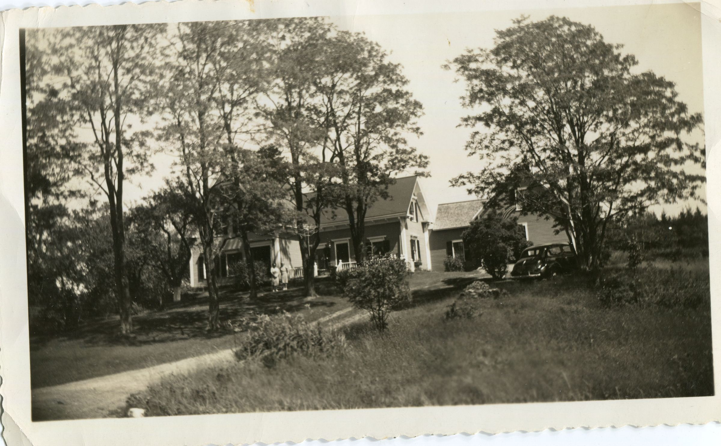 Snapshot 3.5" x 6" of 2-storey house well set back among trees. On back Ided as "Guilford Pendleton's house, later Capt Babbidge."