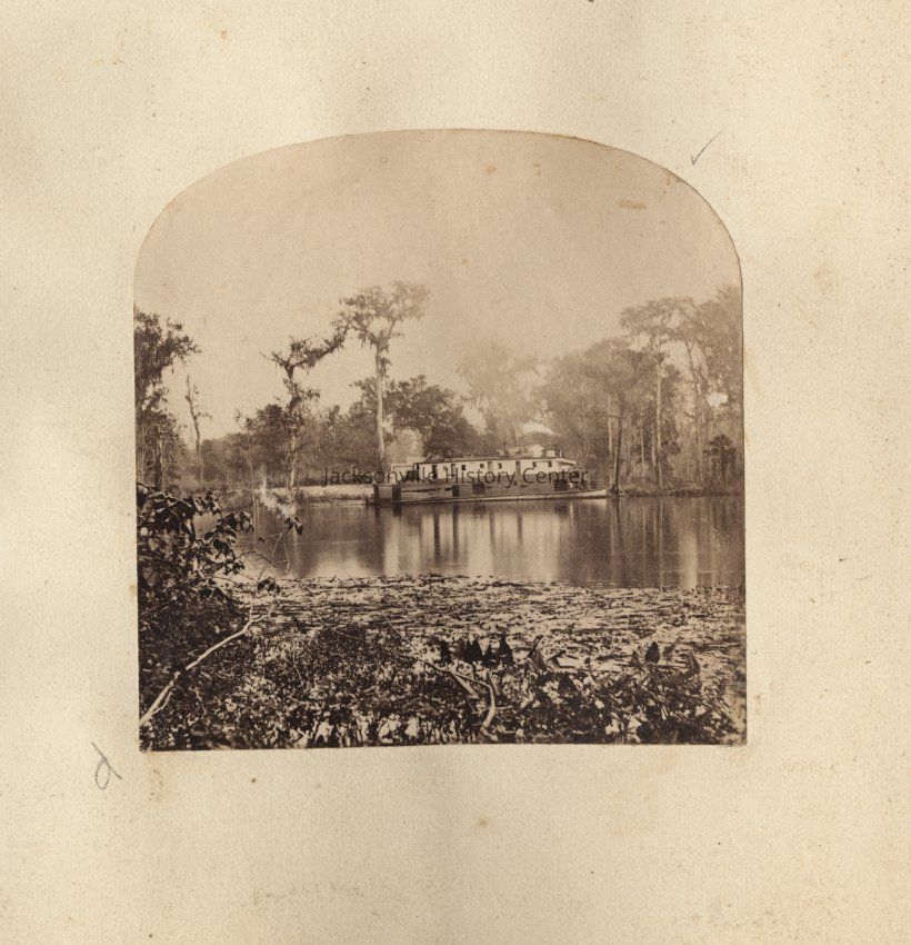 Deck, Water, Ship, Clarendon Hotel, Florida Spring, Florida, Dock, Trees, Green Cove Springs, Florida, Steamboat, Boat, Steamship, WalkwayScope and Content