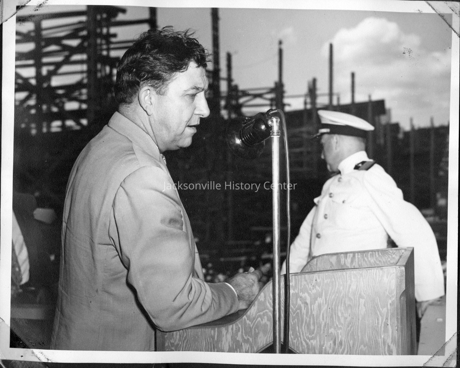 Congressman Emory Price and Chaplain Reuben Shrum at the St. Johns River Shipbuilding Co. in Jacksonville, FL on September 4, 1943.Collection