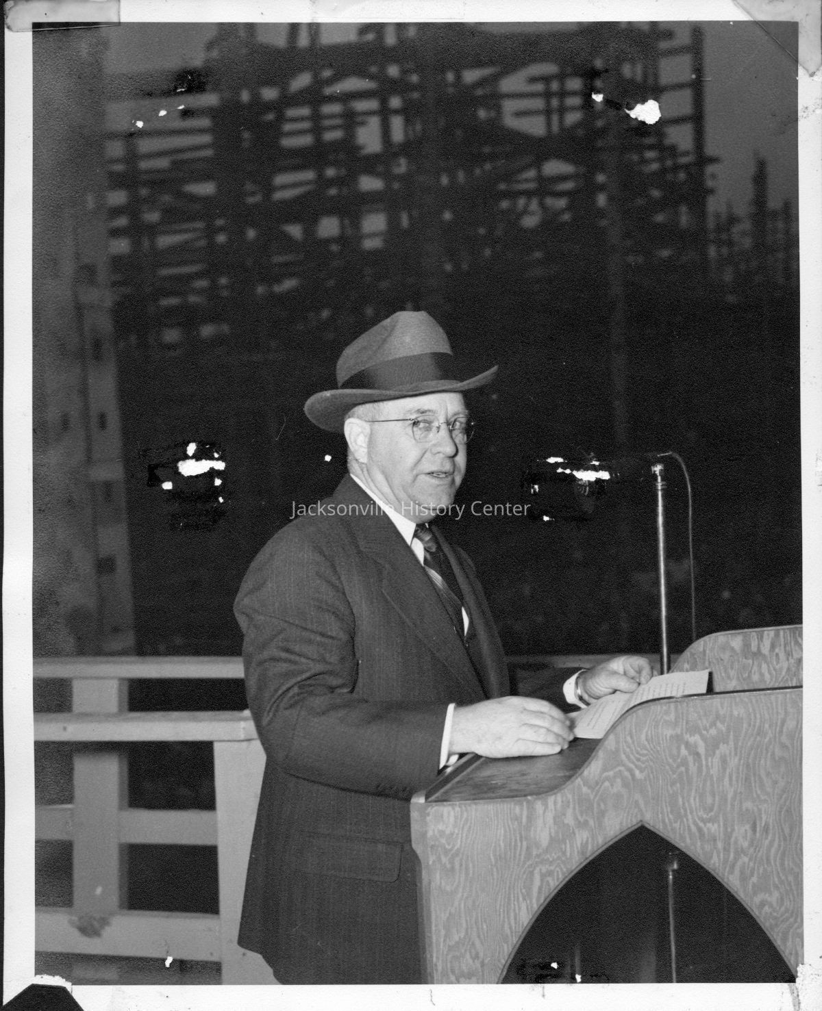 James C. Merrill principal address for the launching of the S.S. Arthur M. Huddell, Hull #23 at the St. Johns River Shipbuilding Co. in Jacksonville, FL on December 7, 1943.Collection