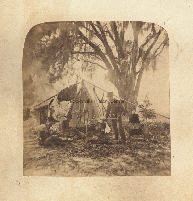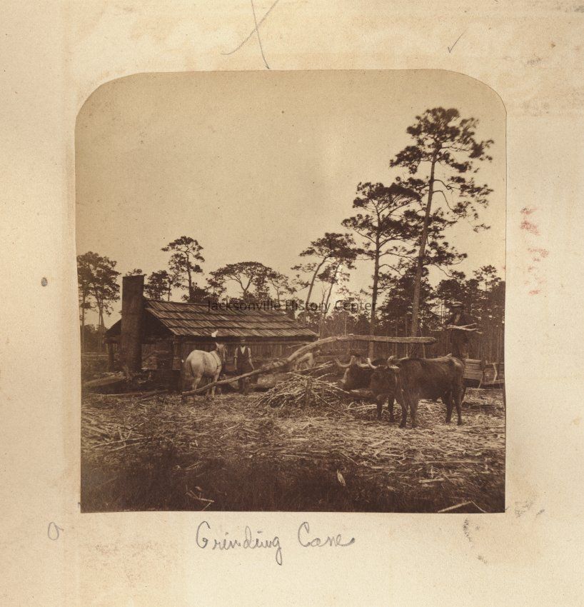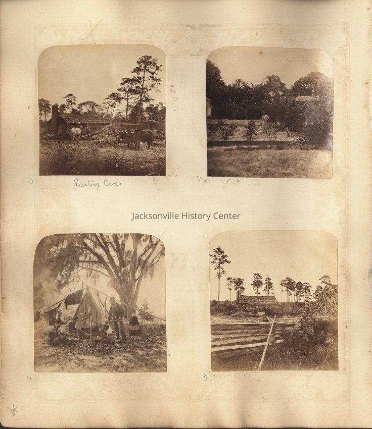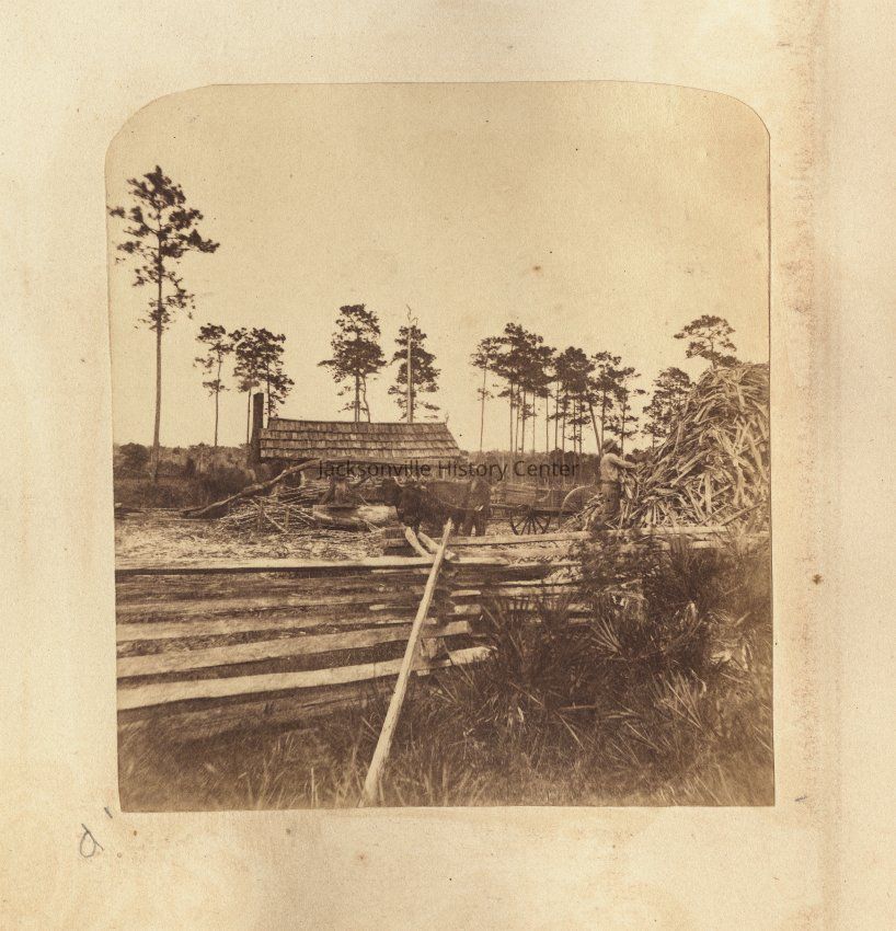 Lean-to, Garden, Tent, Cooking, Grinding Cane, Gardener, Building, Oxen, Florida, Farmer, Camp Kellogg?, Men, Cart, Gun, houseScope and Content