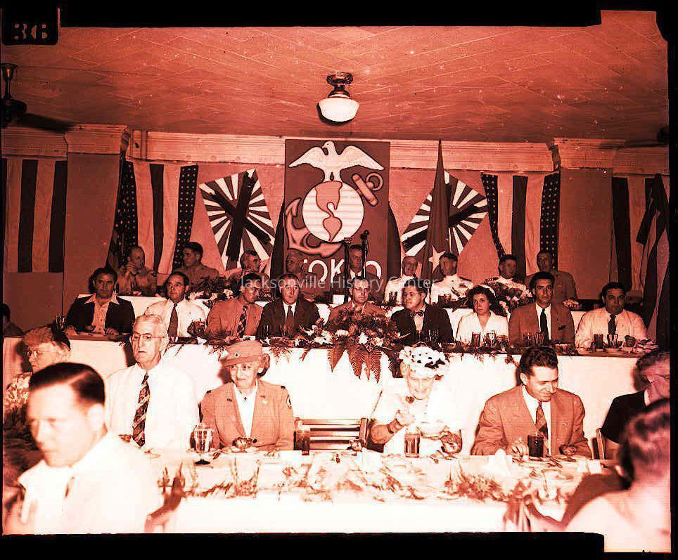 Several men at a banquet. The Marine Corp. sign said "Tokyo" on it.Collection