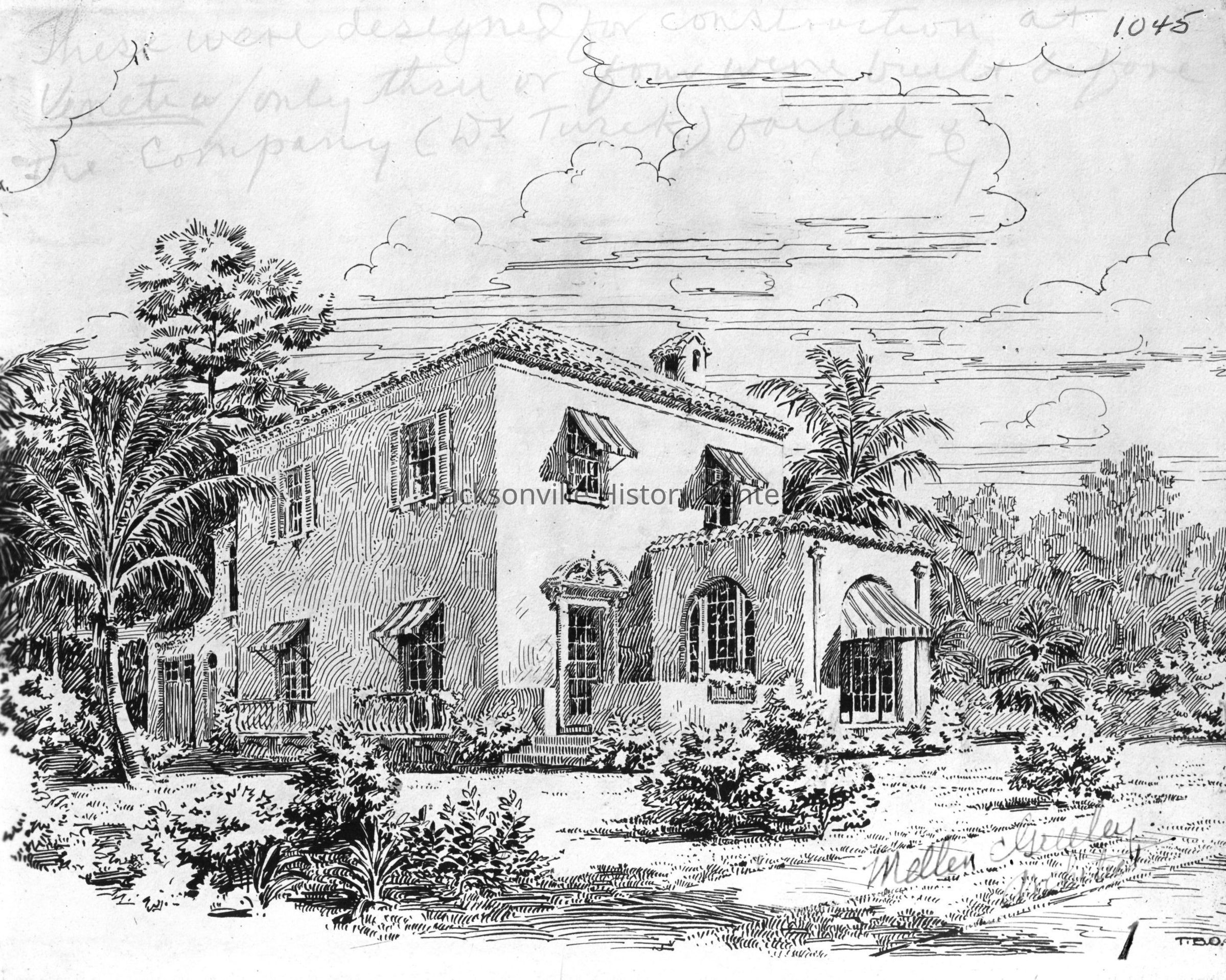 Ink sketch of home by Mellen C. Greeley, AIA, by artist with initials T.B.O.Collection