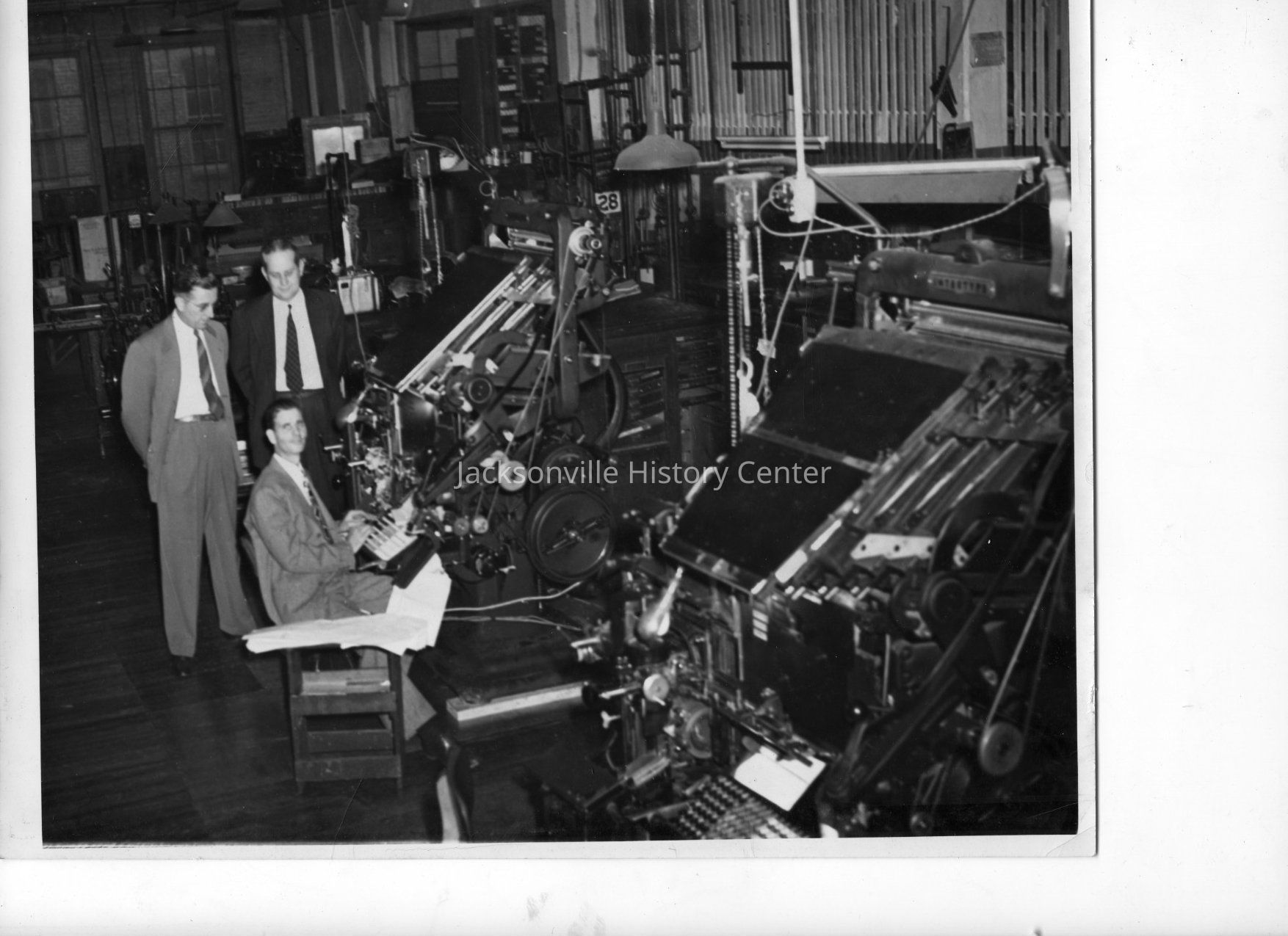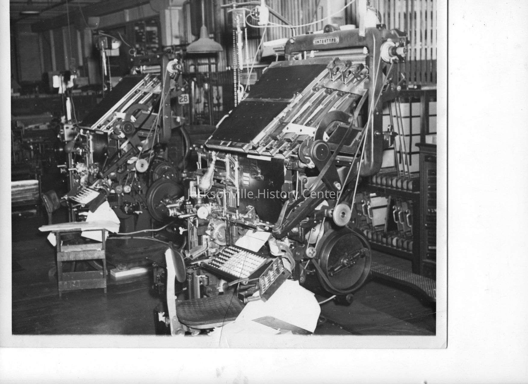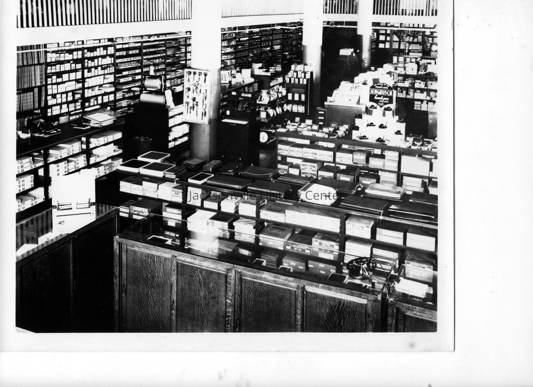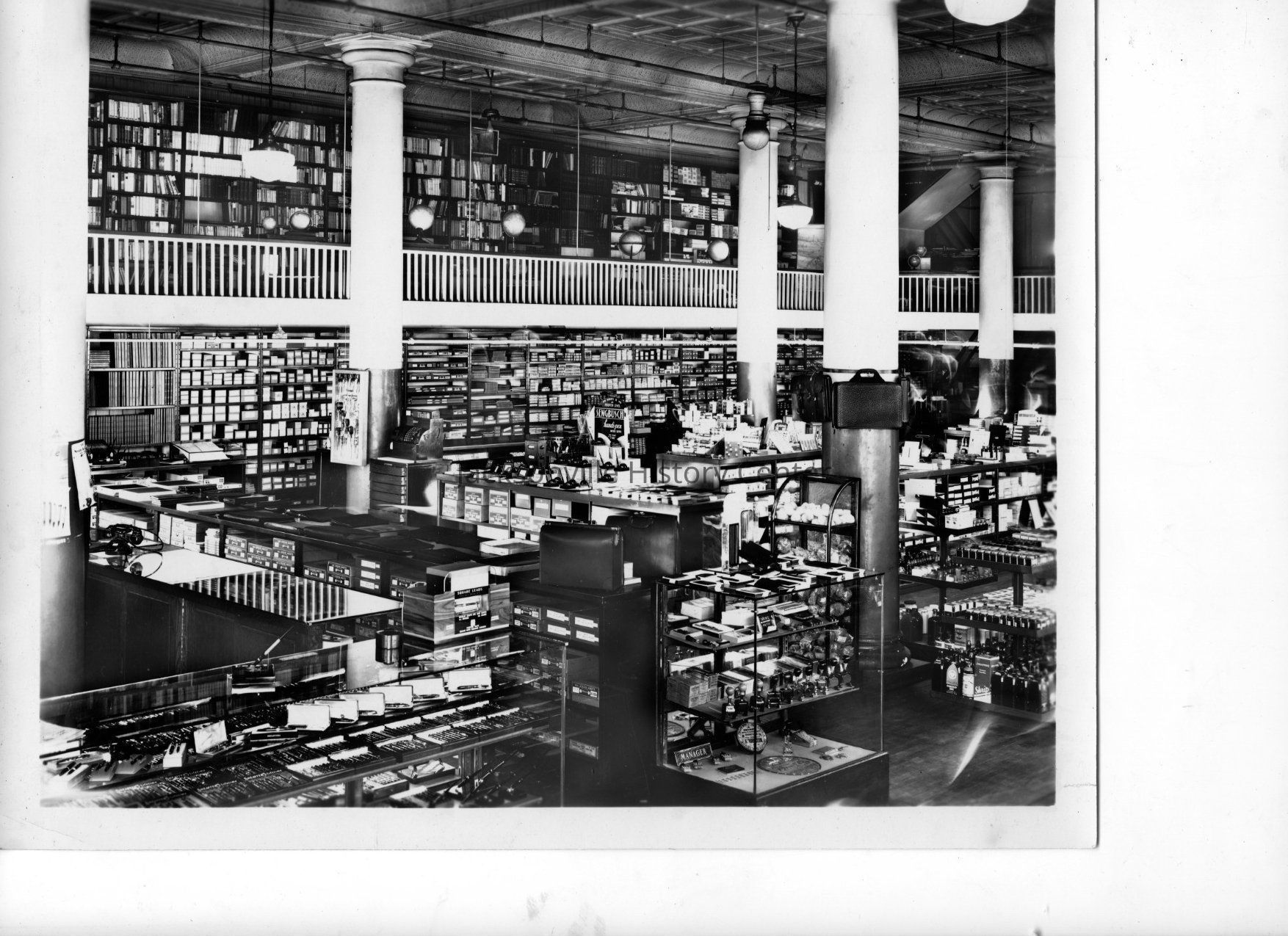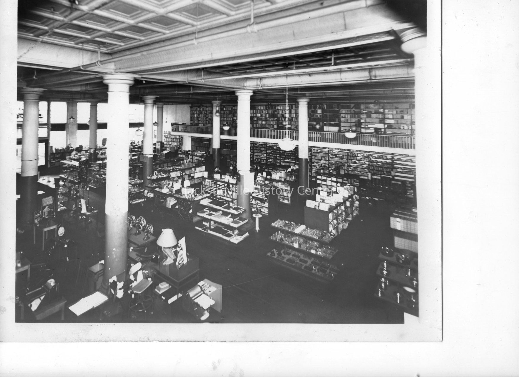 Photographs from the H & WB Drew Company store. Photographs are not dated. 8 duplicates of a window front, 2 duplicates of a wide shot of the store, 2 duplicates of a wide shot of the main floor, printing machinery, and a whole wide shot. 15 total.Collection