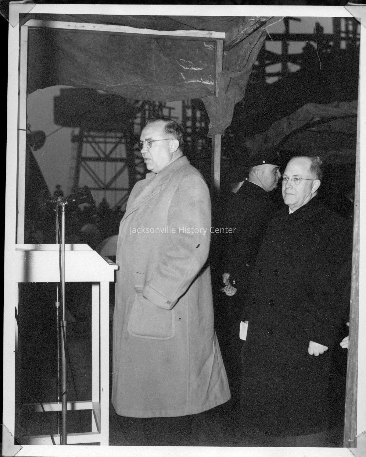 U. S. Maritime "M" Award; Left to right: , L.R. Sanford - Regional Director - at the podium and James C. Merrill behind him.Collection
