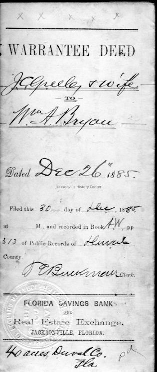 Receipt for medical services dated 12/31/1882 and Warrantee Deed between J. C. Greeley/Leonora K. Greeley & William A. Bryan dated 12/26/1885Collection