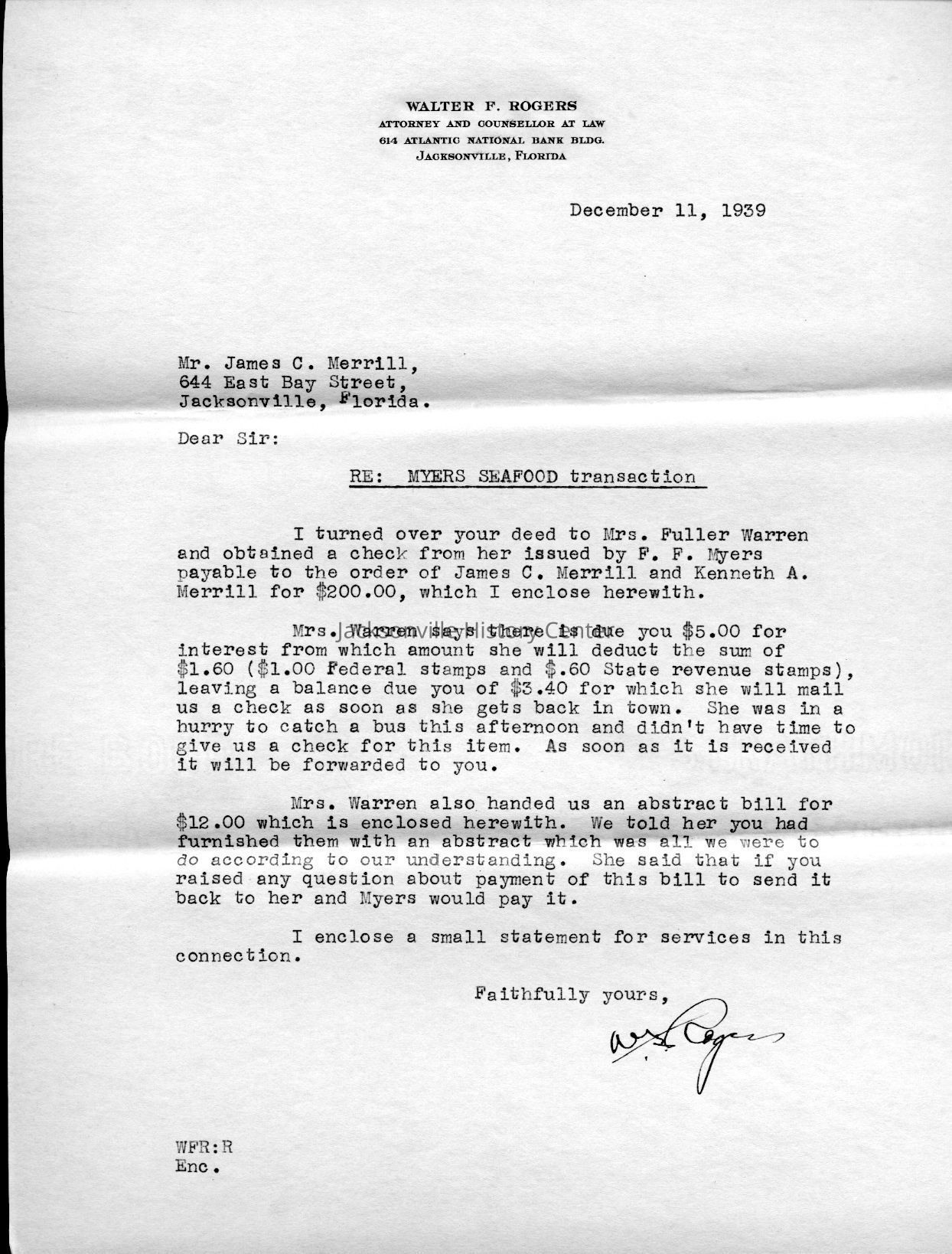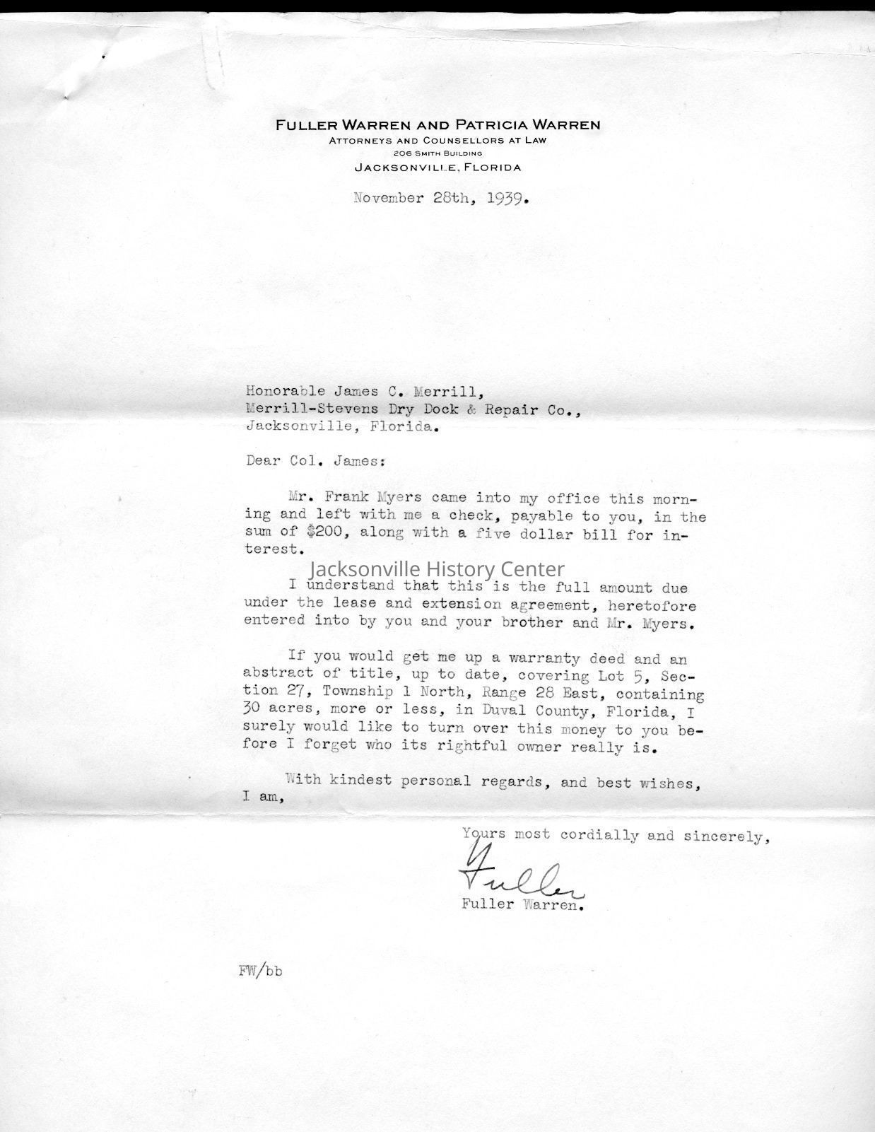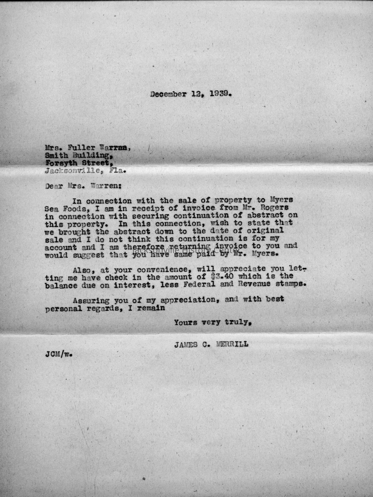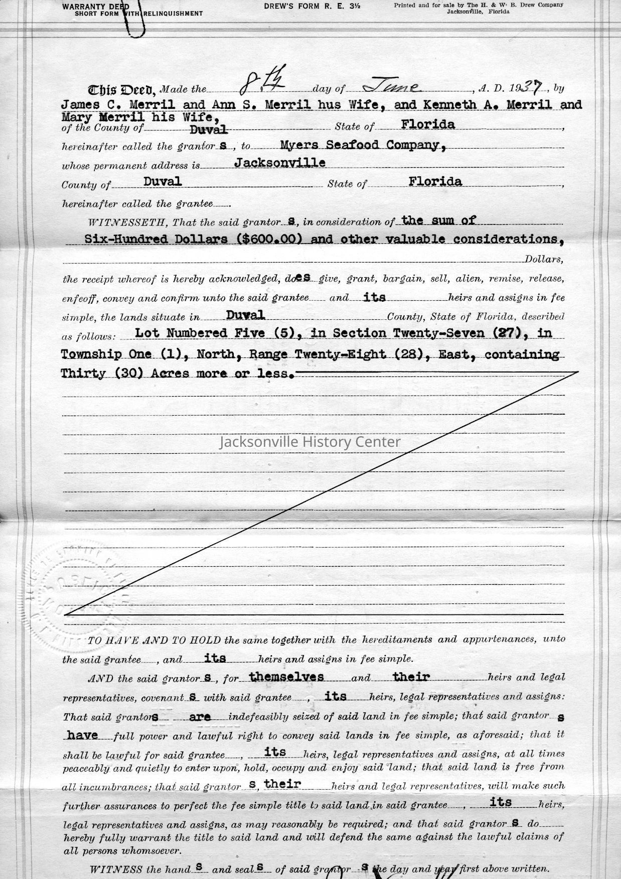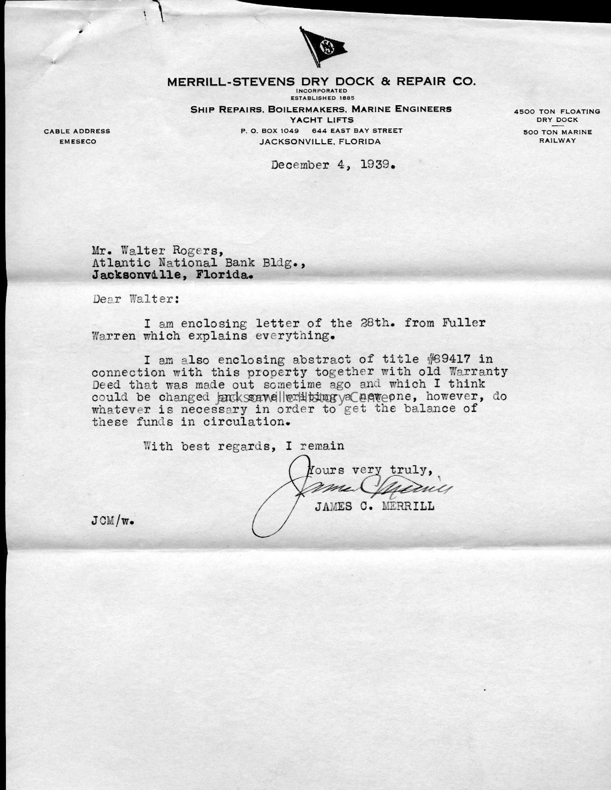 MC14.4.1-MC14.4.15—legal and financial papers—Deed of sale dated 3/22/1937, tax receipt 1937, tax receipt 1938, Extension of lease from James C. Merrill et al to Myers Seafood Co 05/20/1939, Lease dated 07/12/1937, quit-claim deed dated 07/15/1937, tax receipt 1939, correspondence 12/11/1939, receipt 12/11/1939, correspondence dated 12/12/1939, correspondence dated 12/28/1939, correspondence dated 01/08/1940, warranty deed dated 6/8/1937, correspondence dated 12/4/1939, correspondence dated 11/28/1939Date(s) of Creation