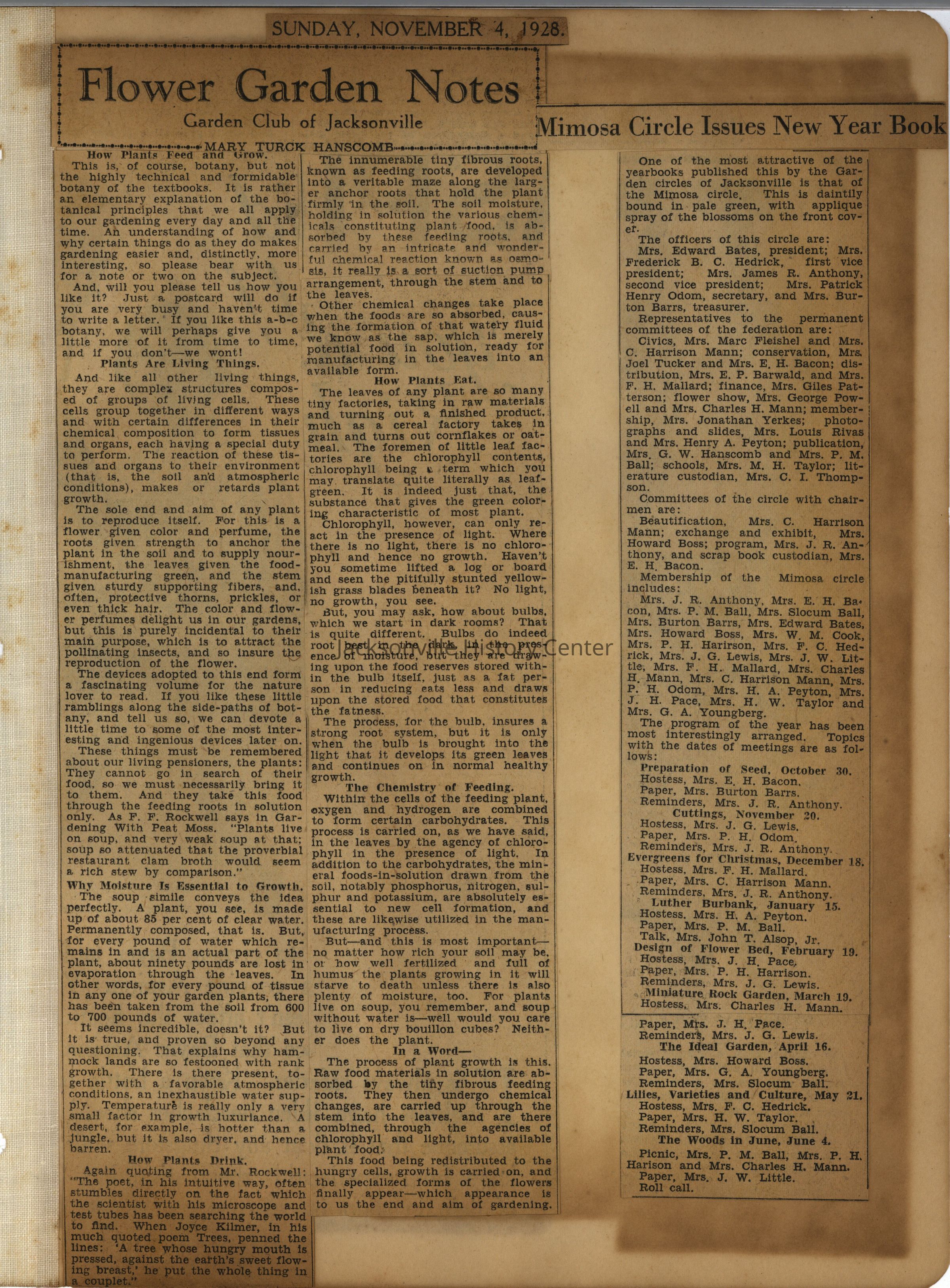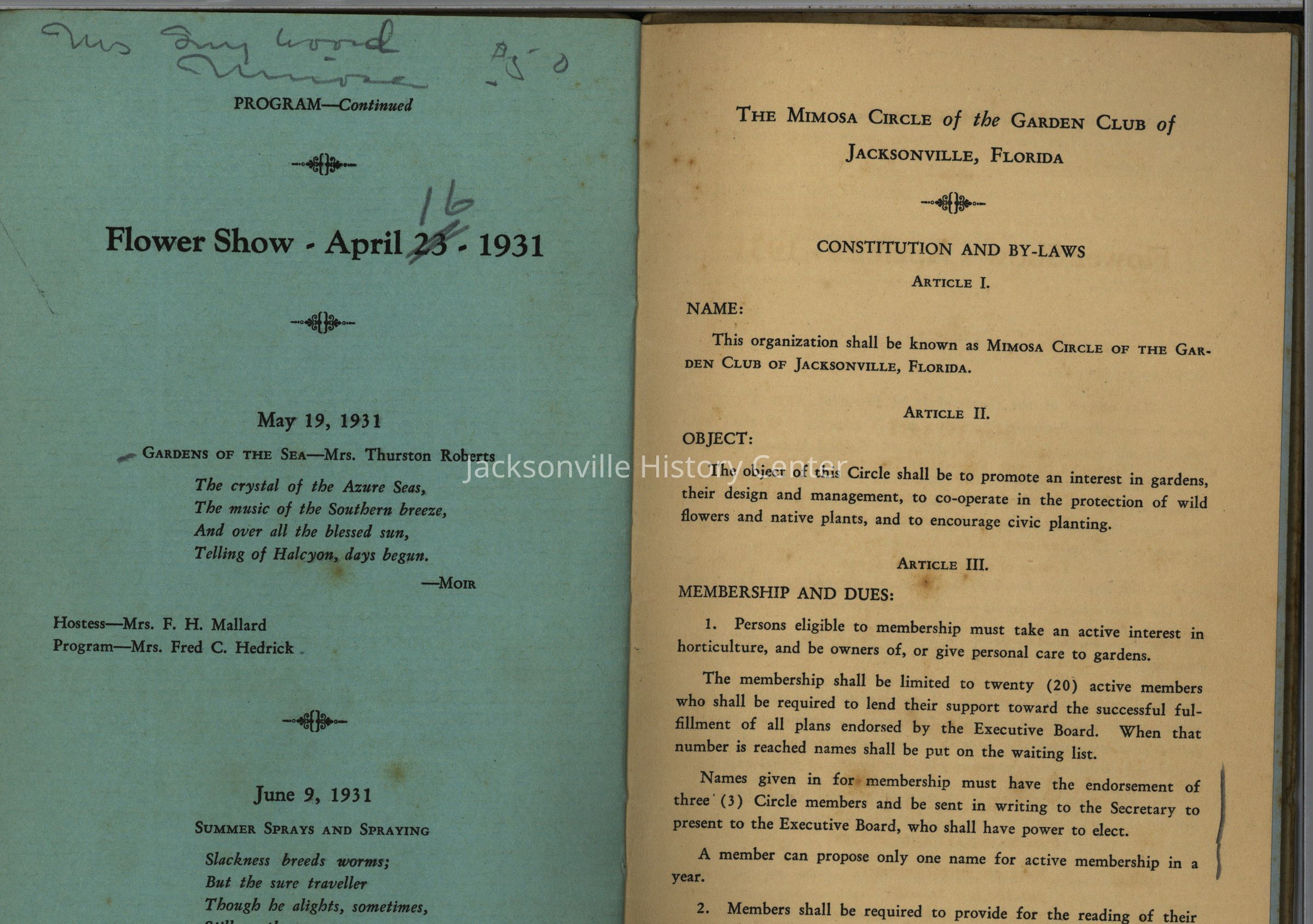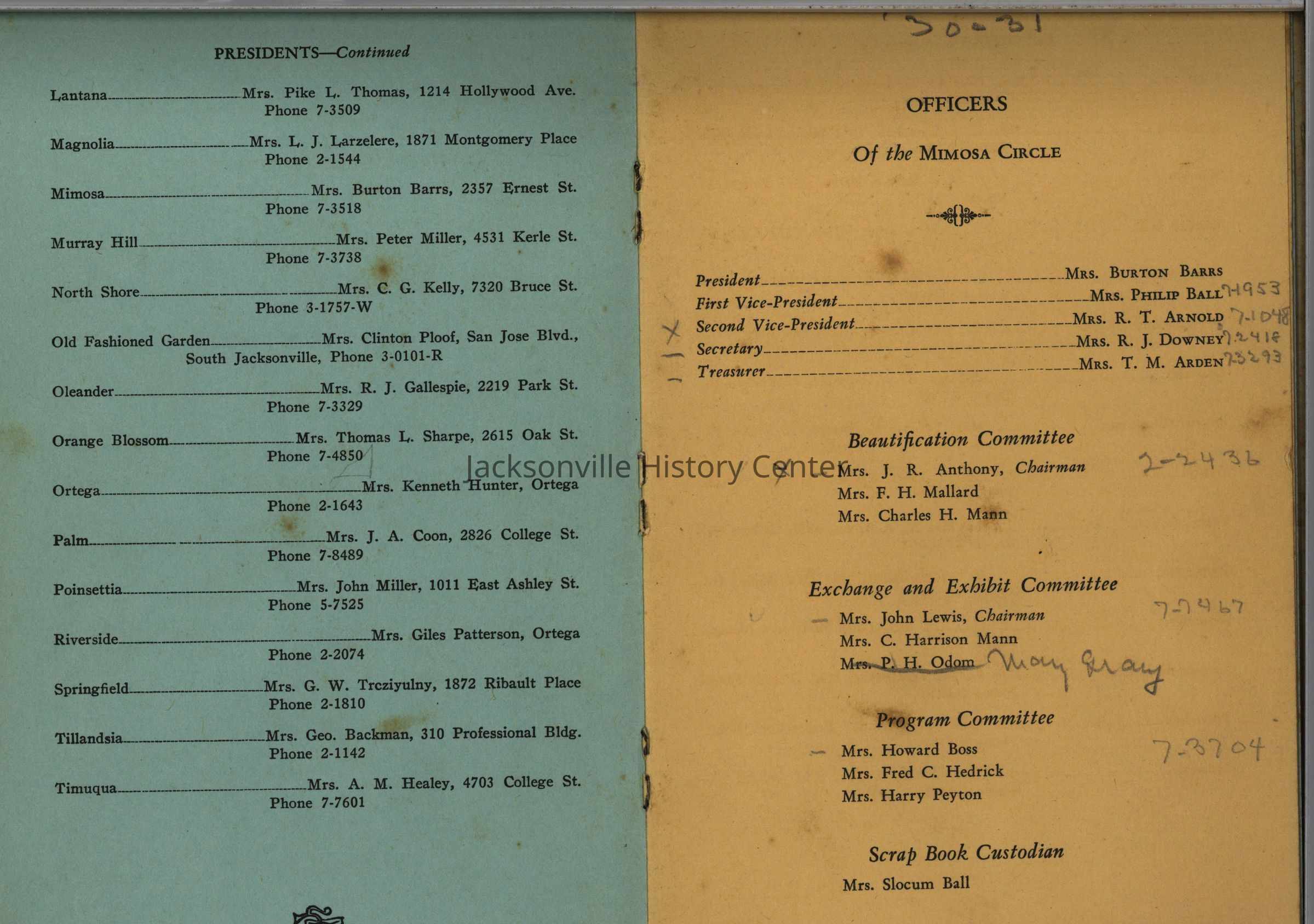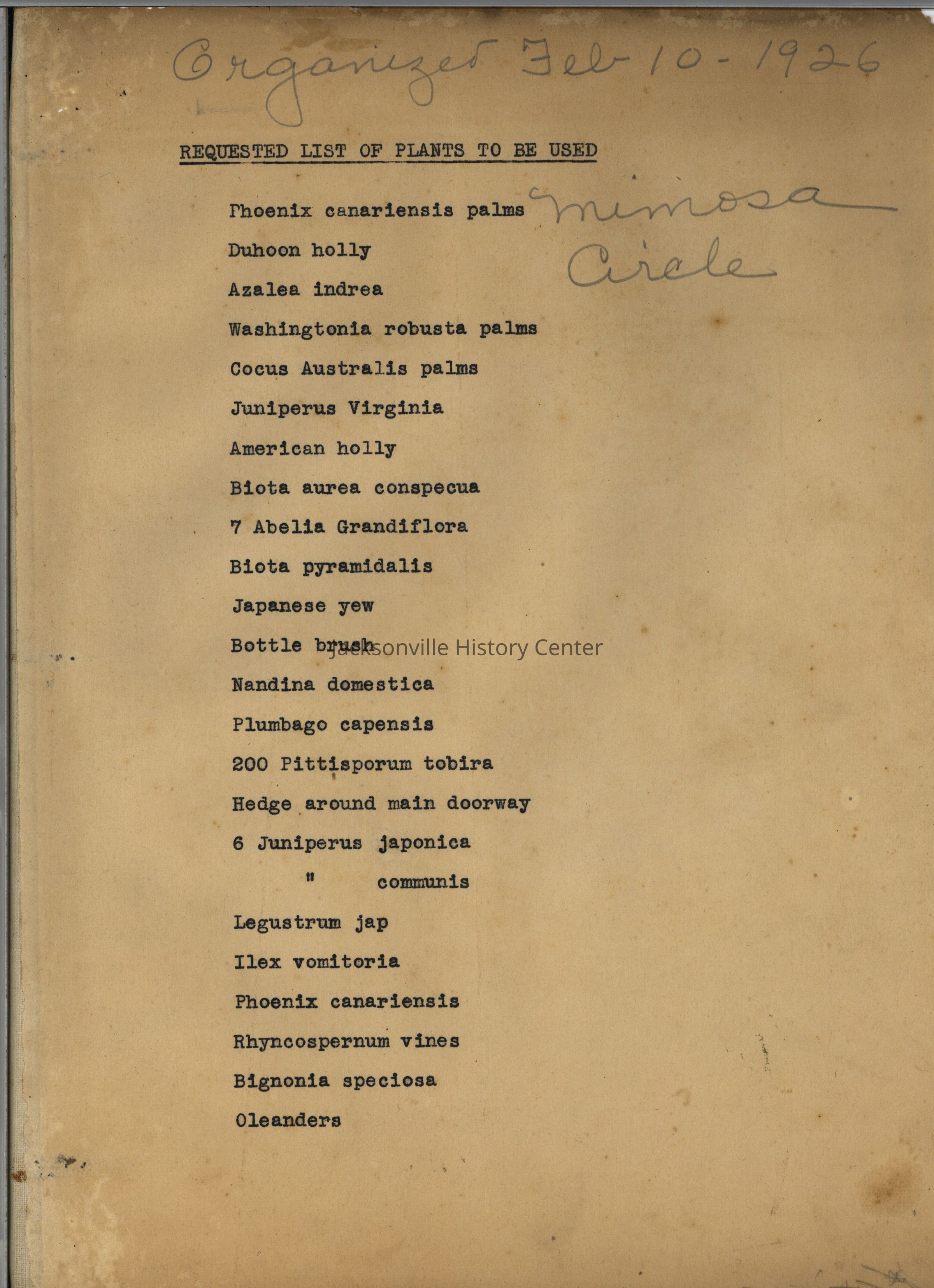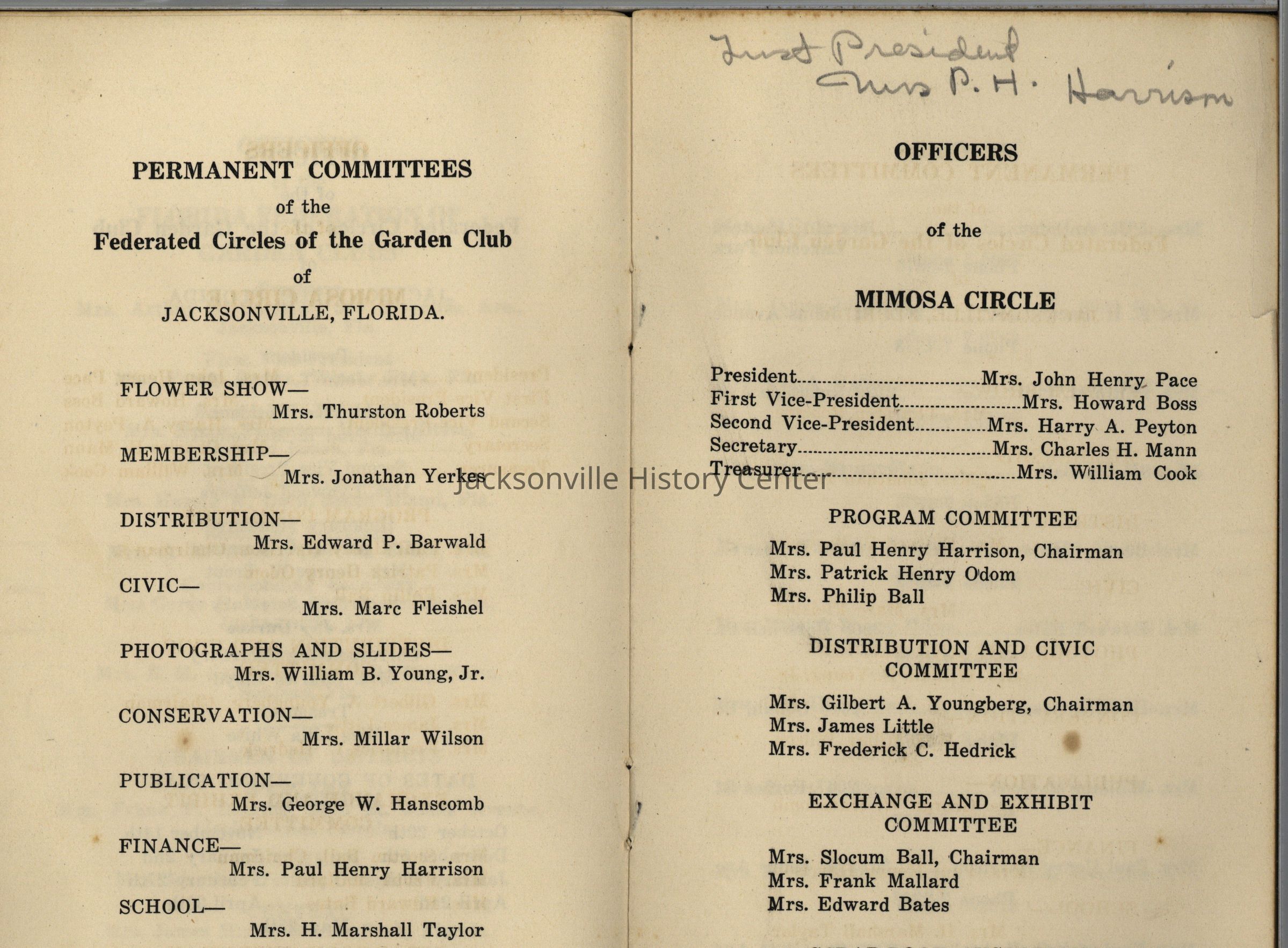 Mimosa Circle, Garden Club of Jacksonville, Florida.Notes