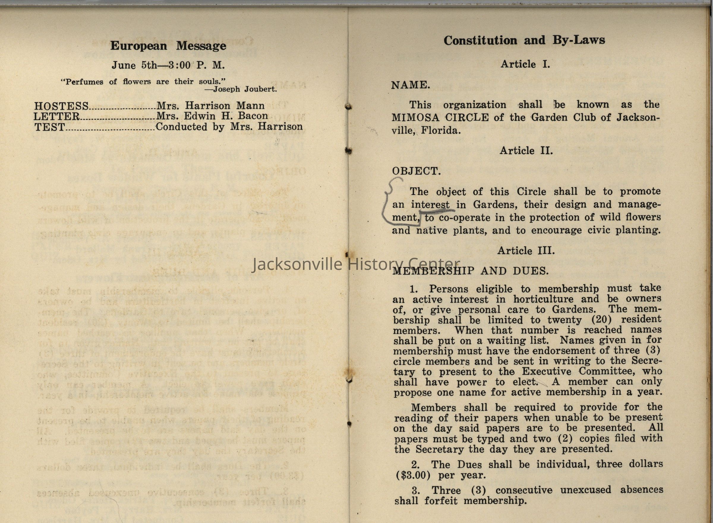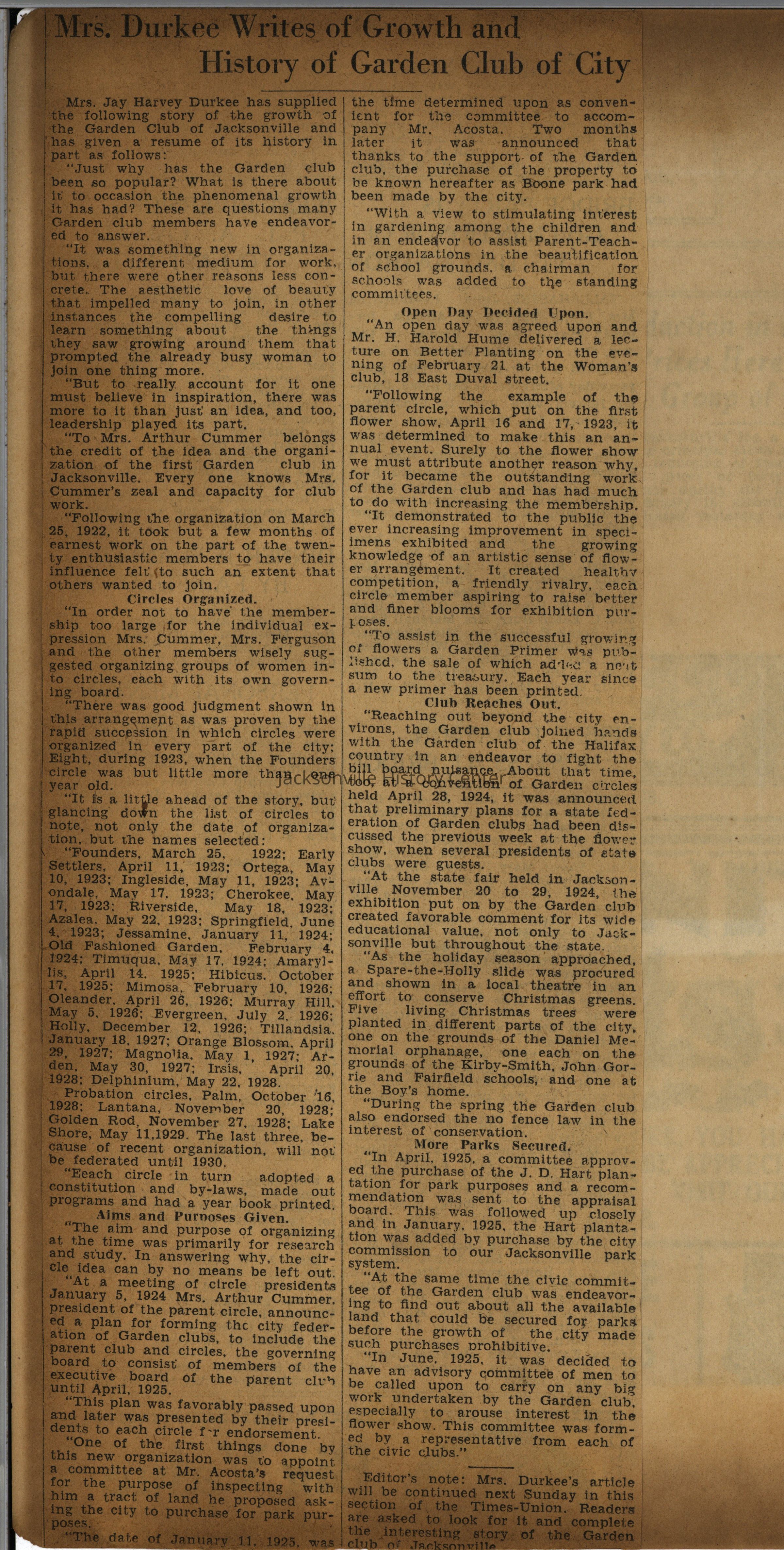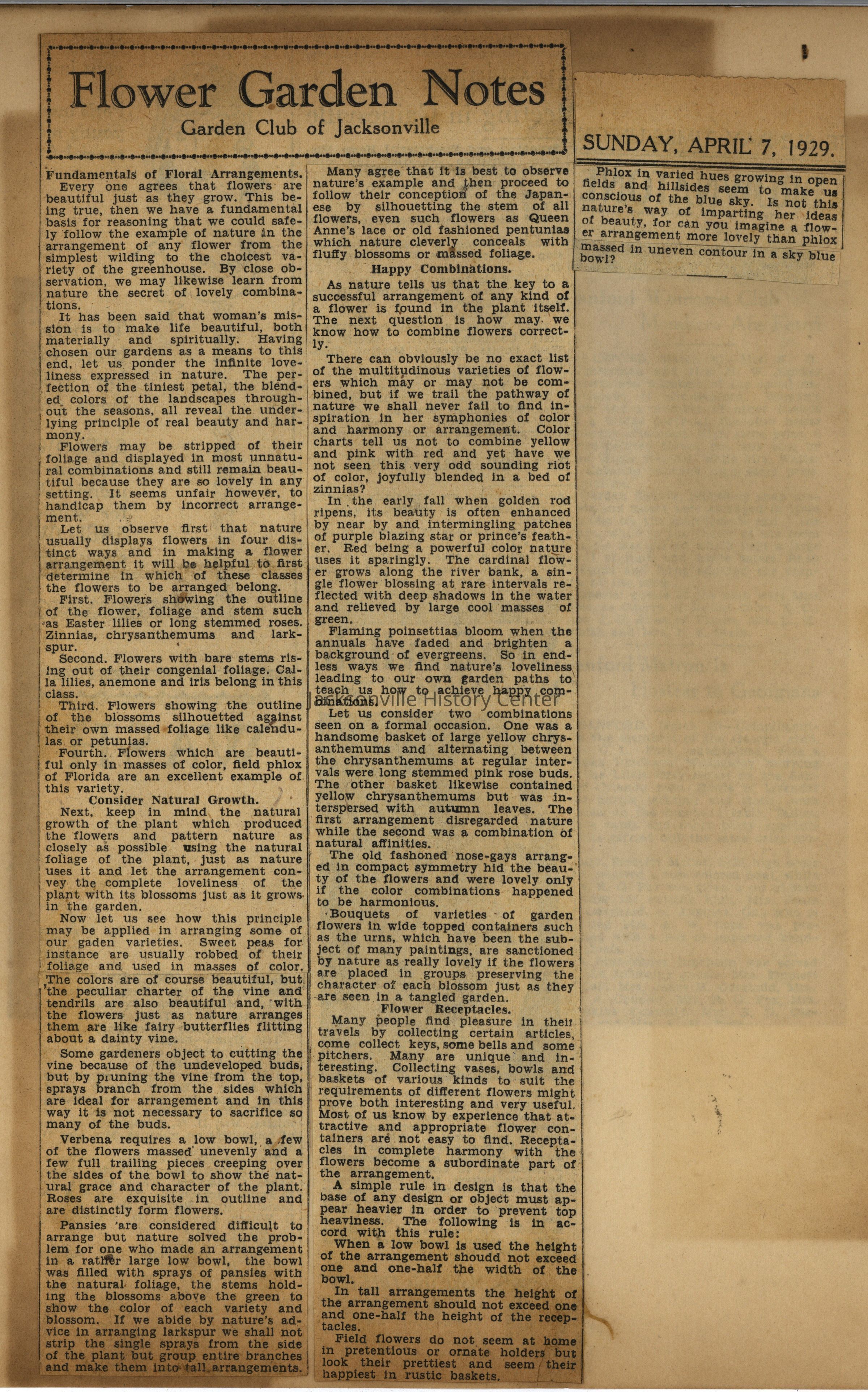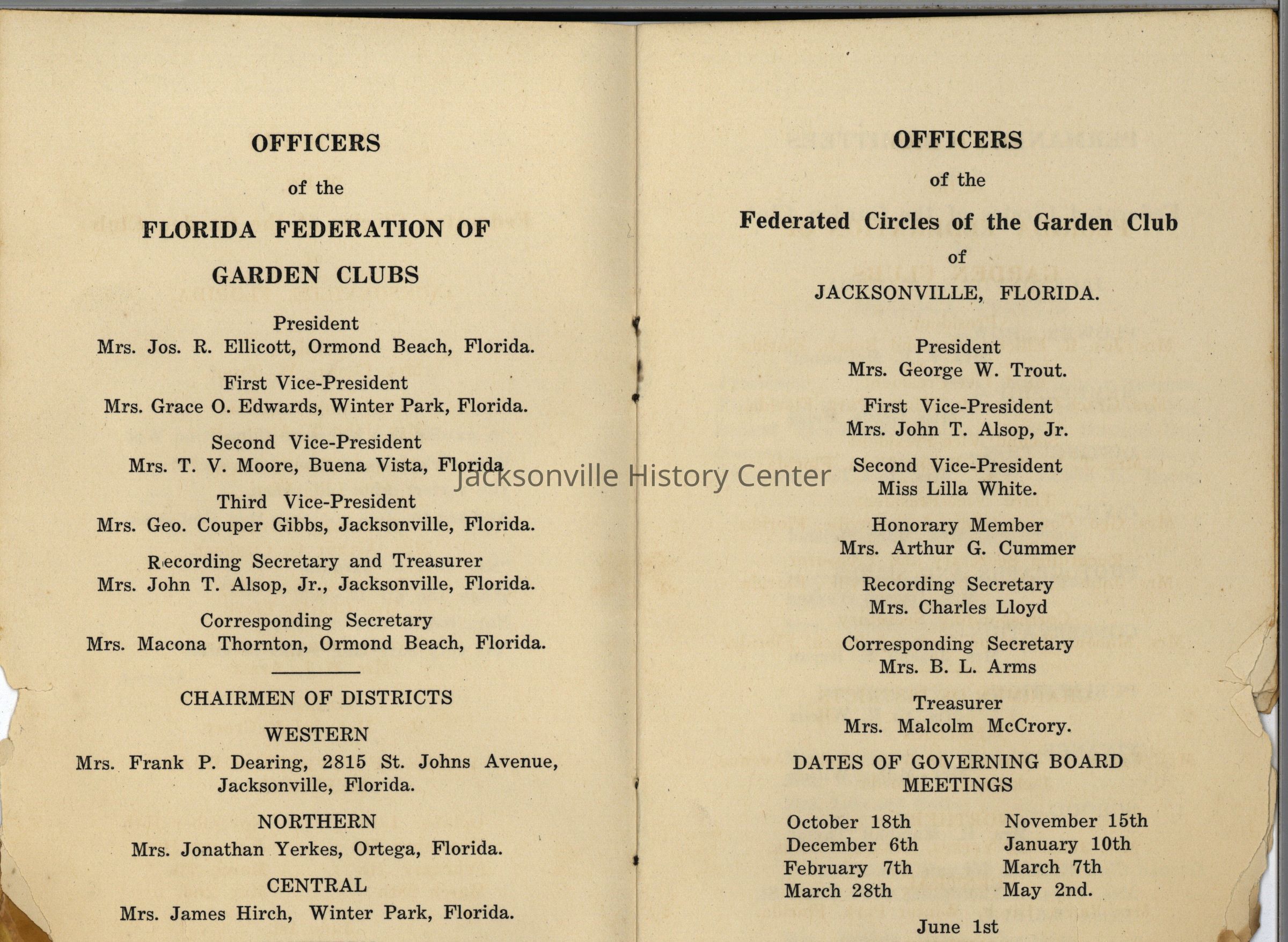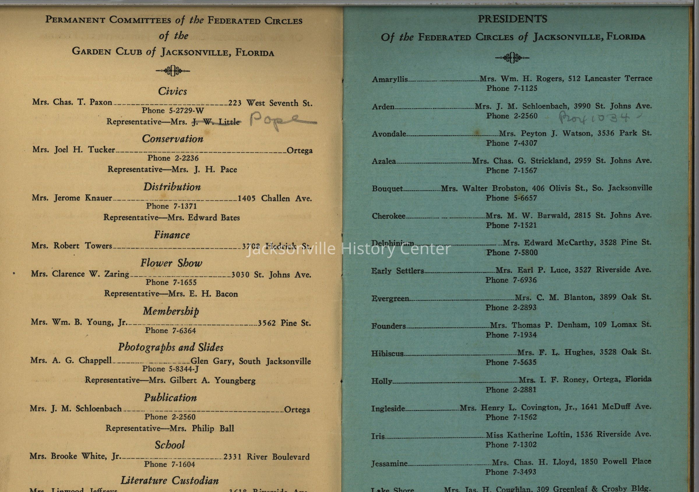 Mimosa Circle, Garden Club of Jacksonville, Florida.Notes