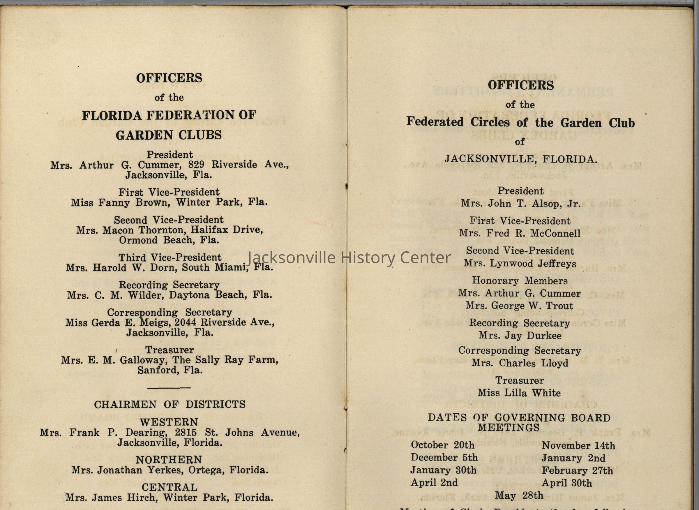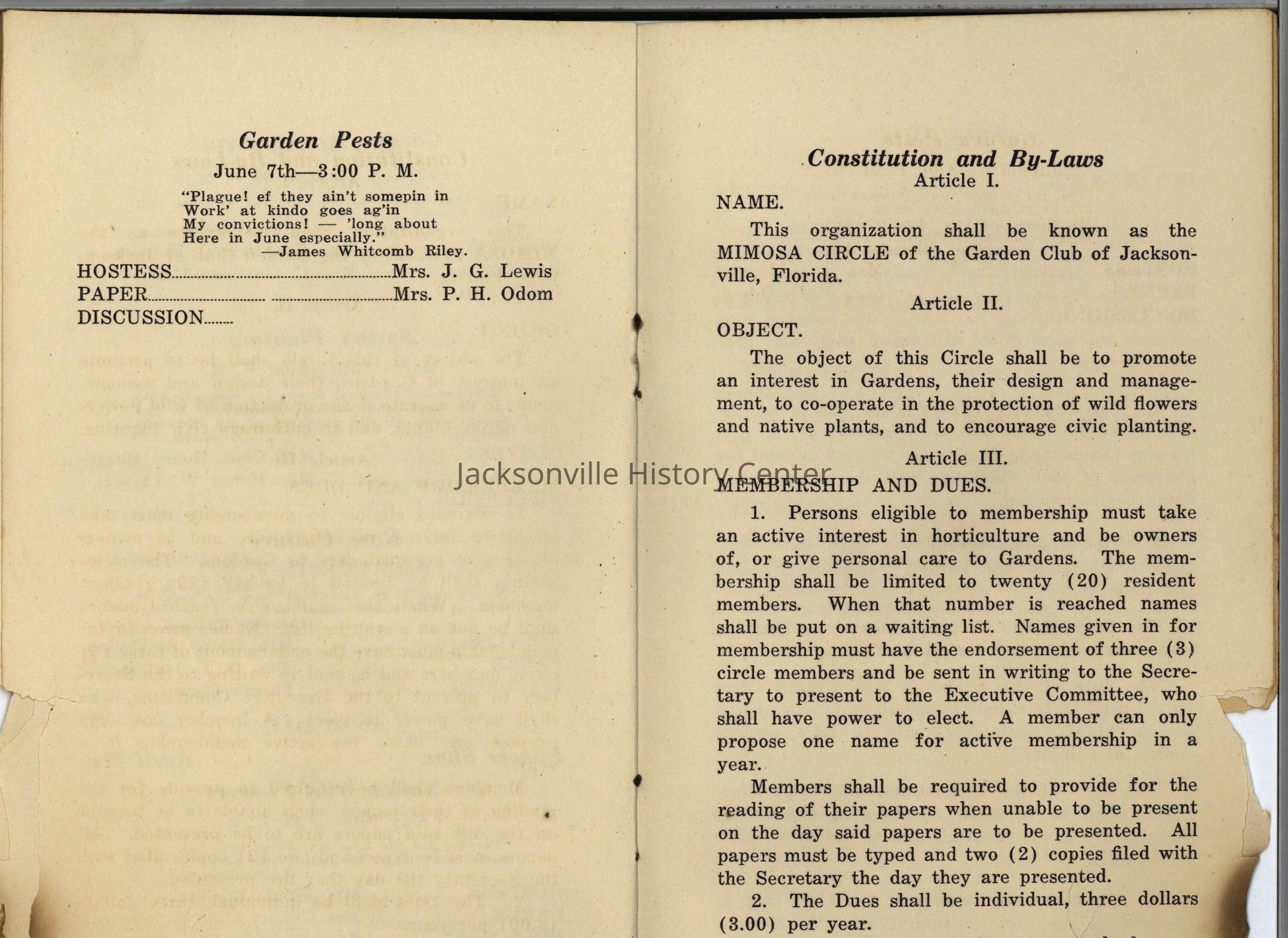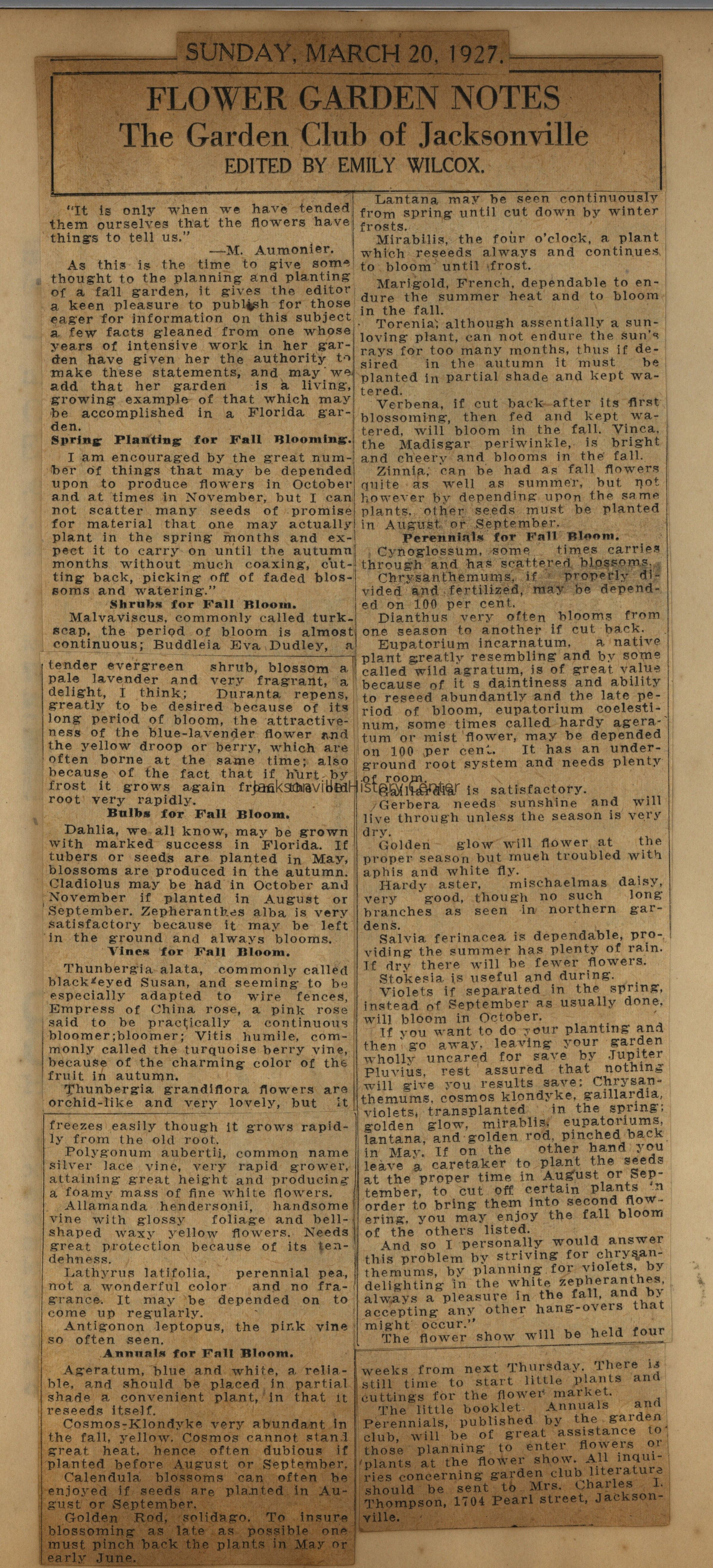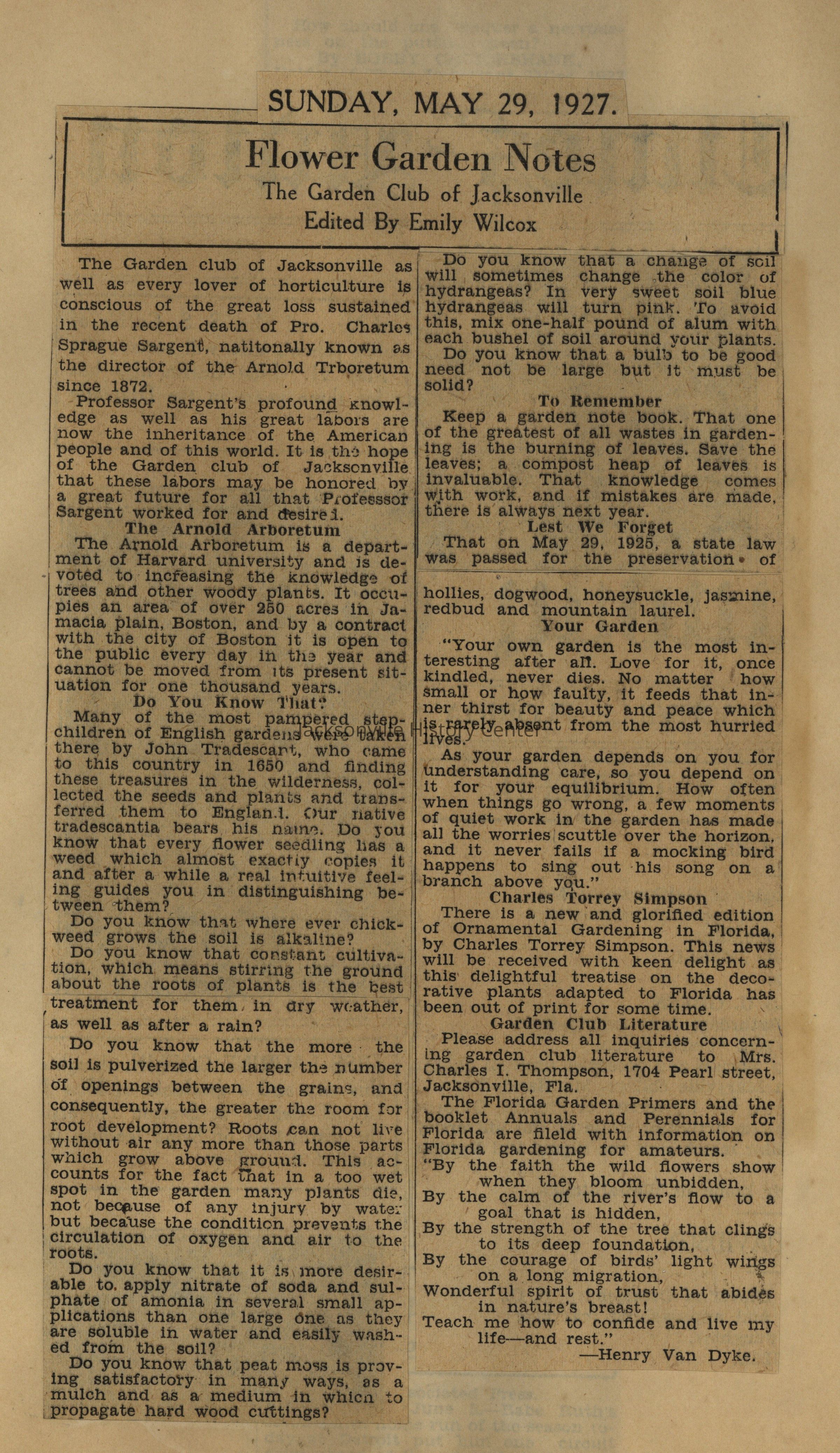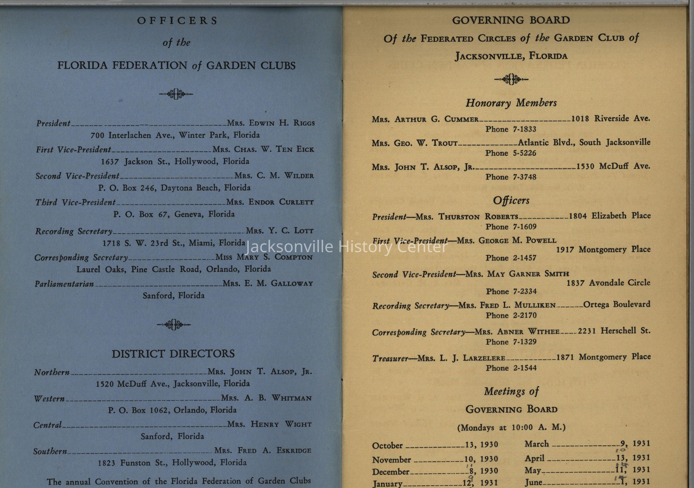 Mimosa Circle, Garden Club of Jacksonville, Florida.Notes