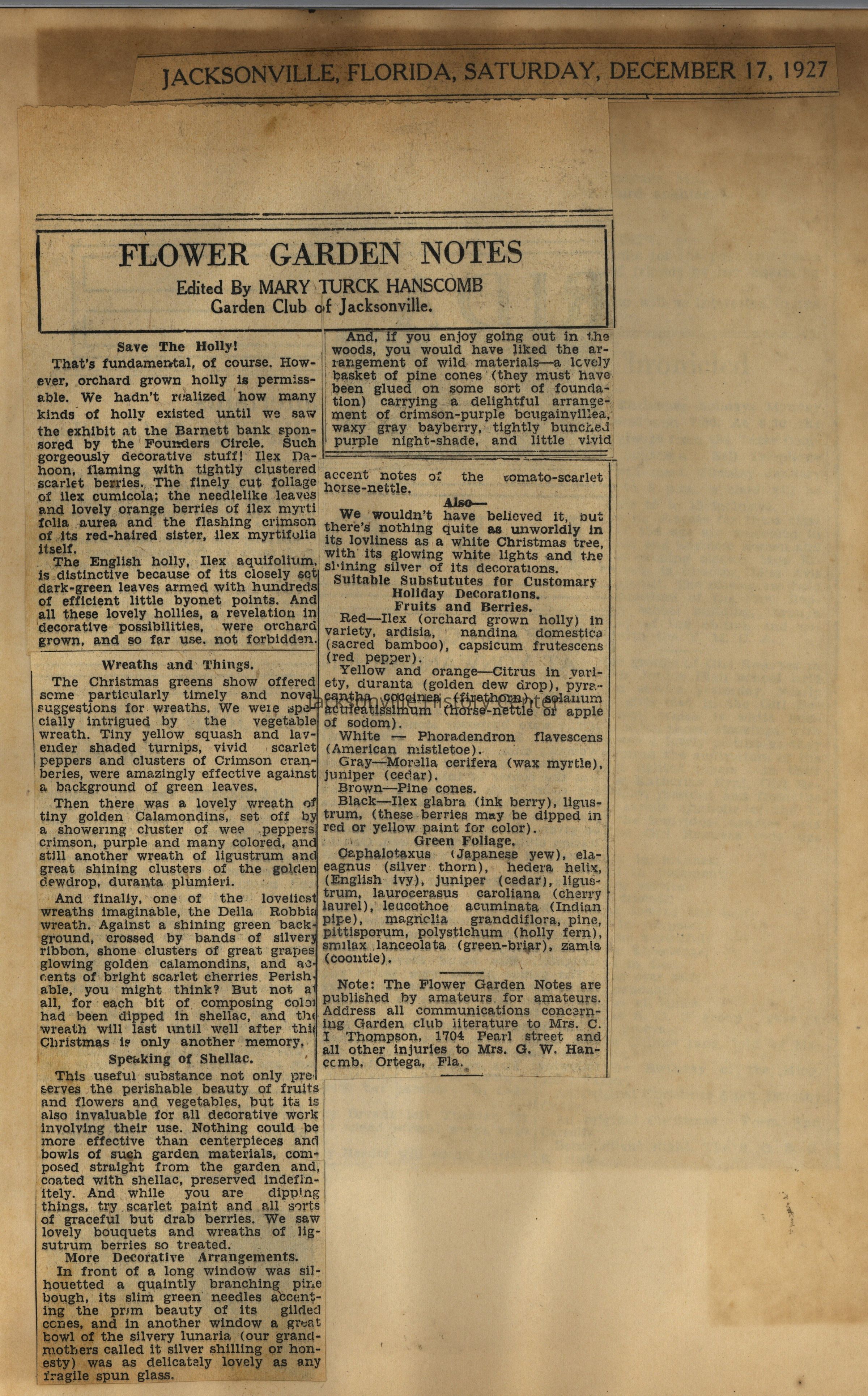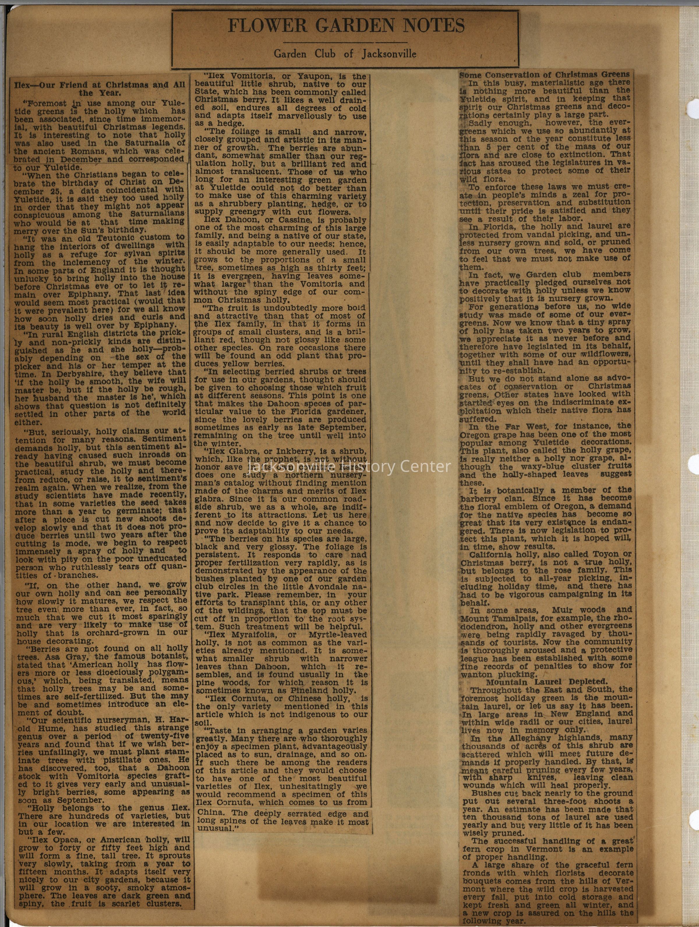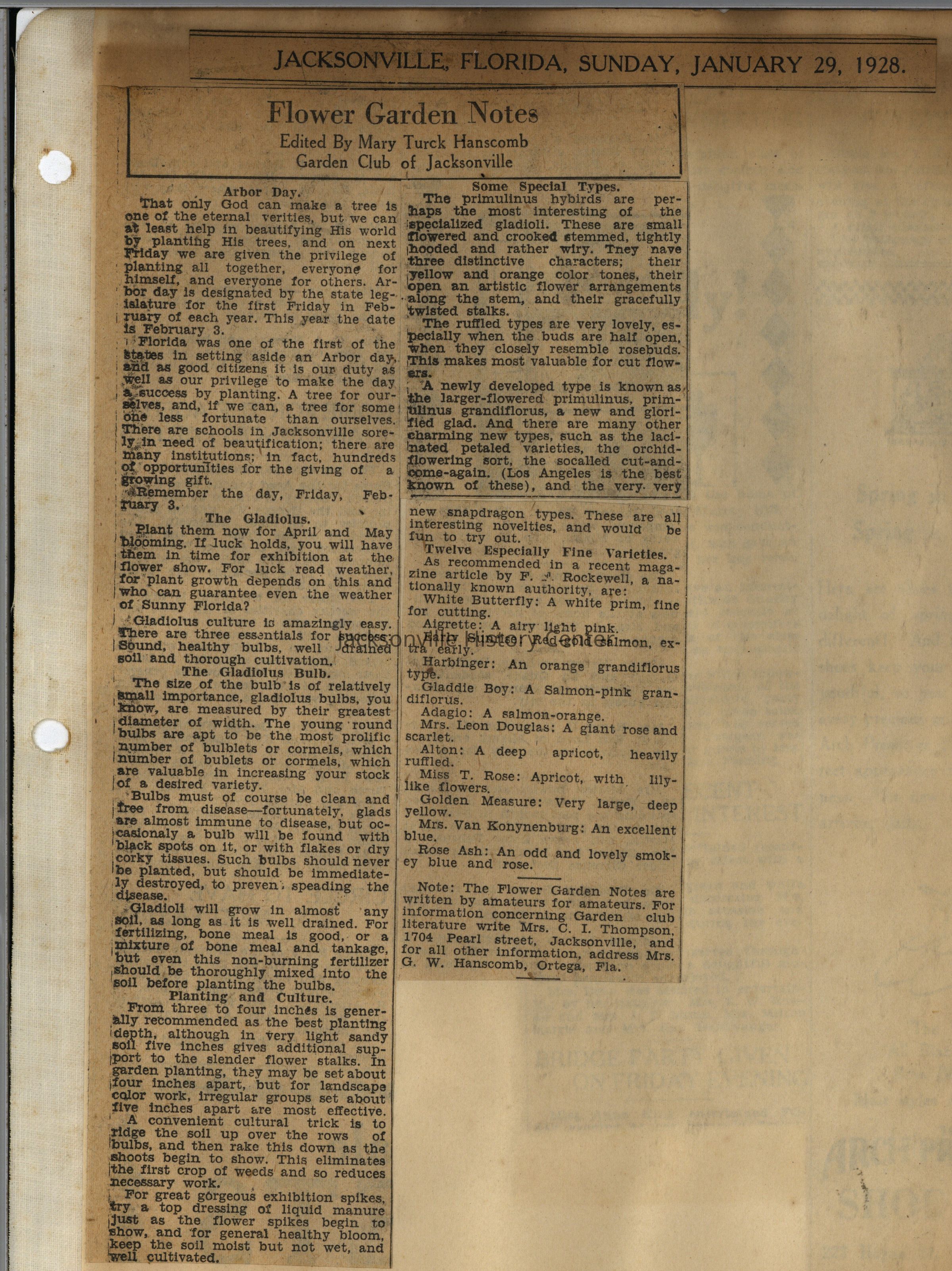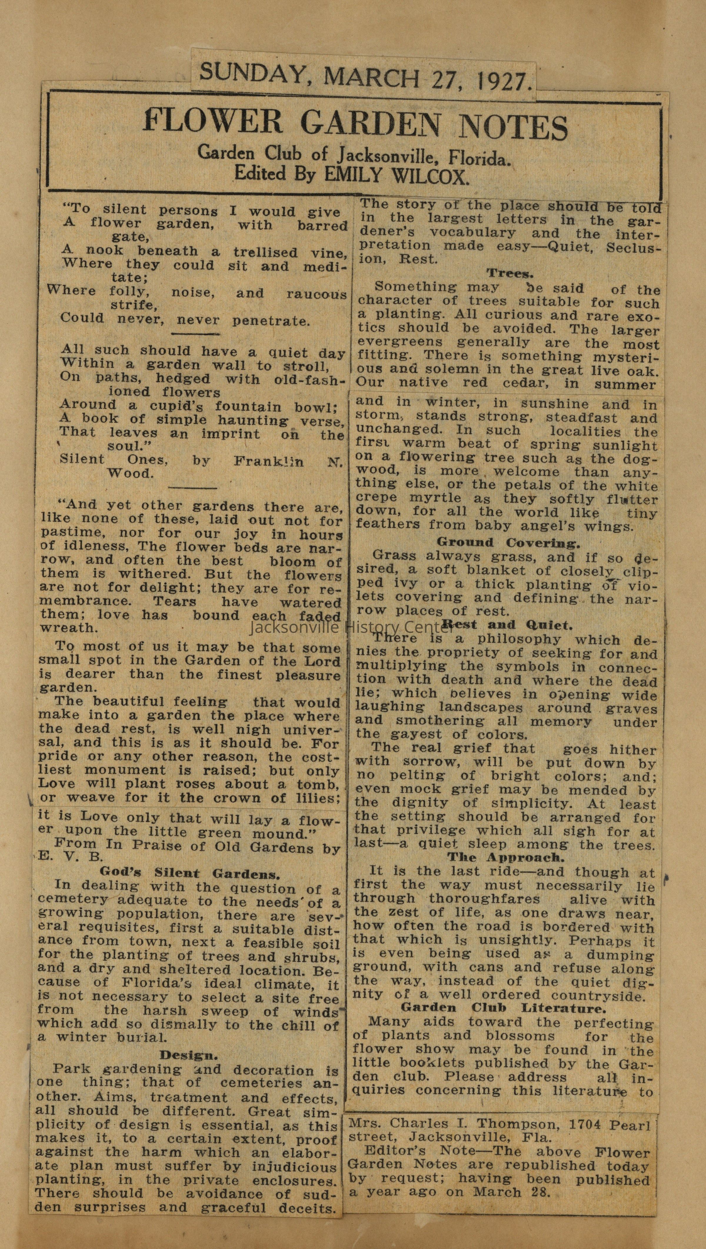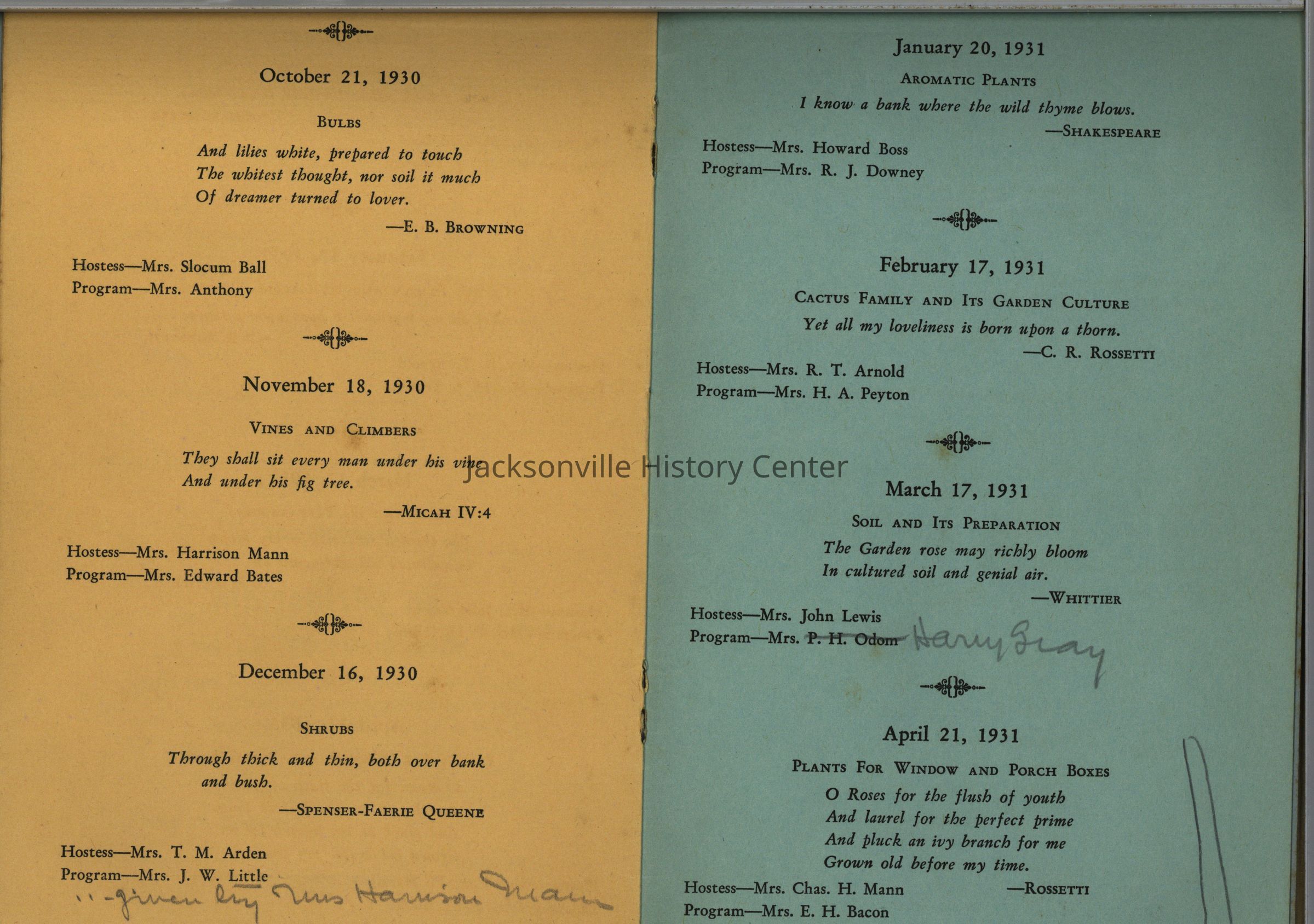Mimosa Circle, Garden Club of Jacksonville, Florida.Notes