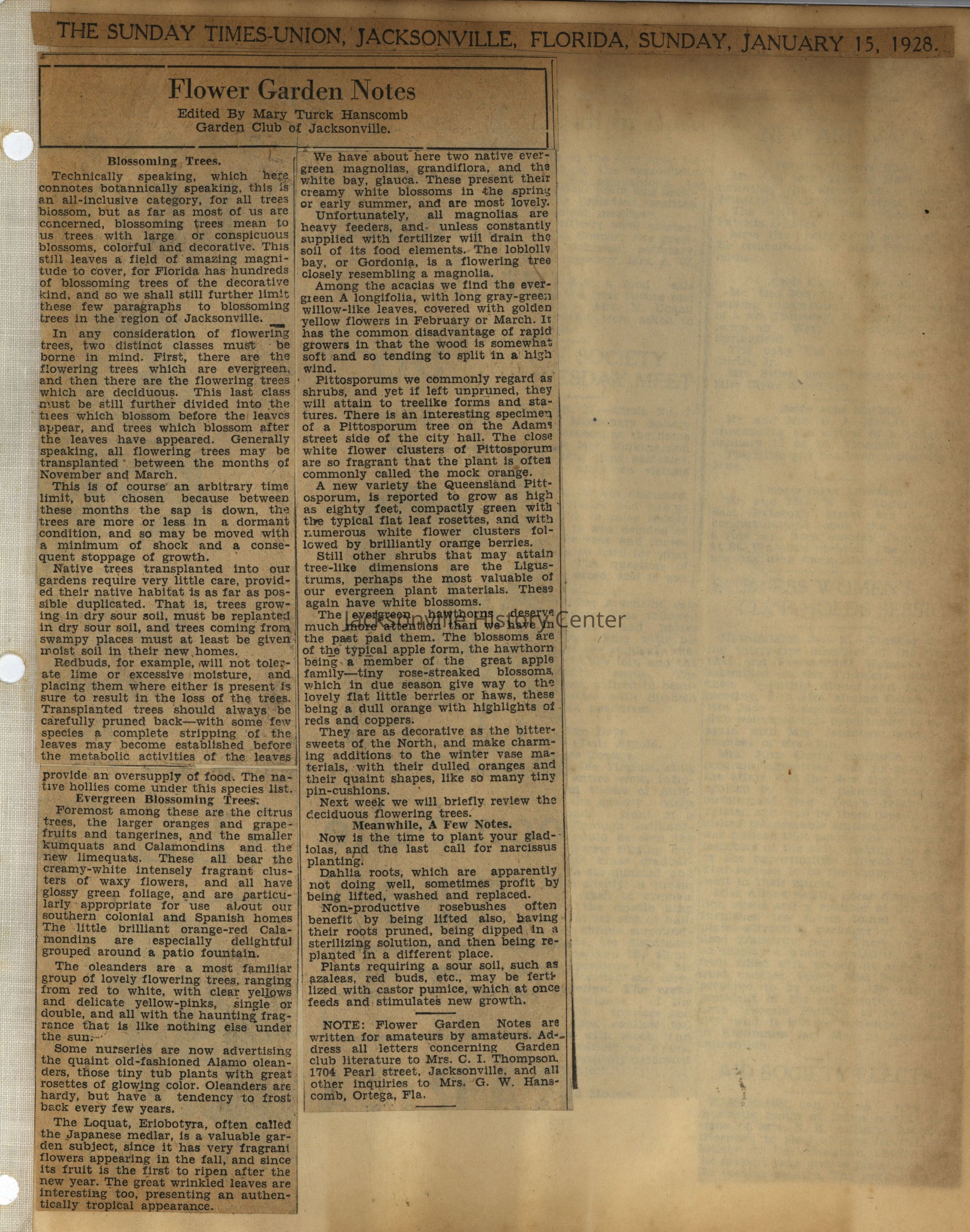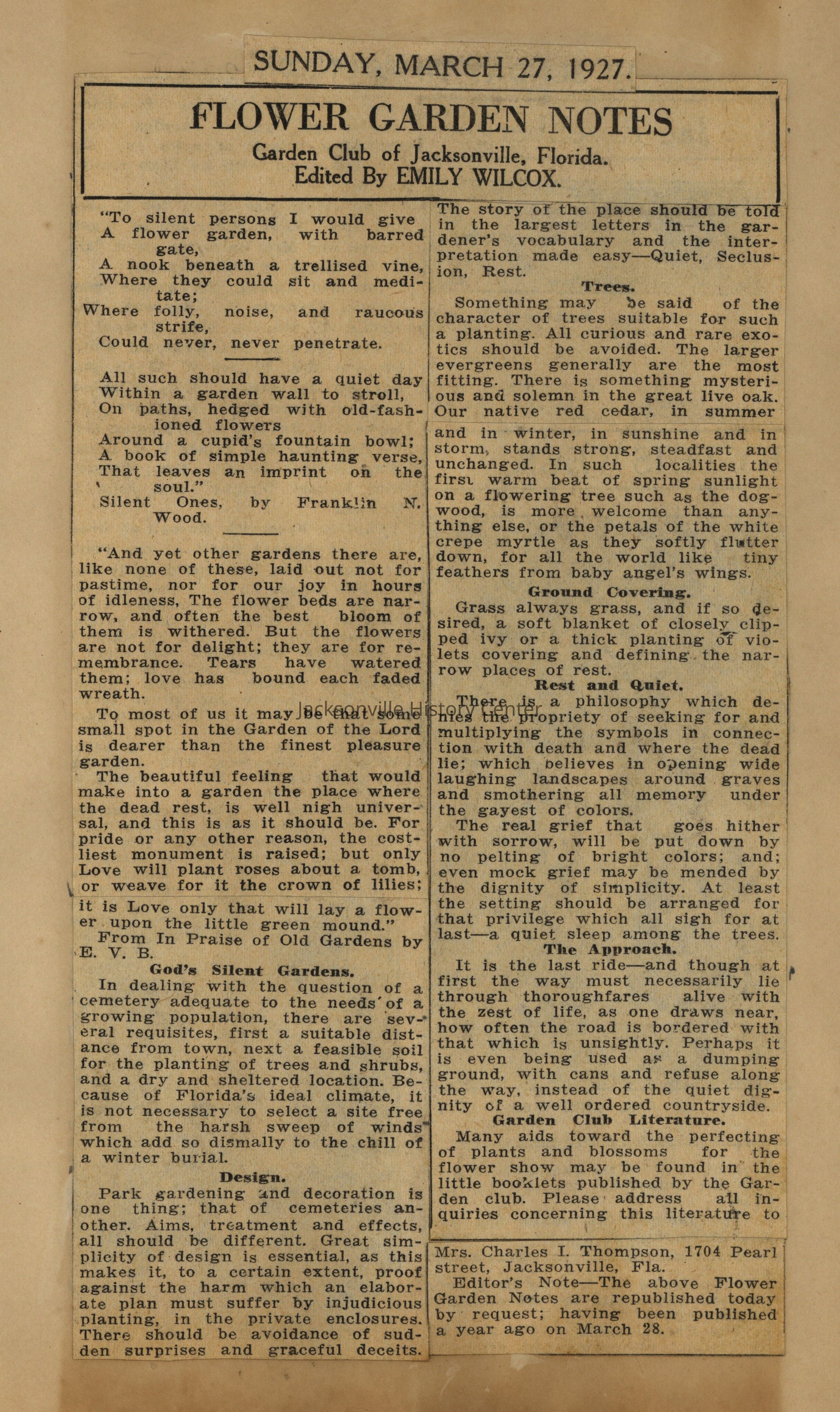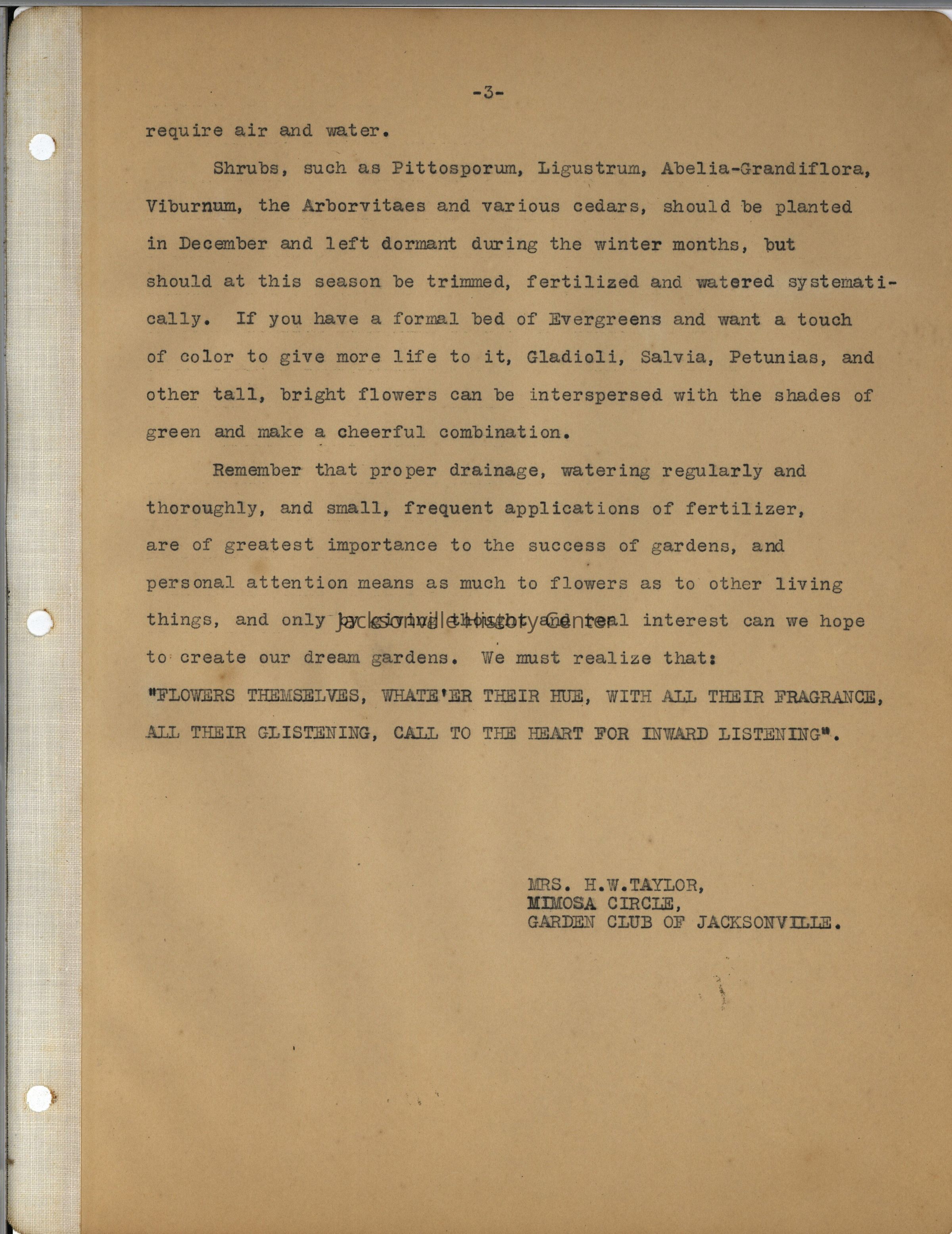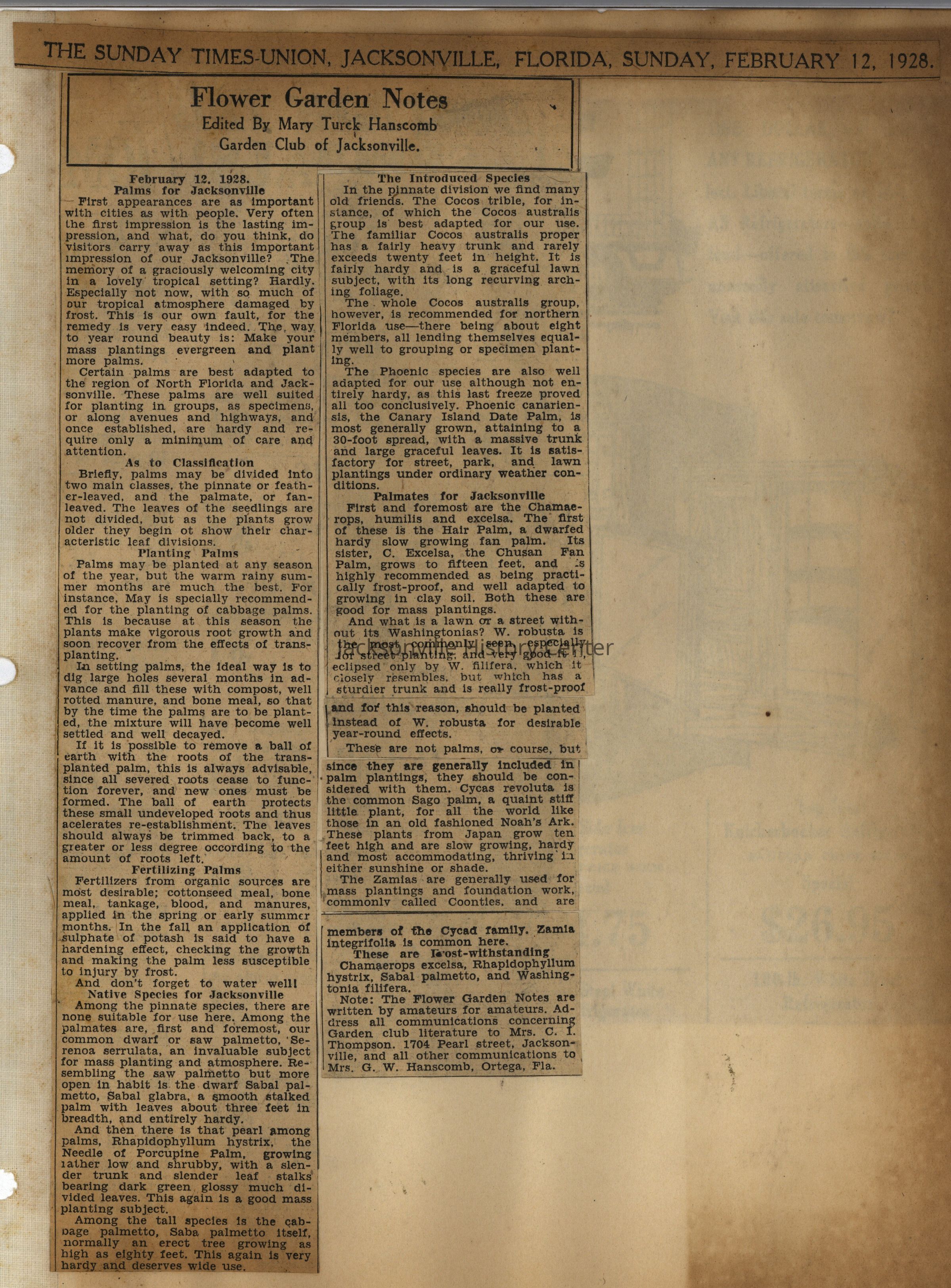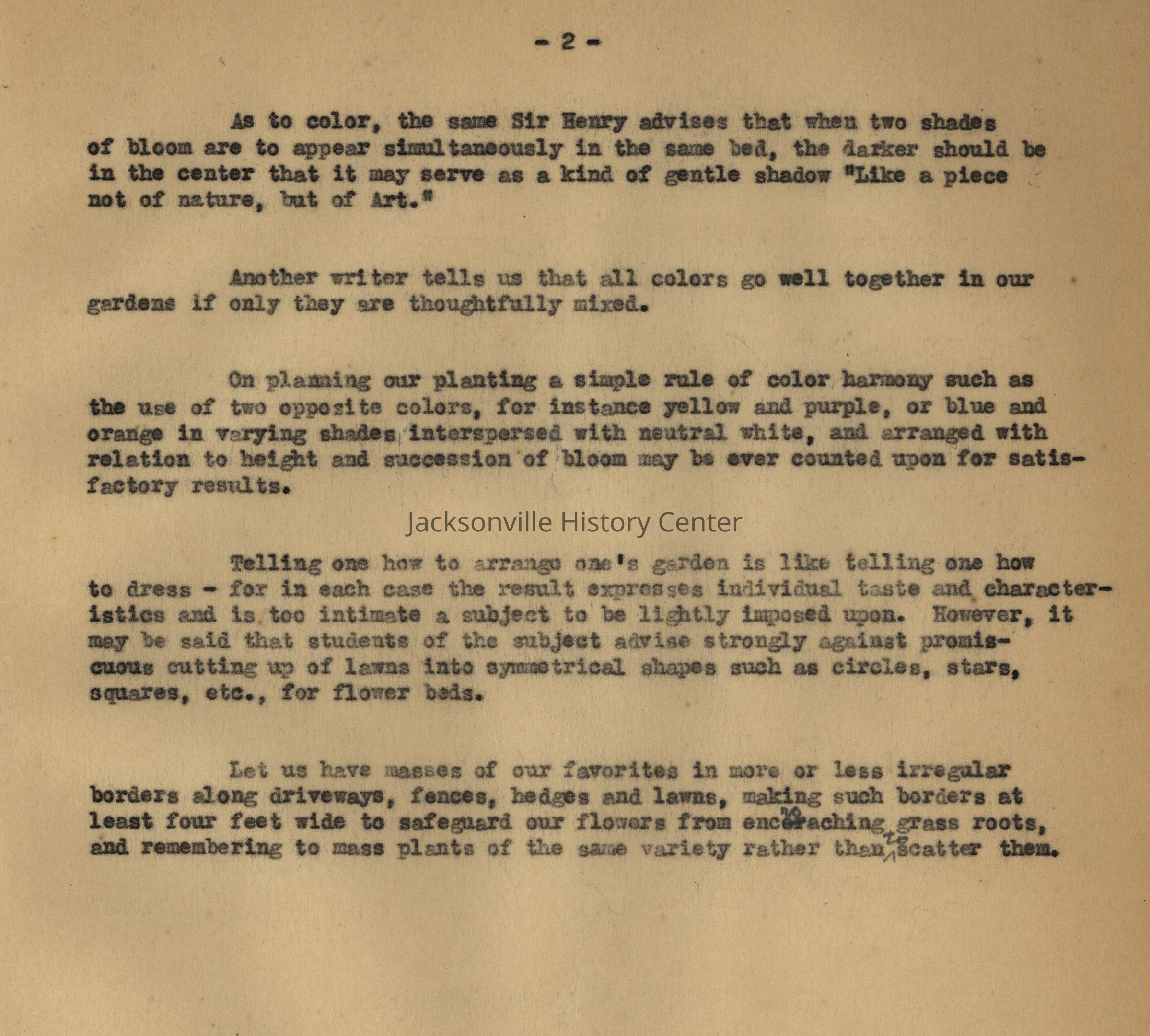 Mimosa Circle, Garden Club of Jacksonville, Florida.Notes