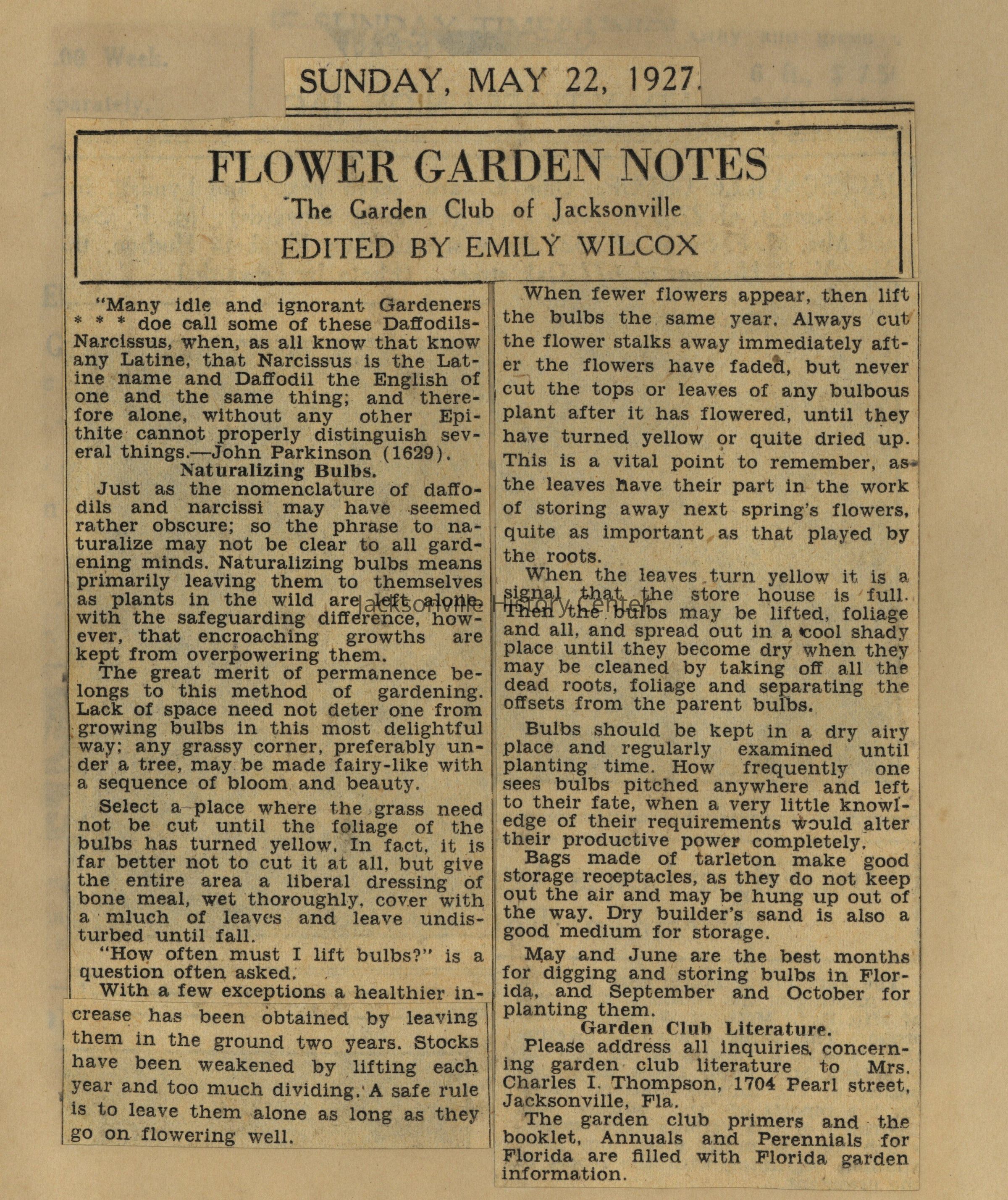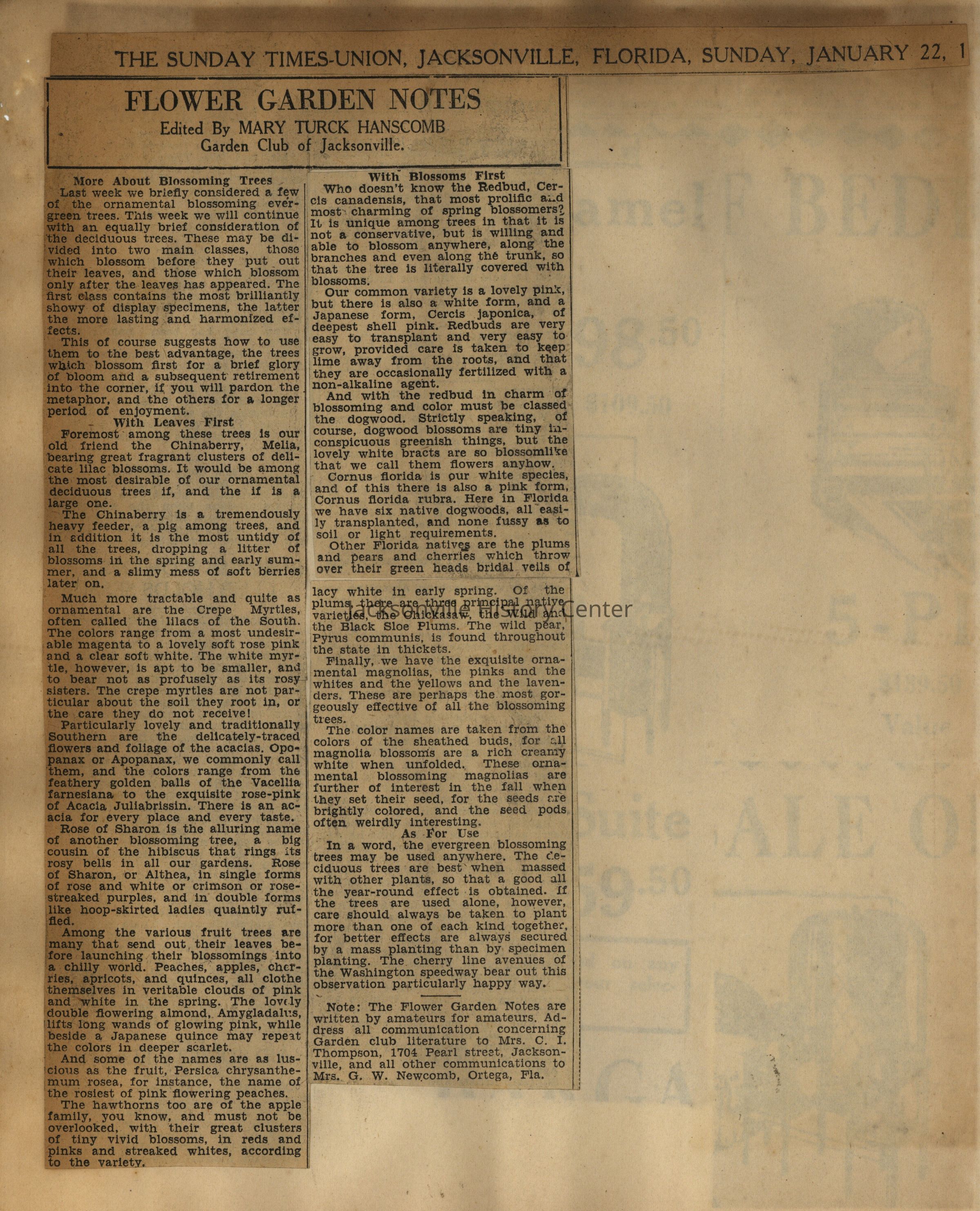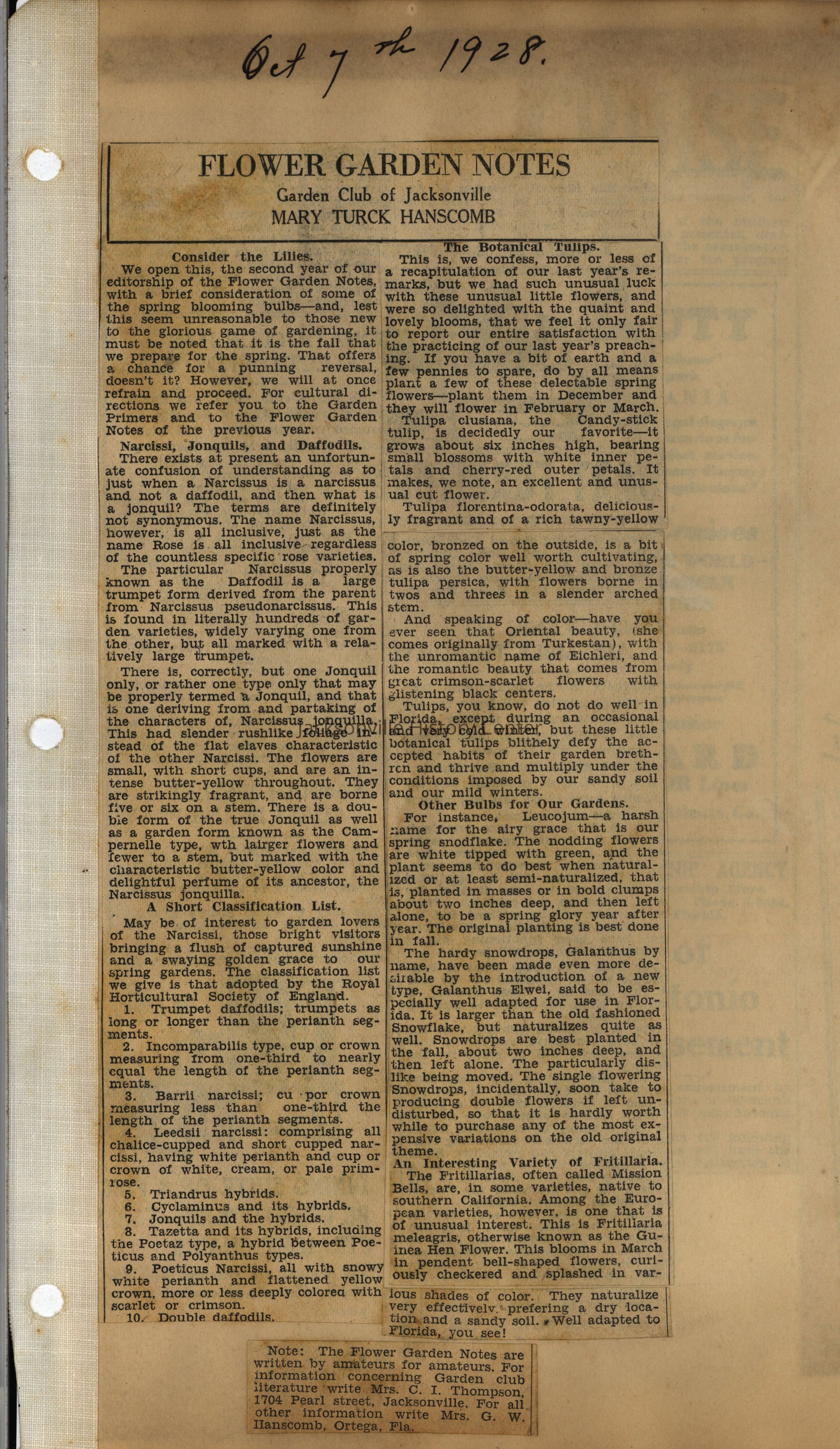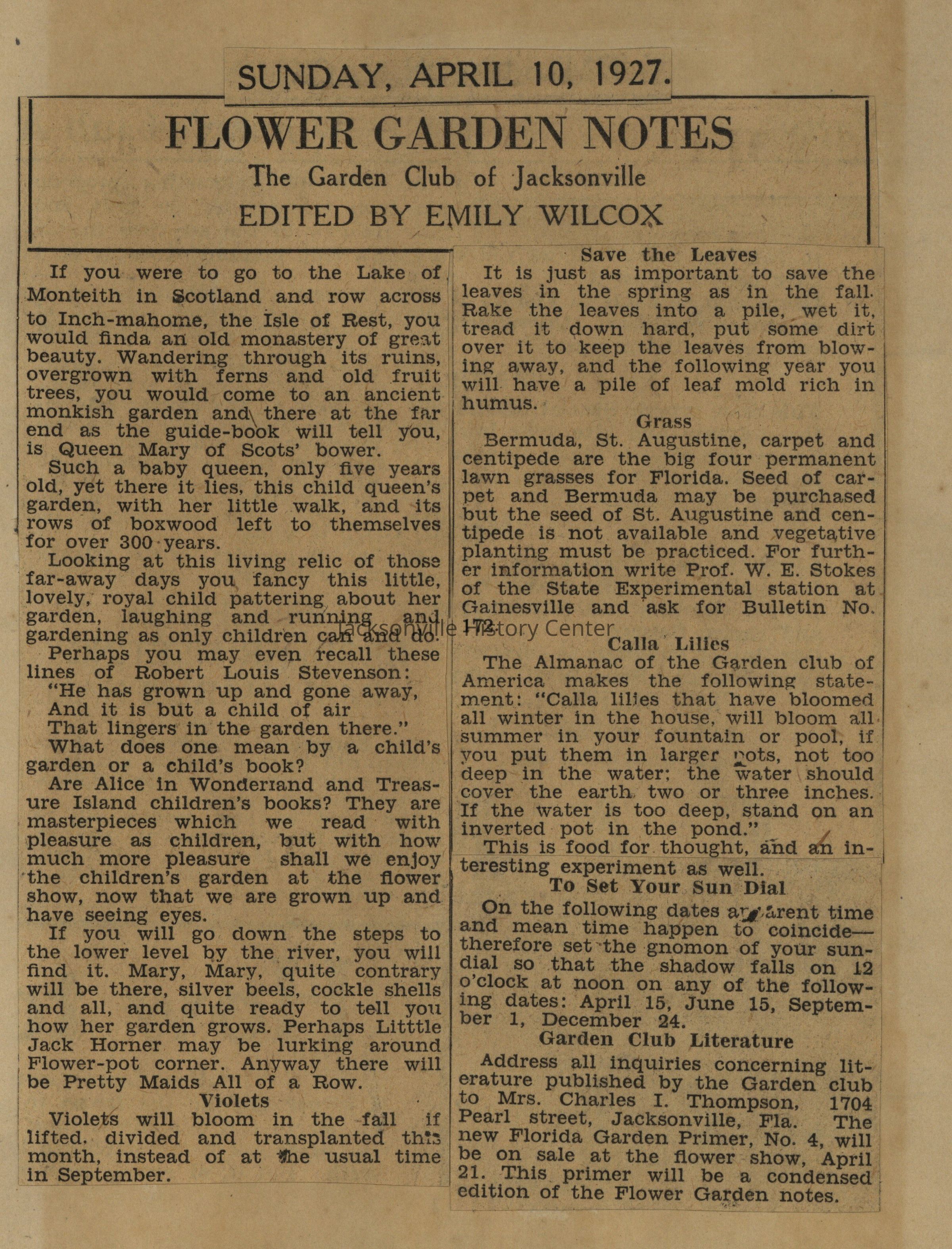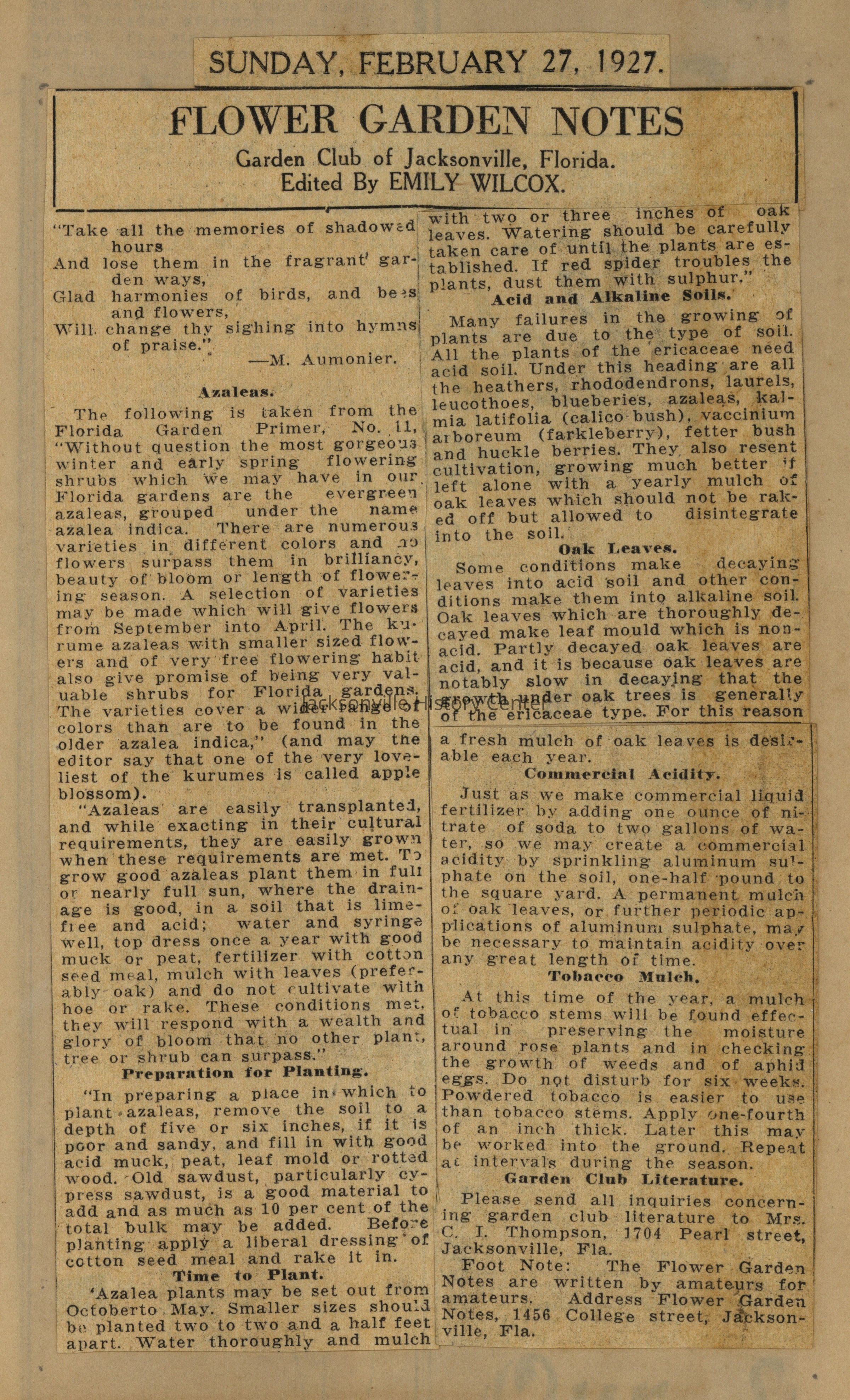 Mimosa Circle, Garden Club of Jacksonville, Florida.Notes