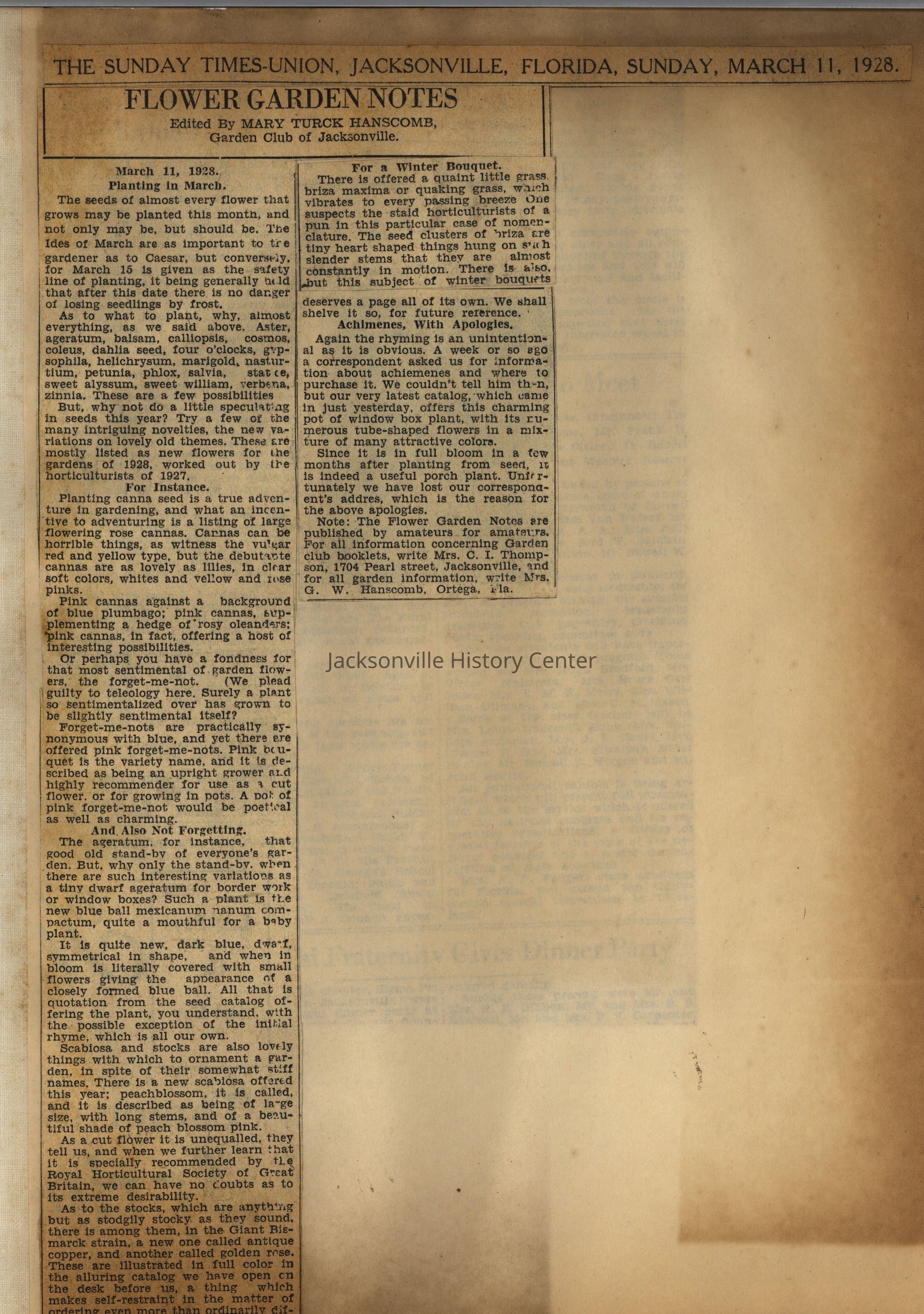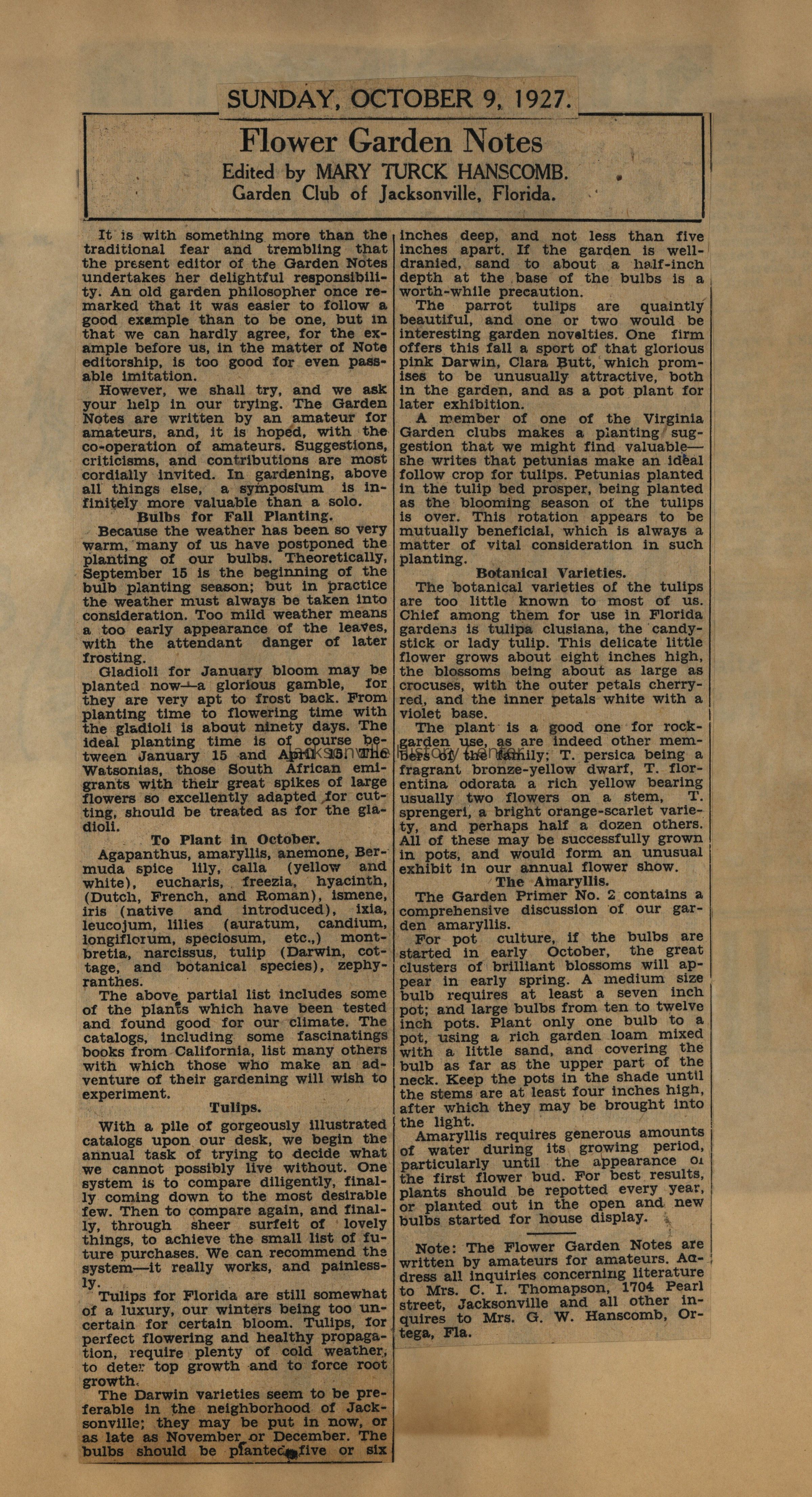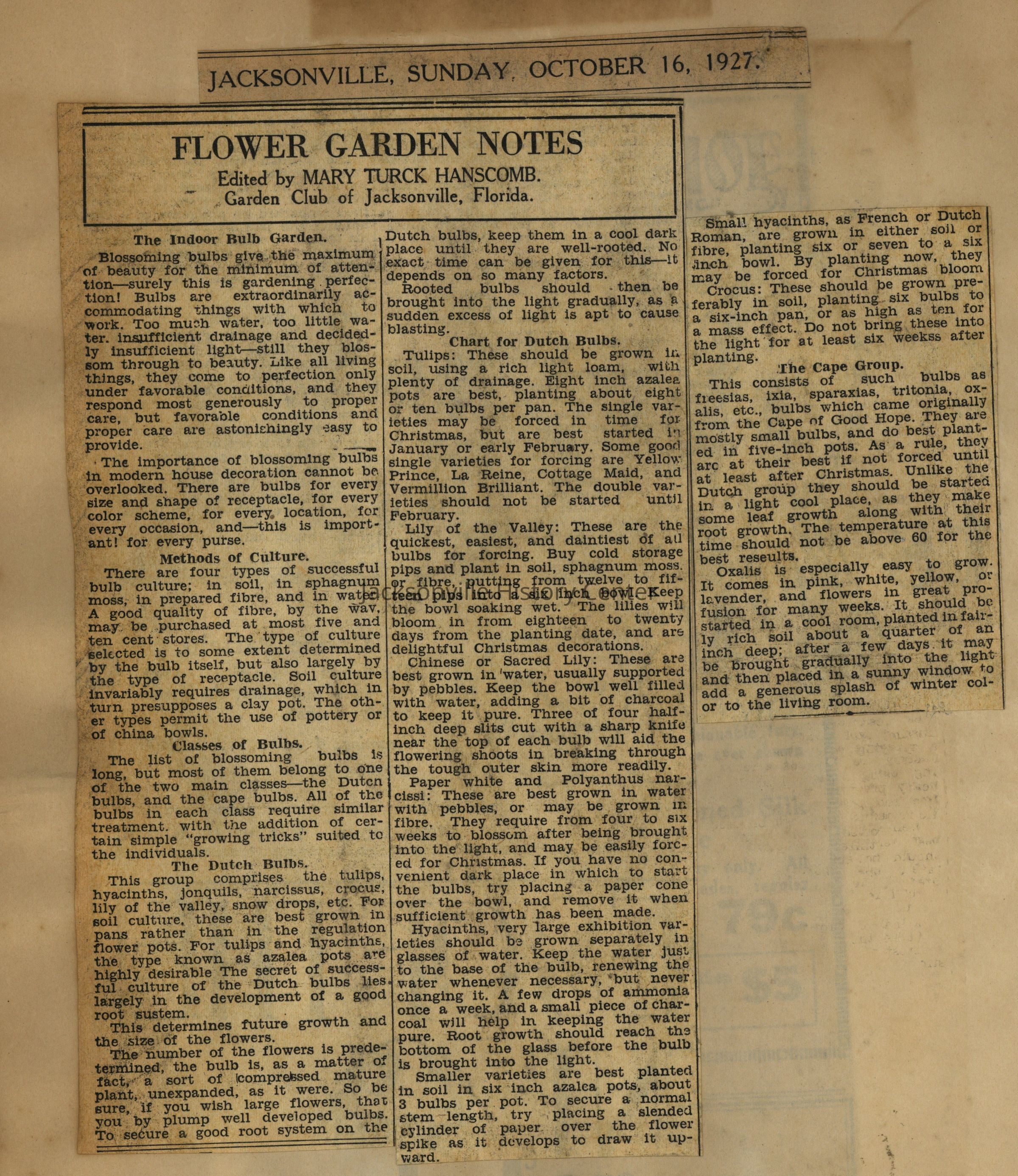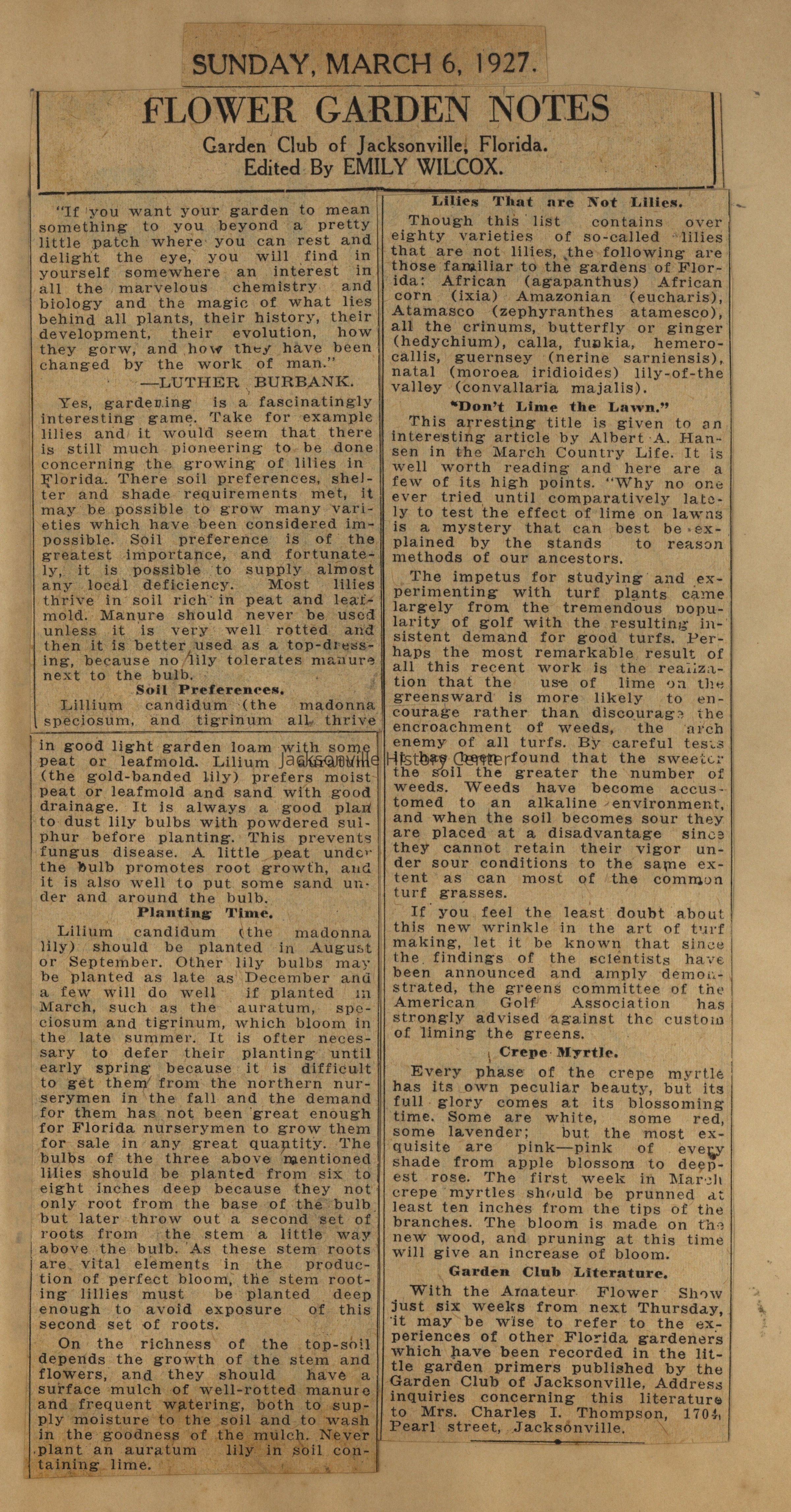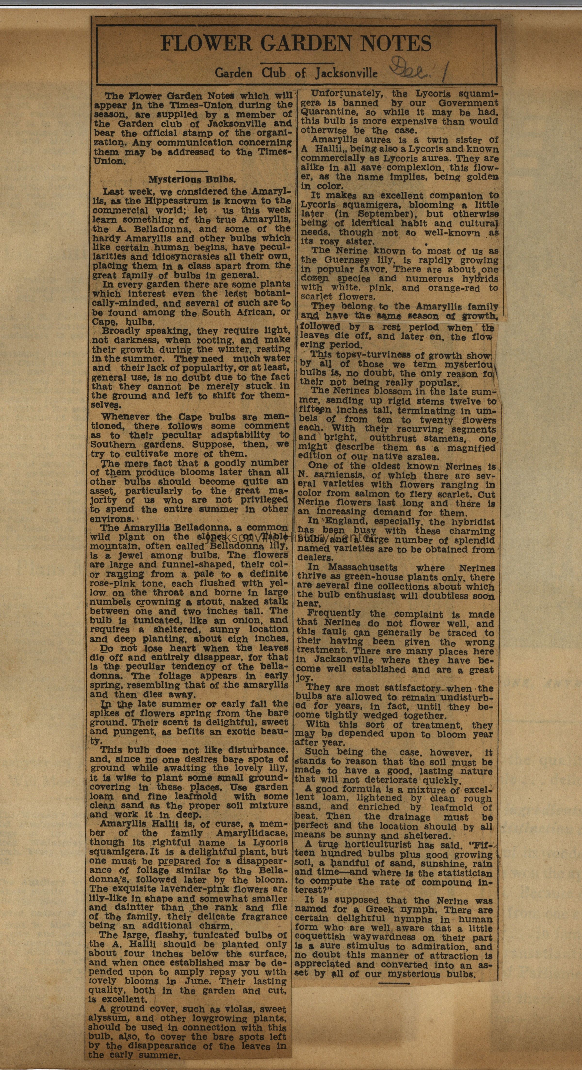 Mimosa Circle, Garden Club of Jacksonville, Florida.Notes