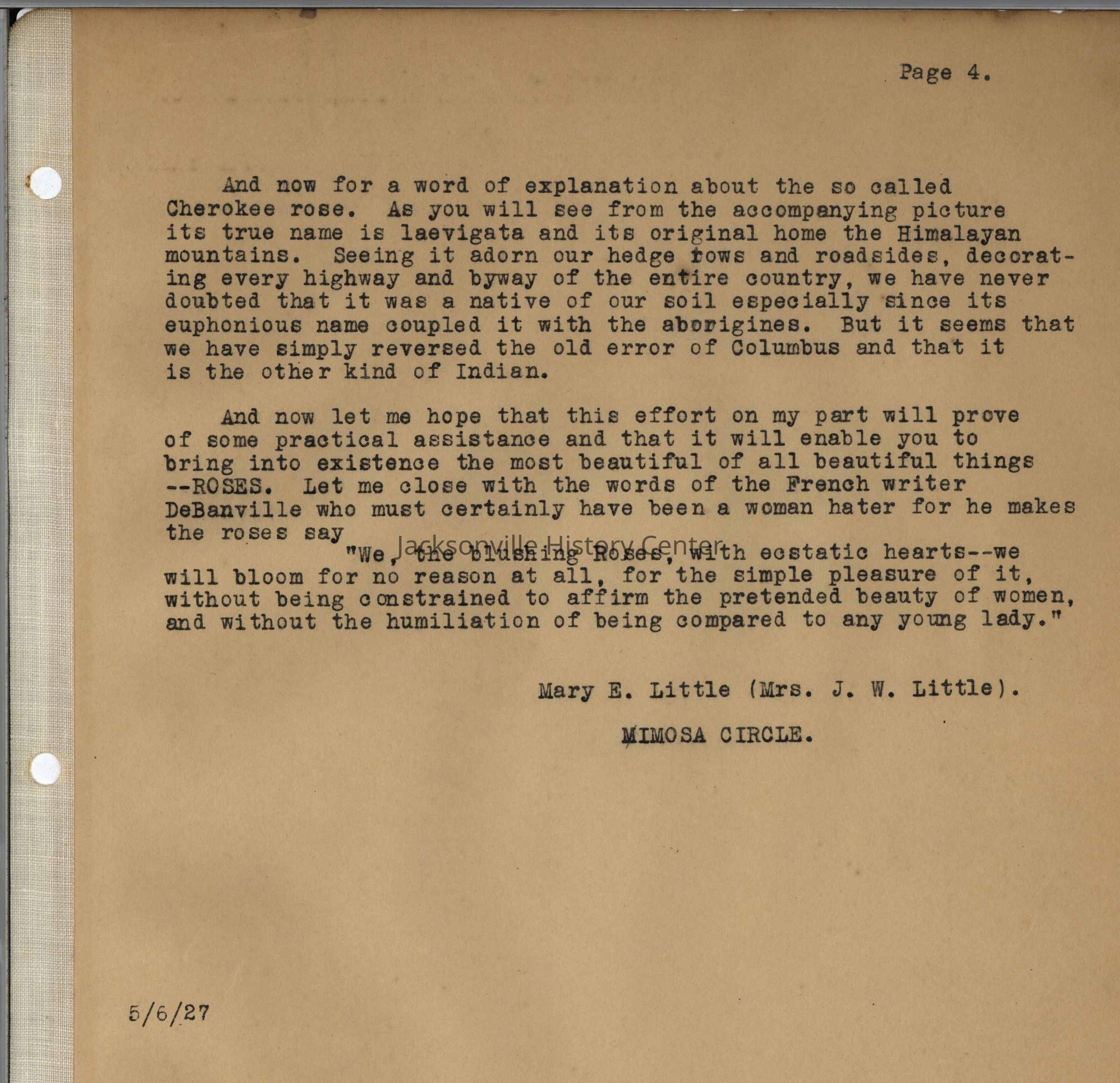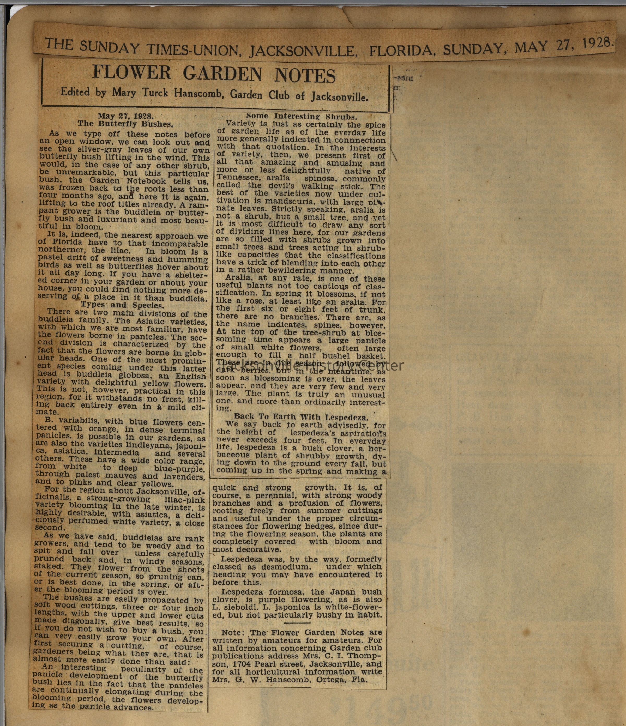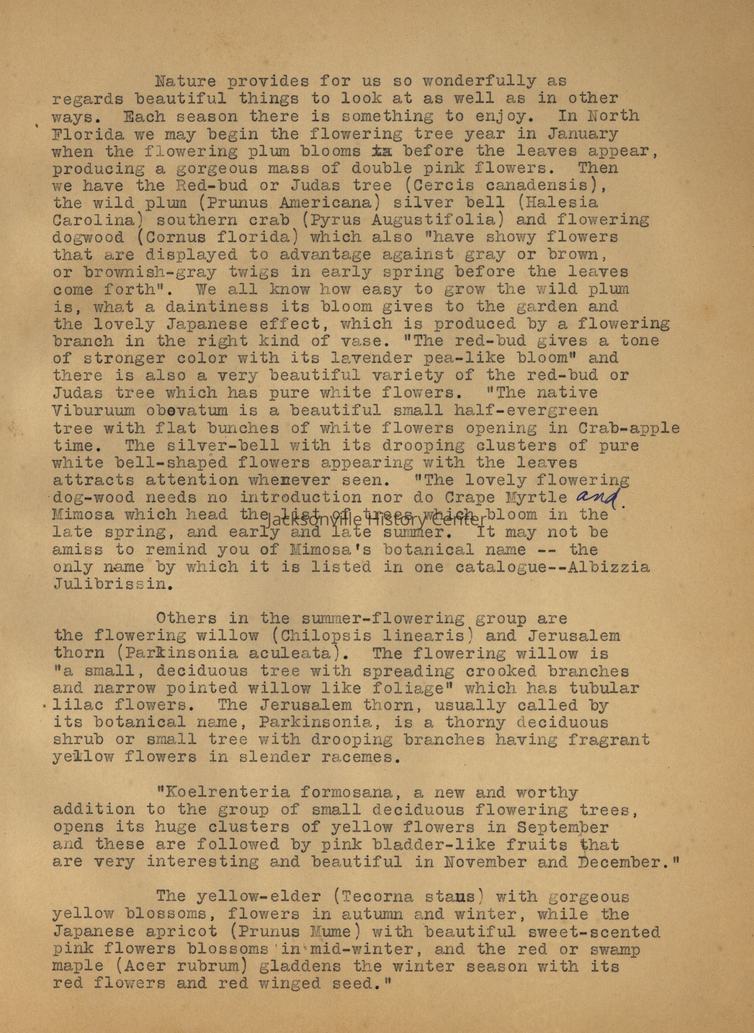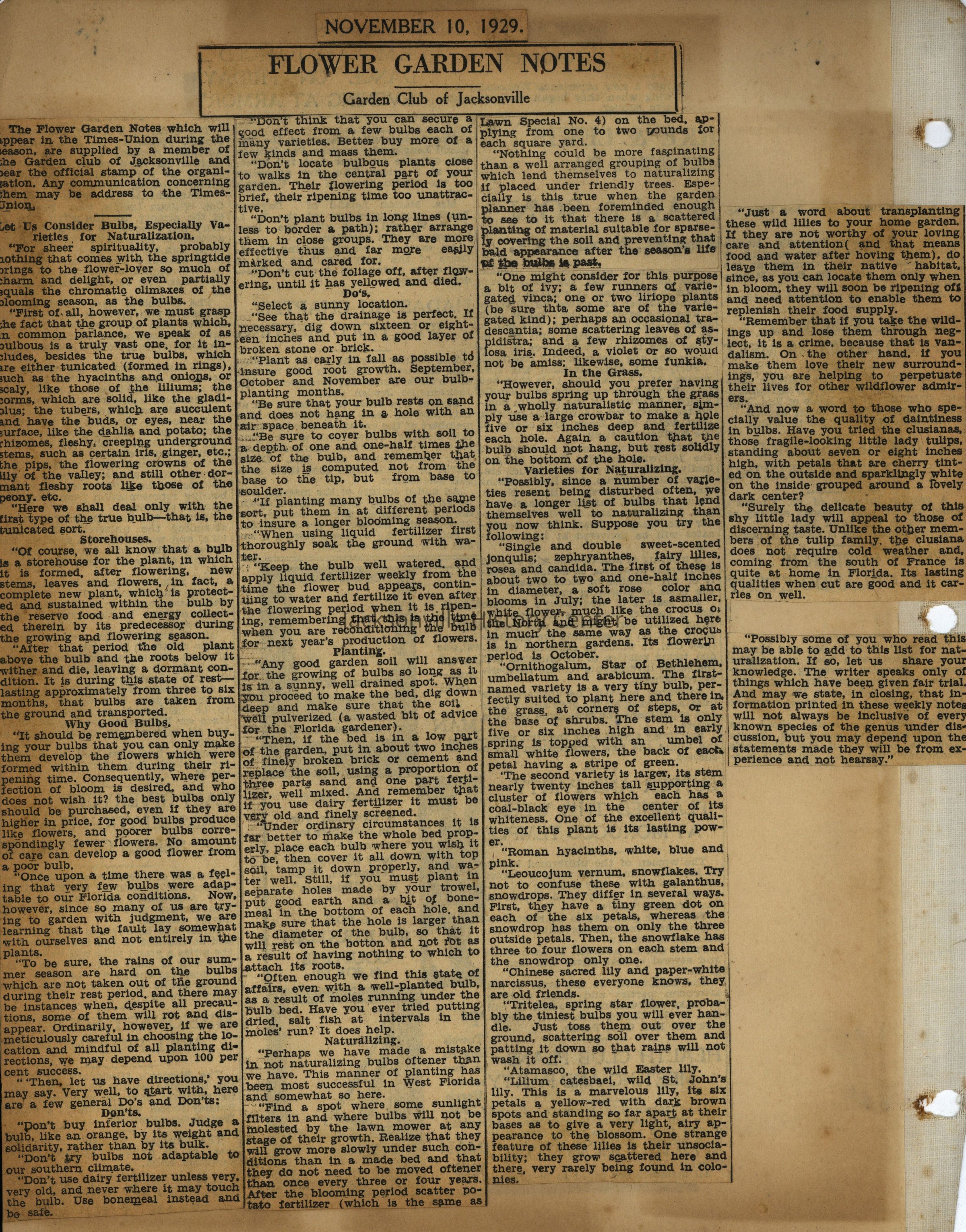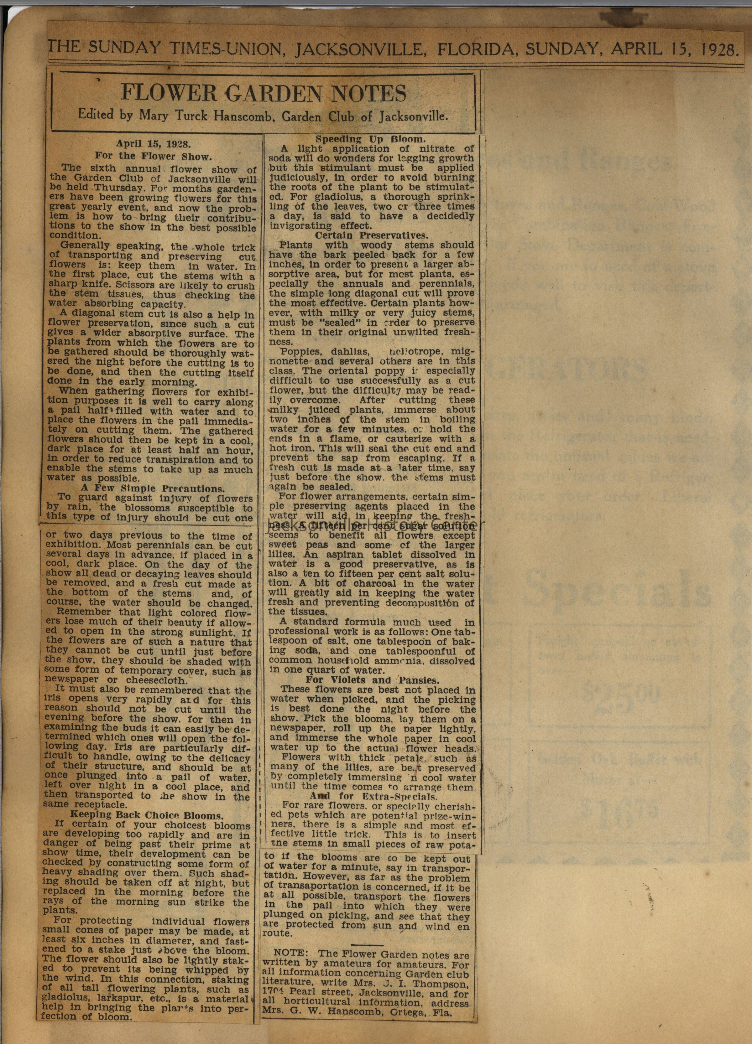 Mimosa Circle, Garden Club of Jacksonville, Florida.Notes