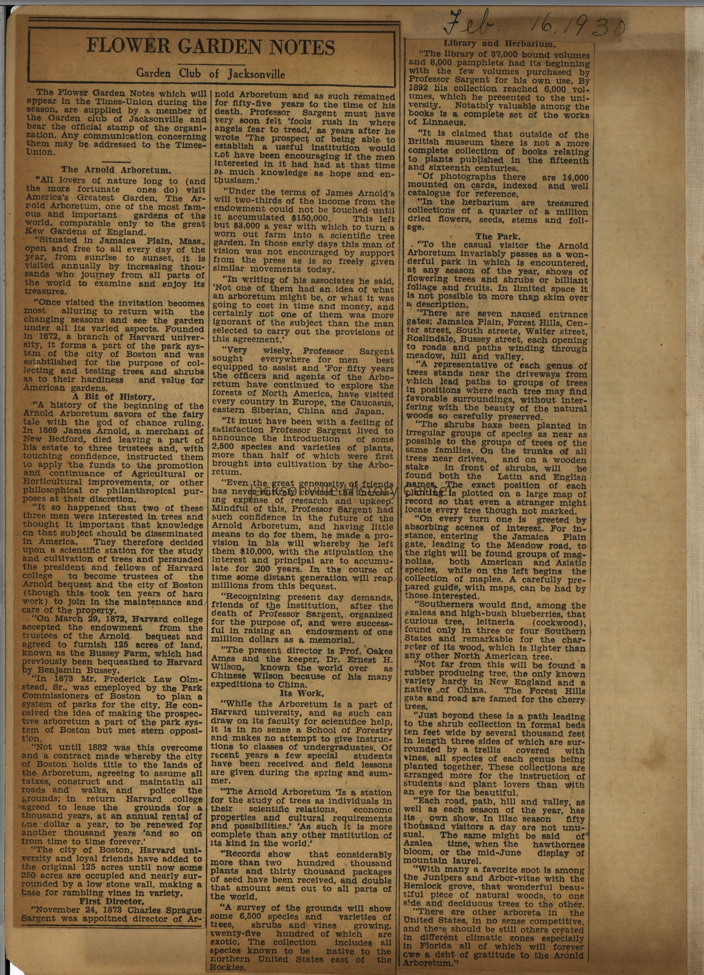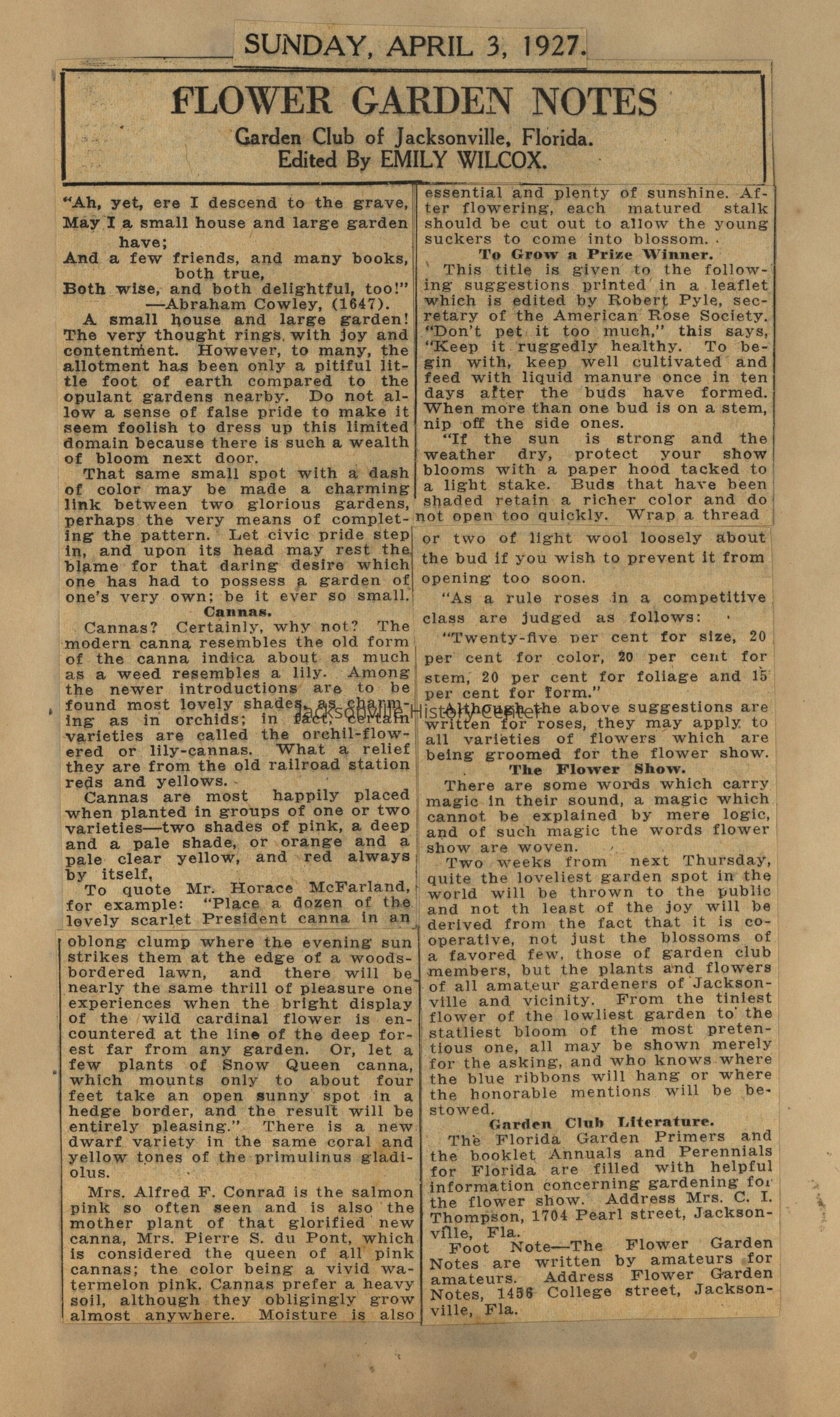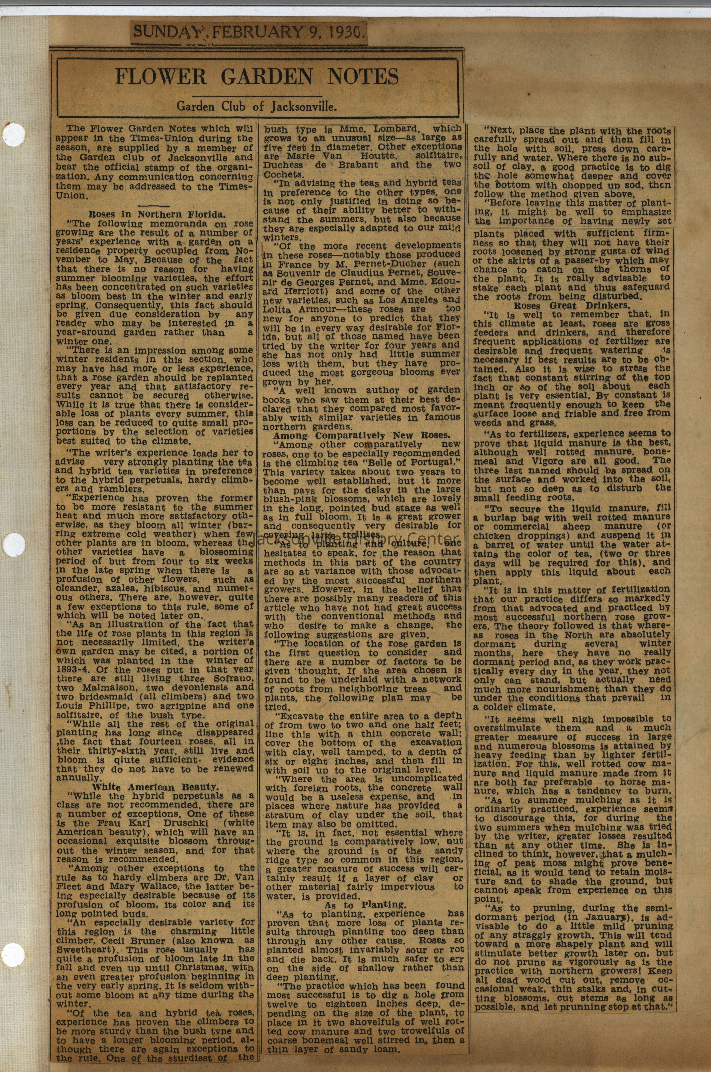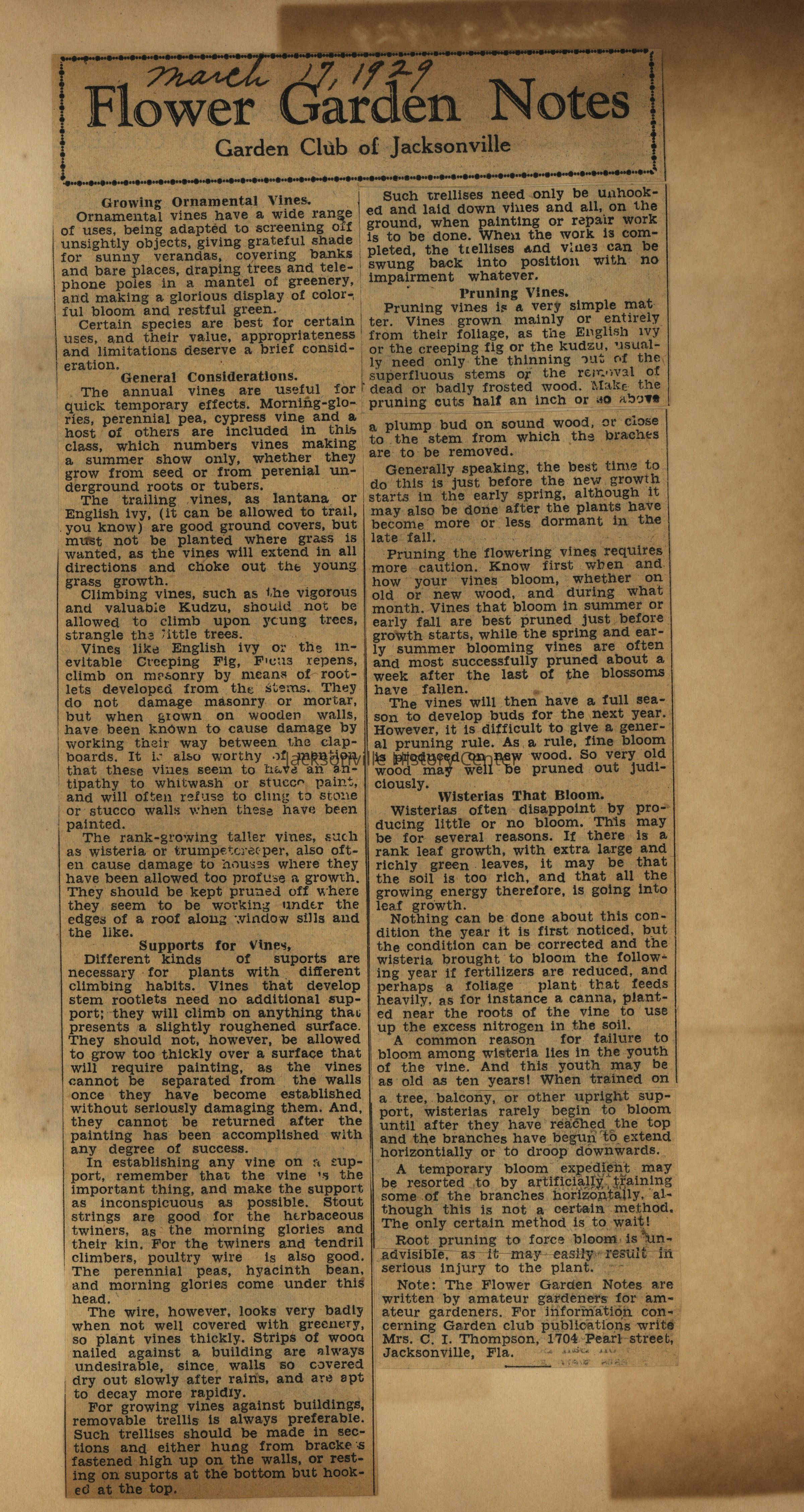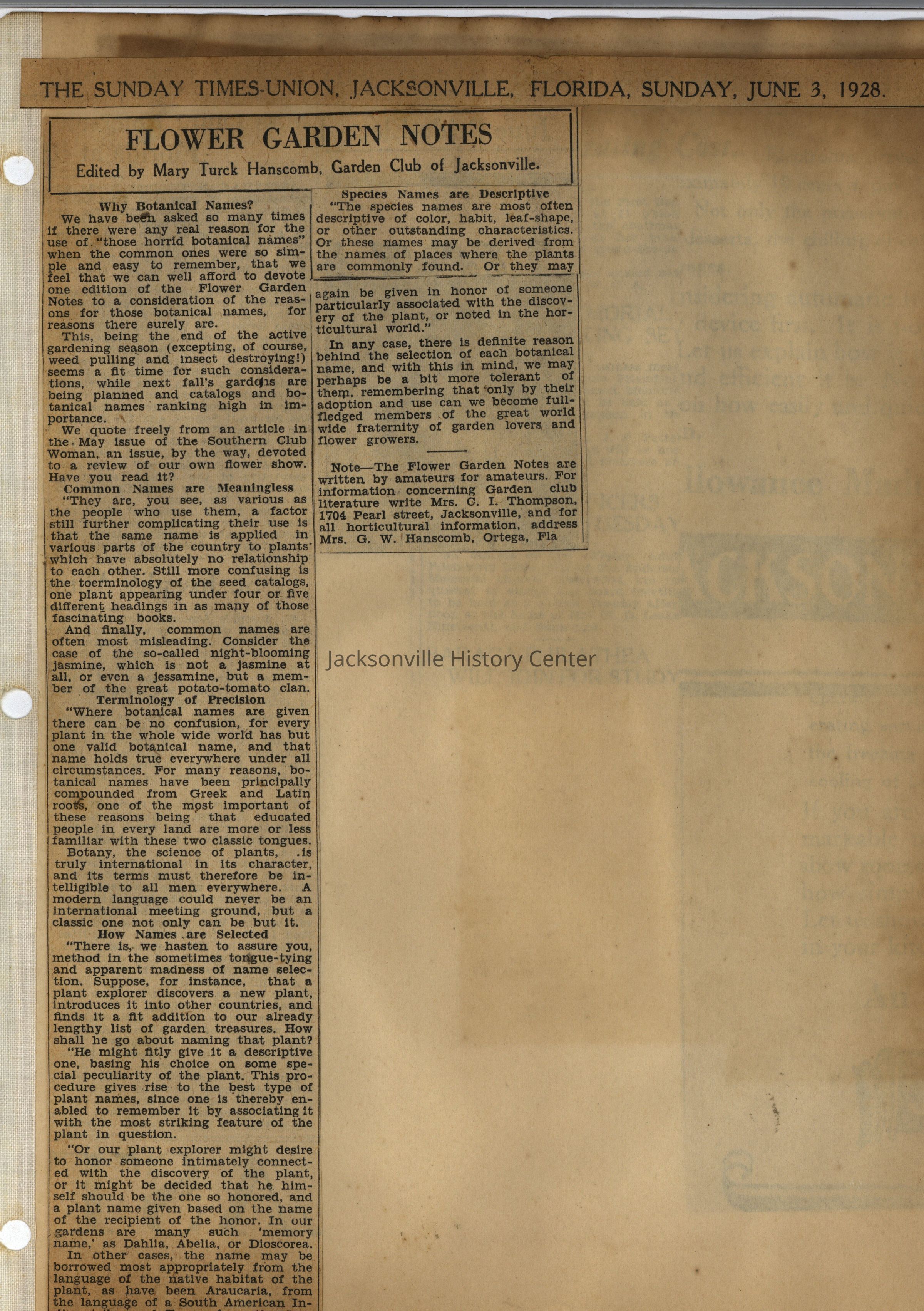 Mimosa Circle, Garden Club of Jacksonville, Florida.Notes