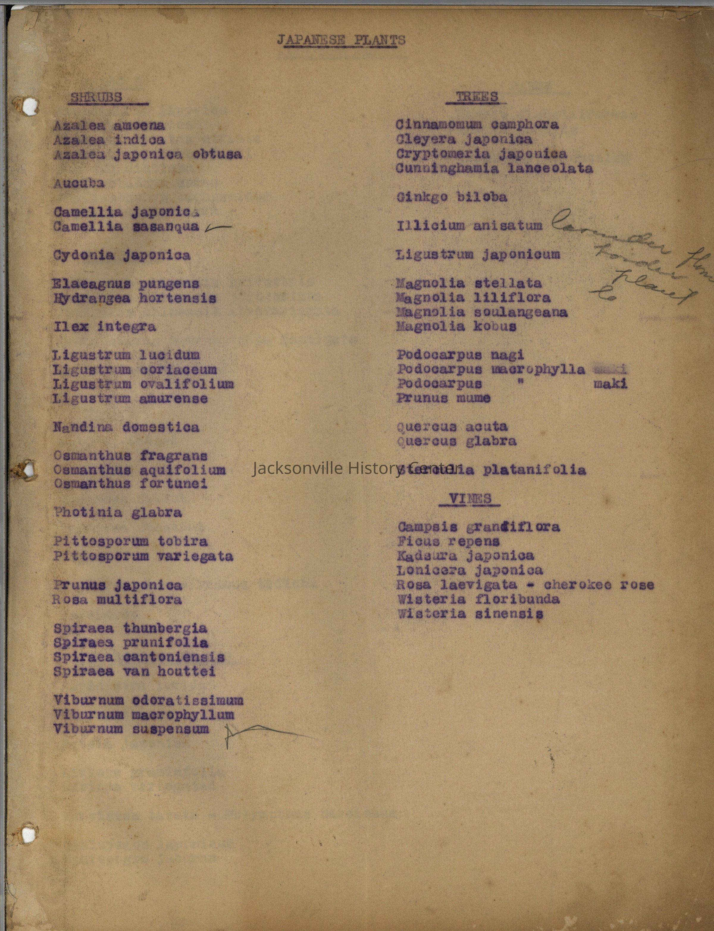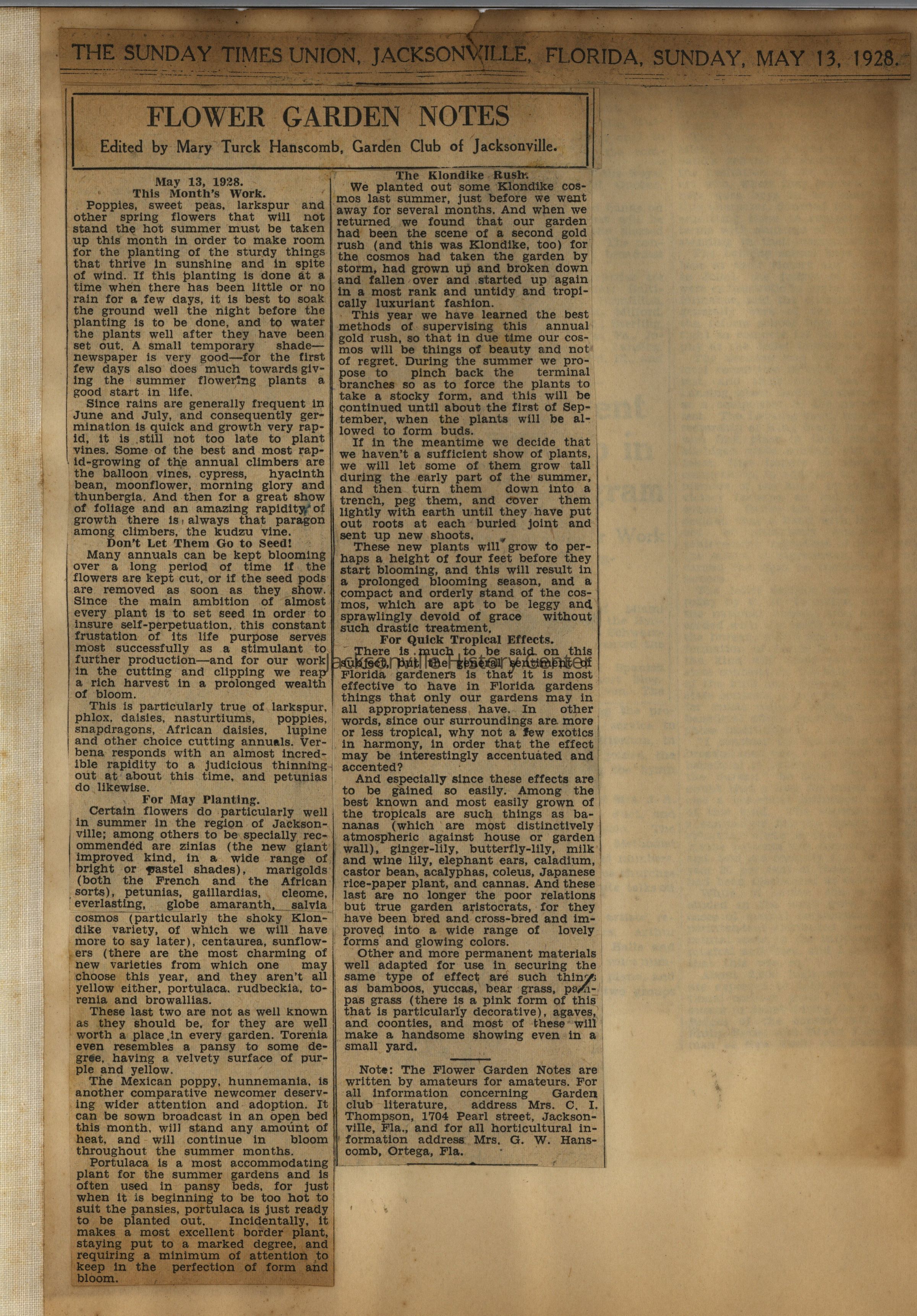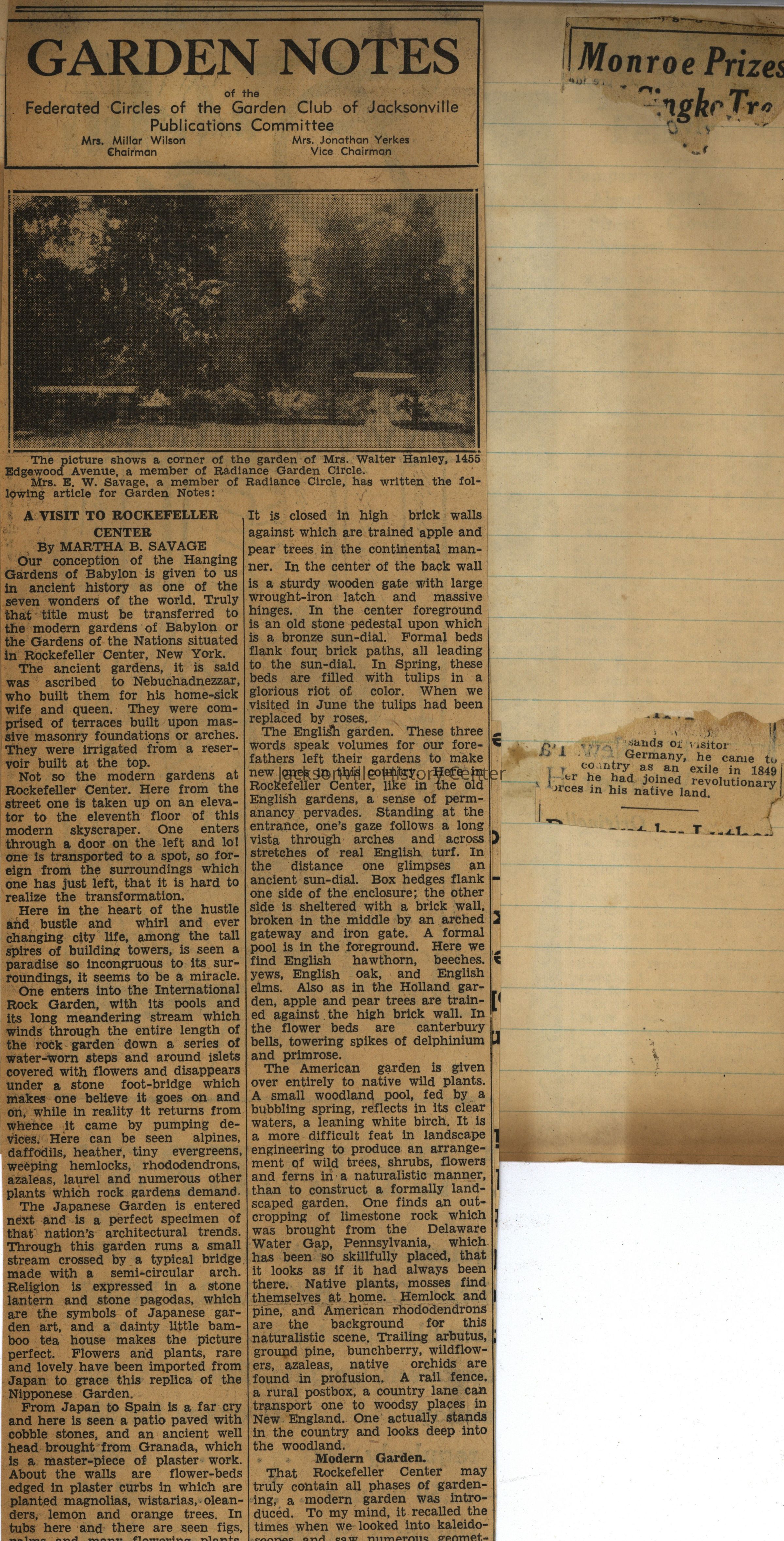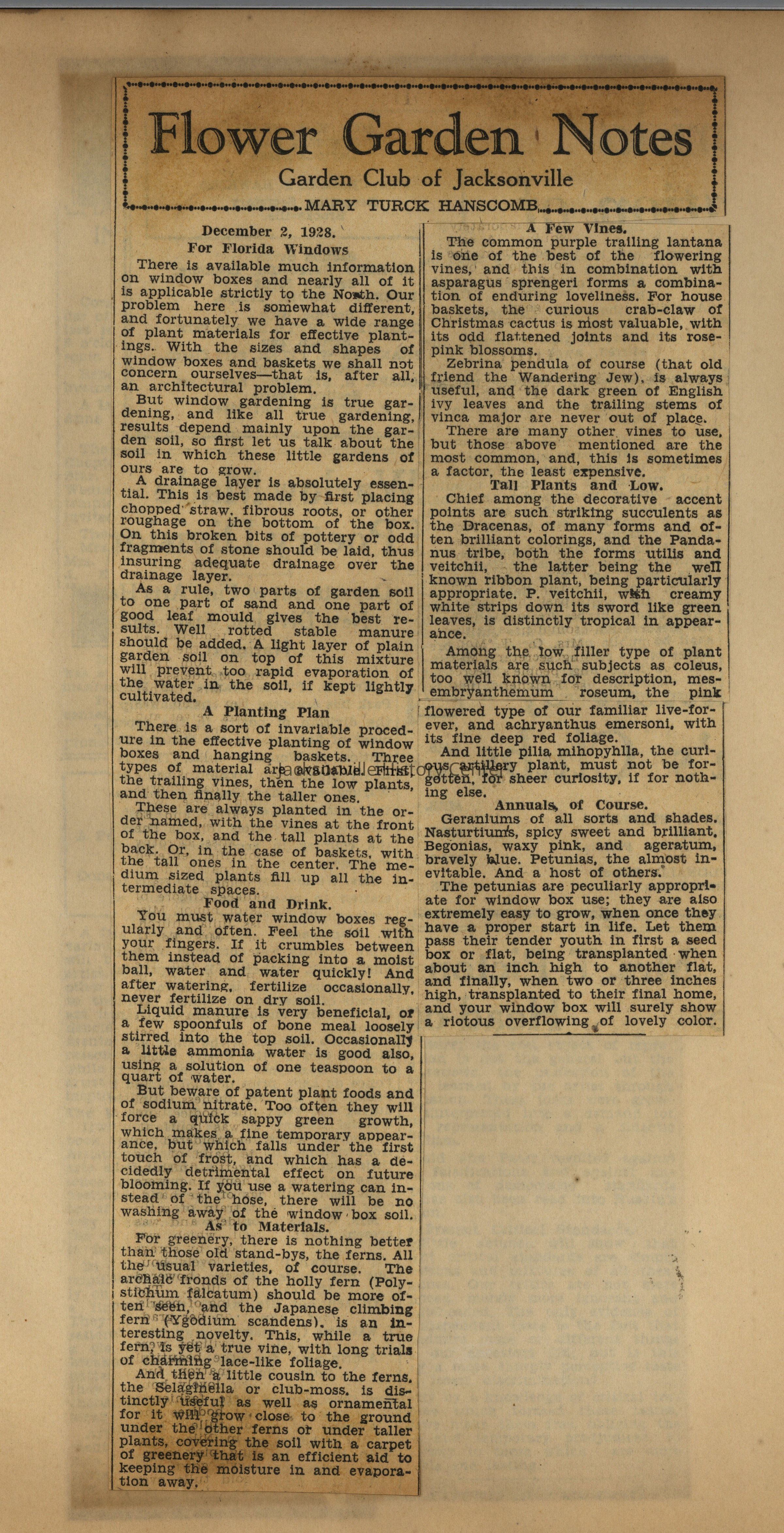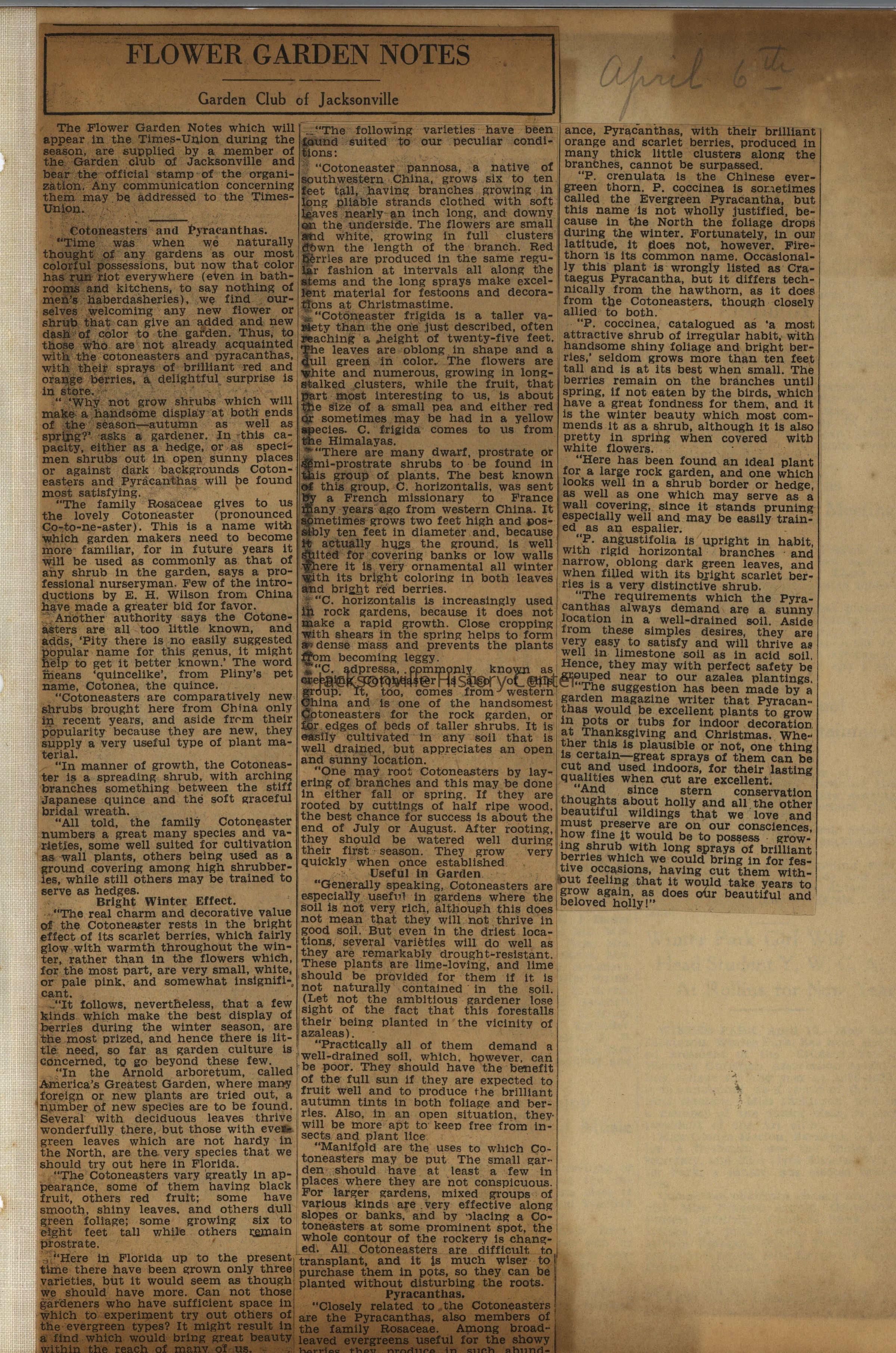 Mimosa Circle, Garden Club of Jacksonville, Florida.Notes