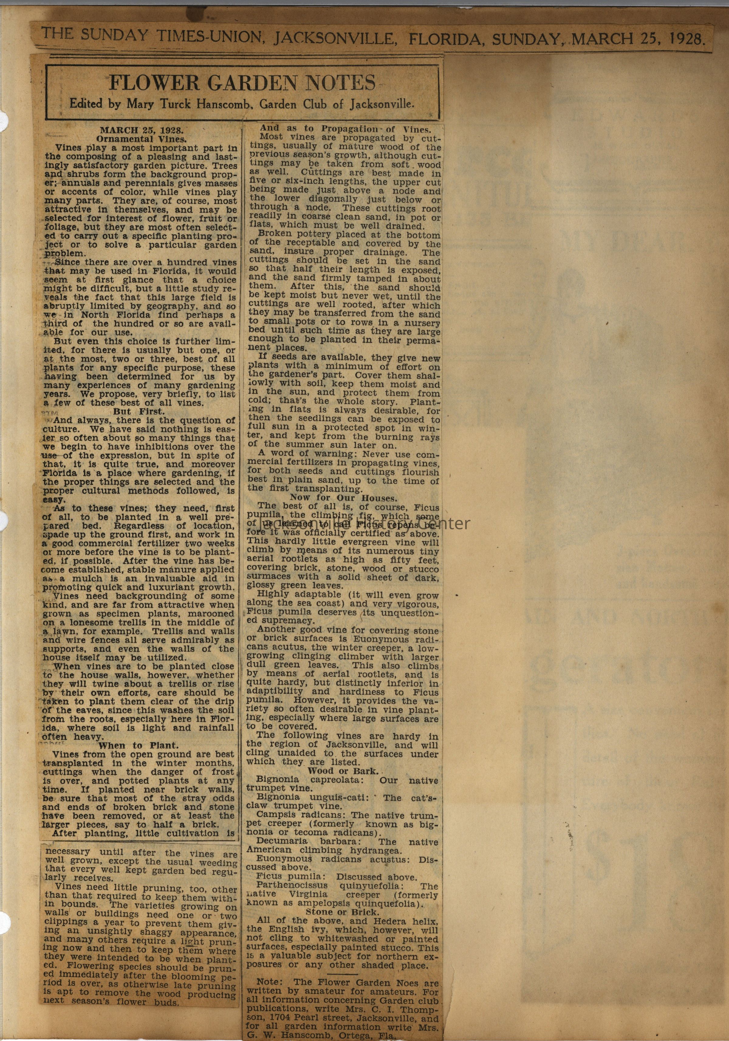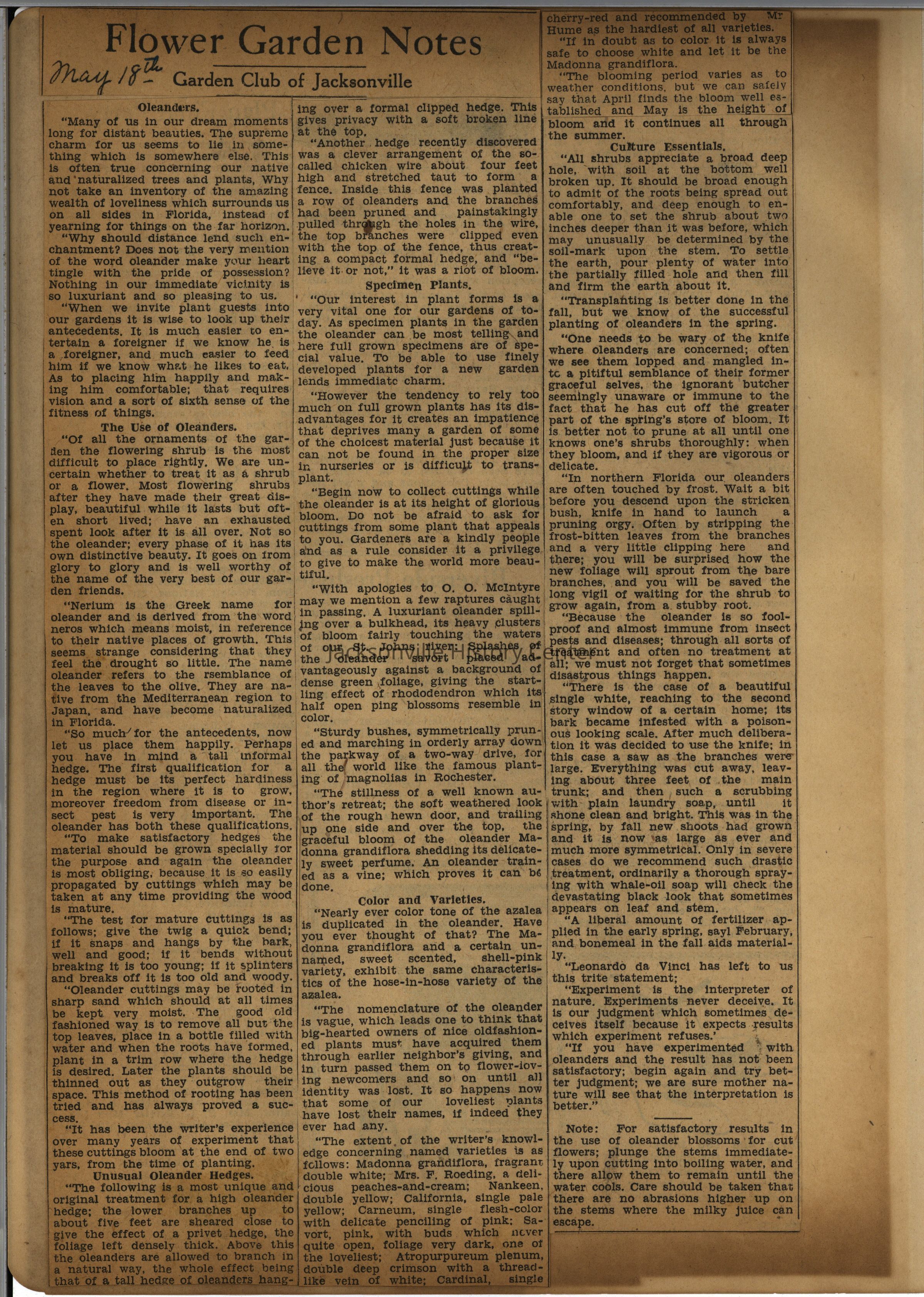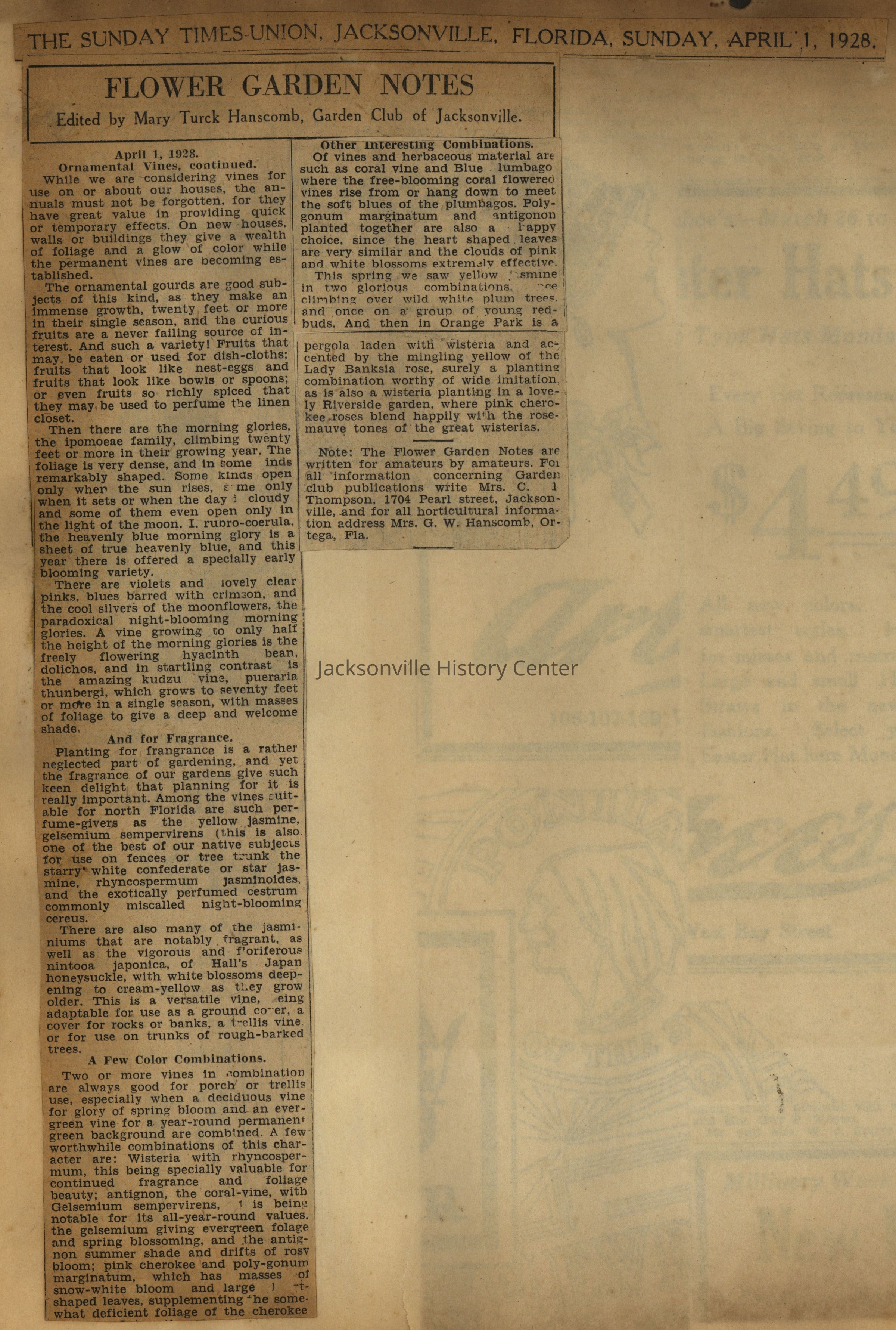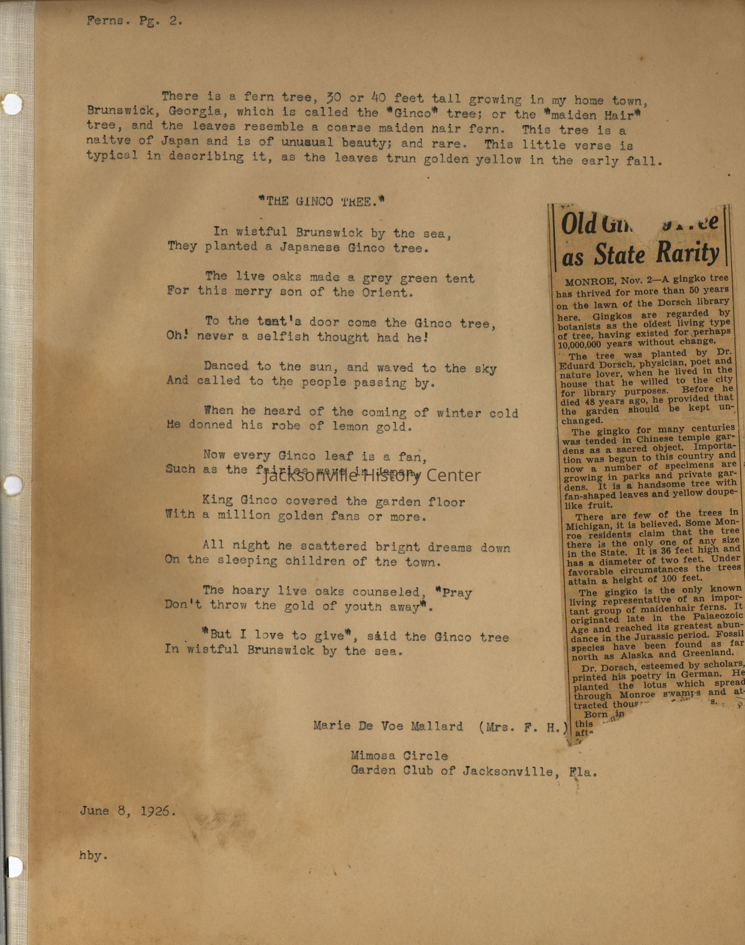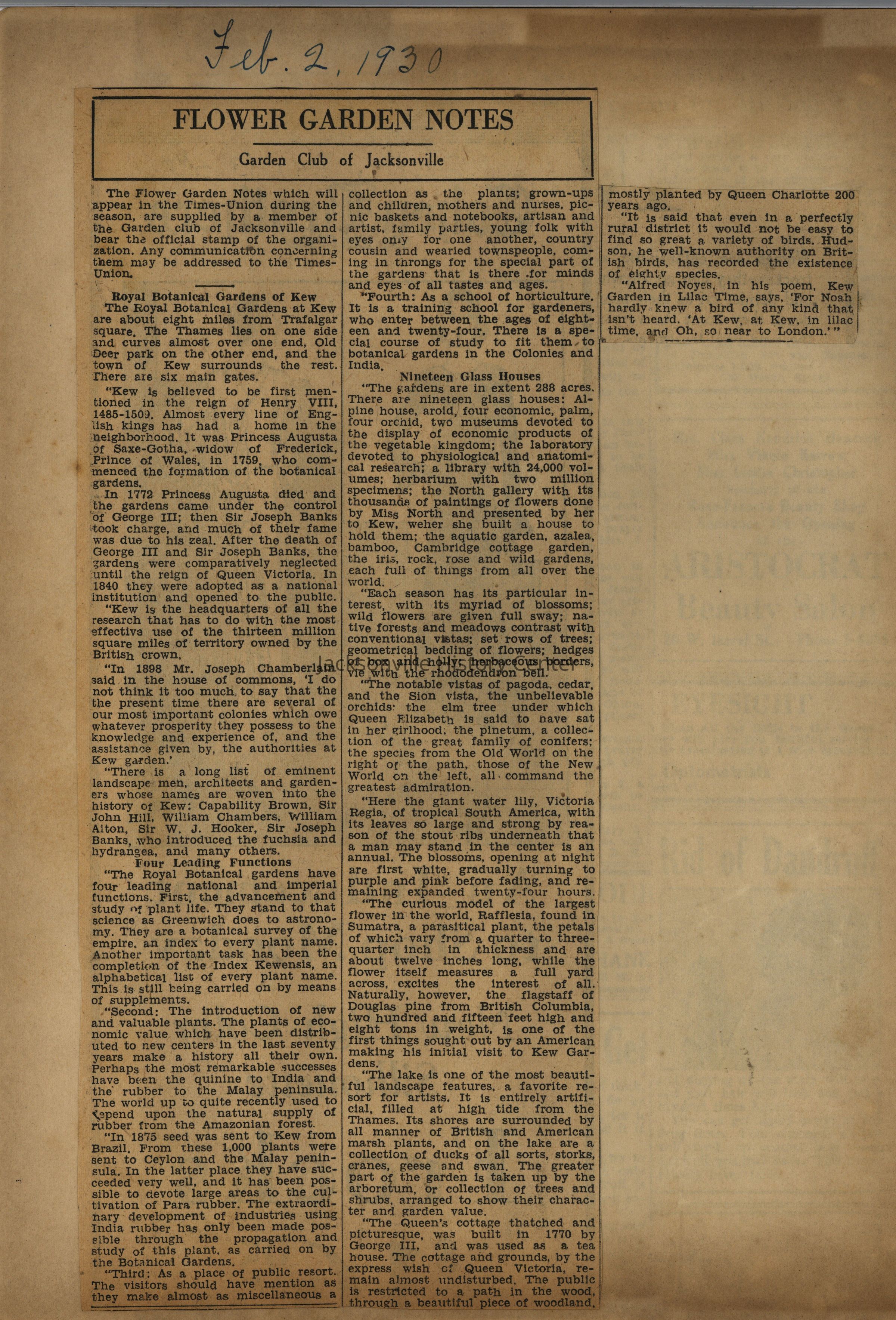 Mimosa Circle, Garden Club of Jacksonville, Florida.Notes