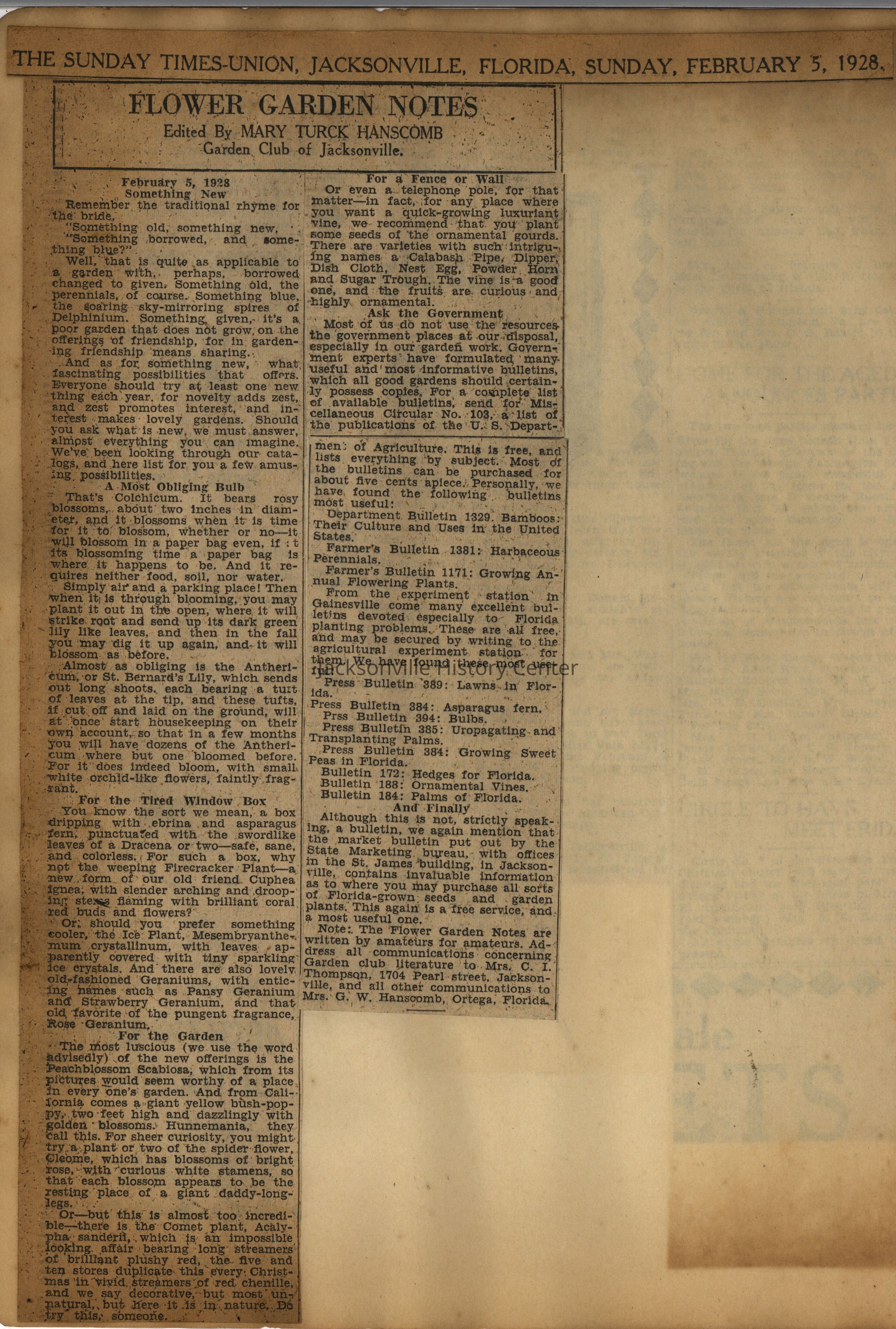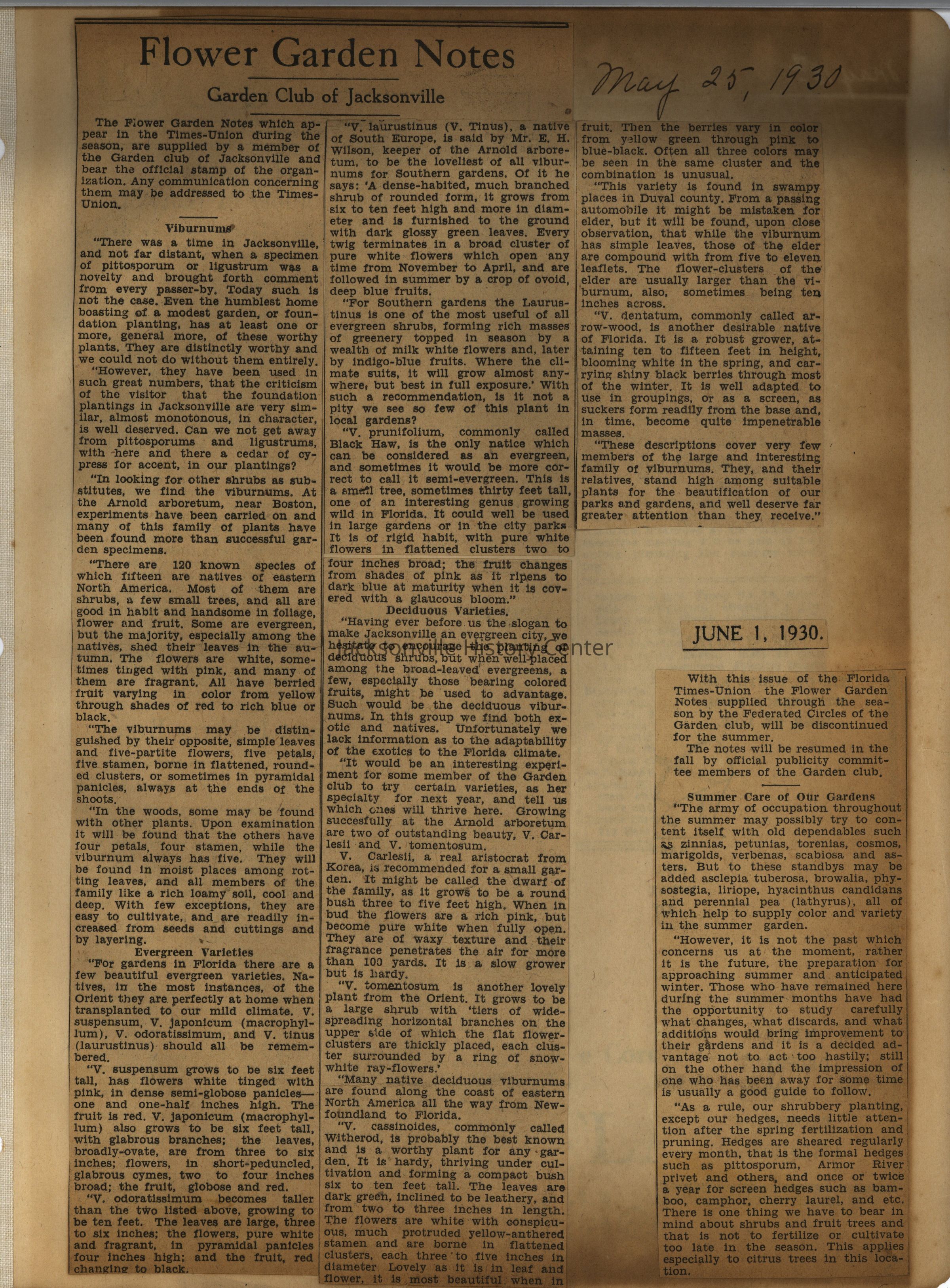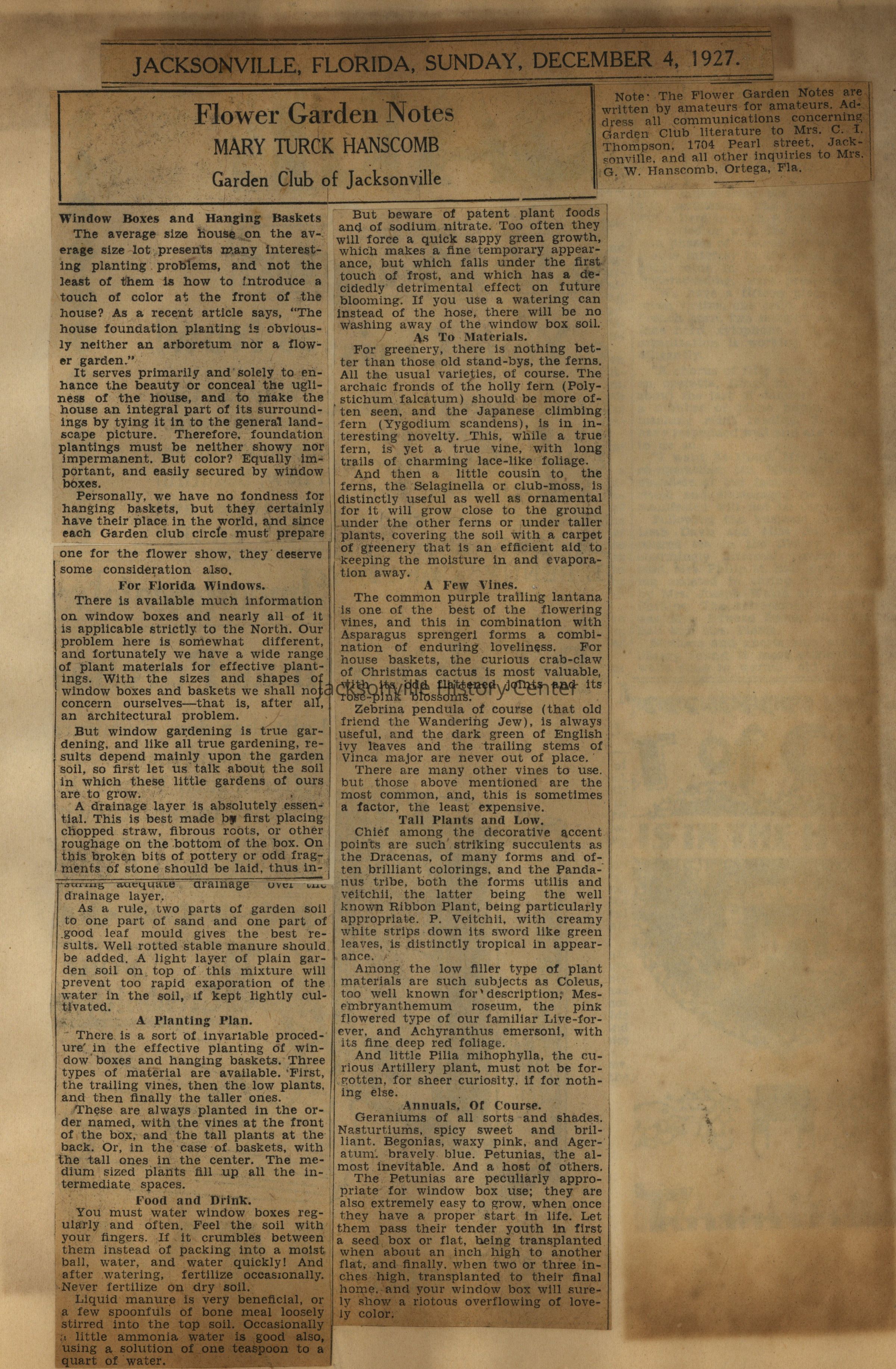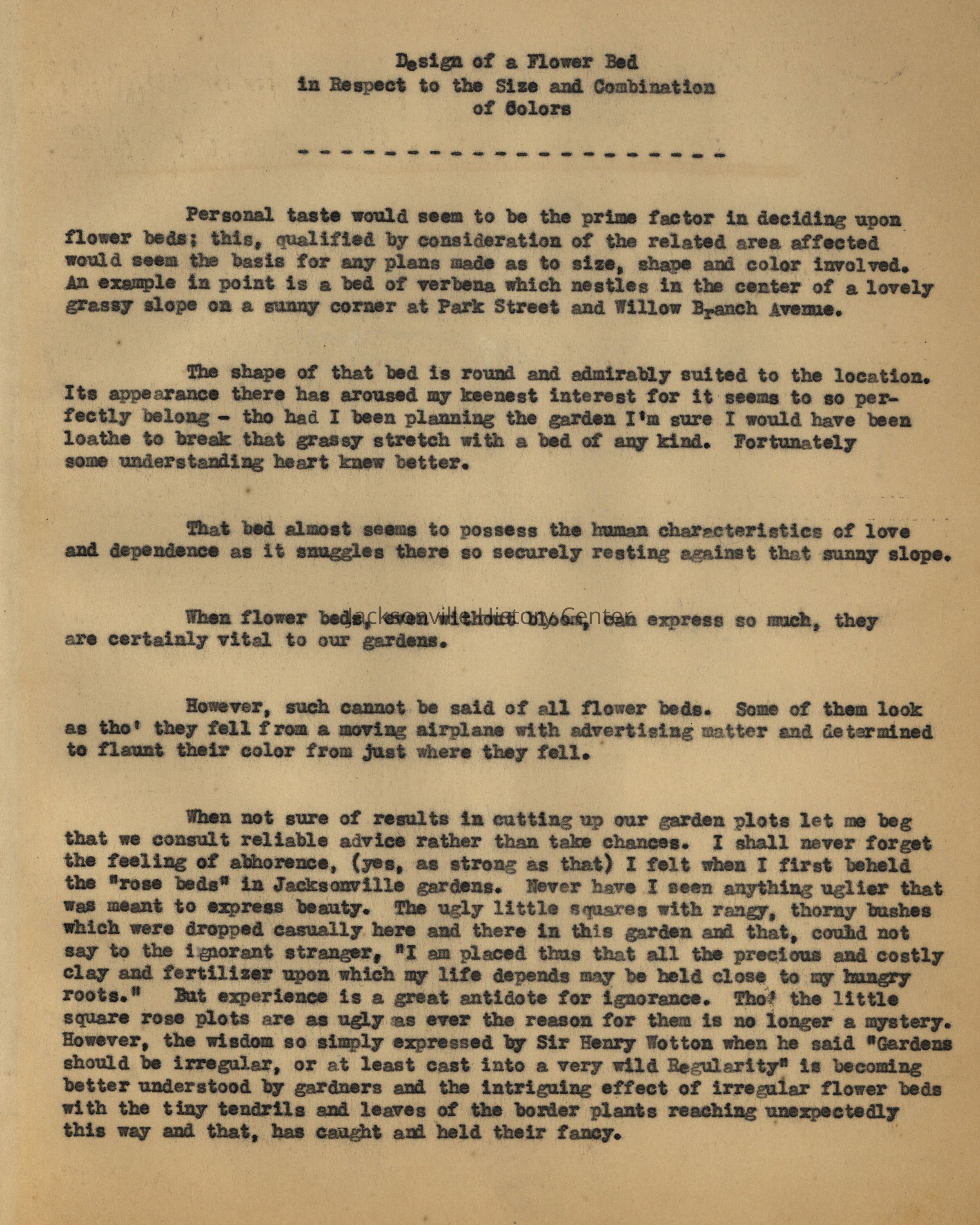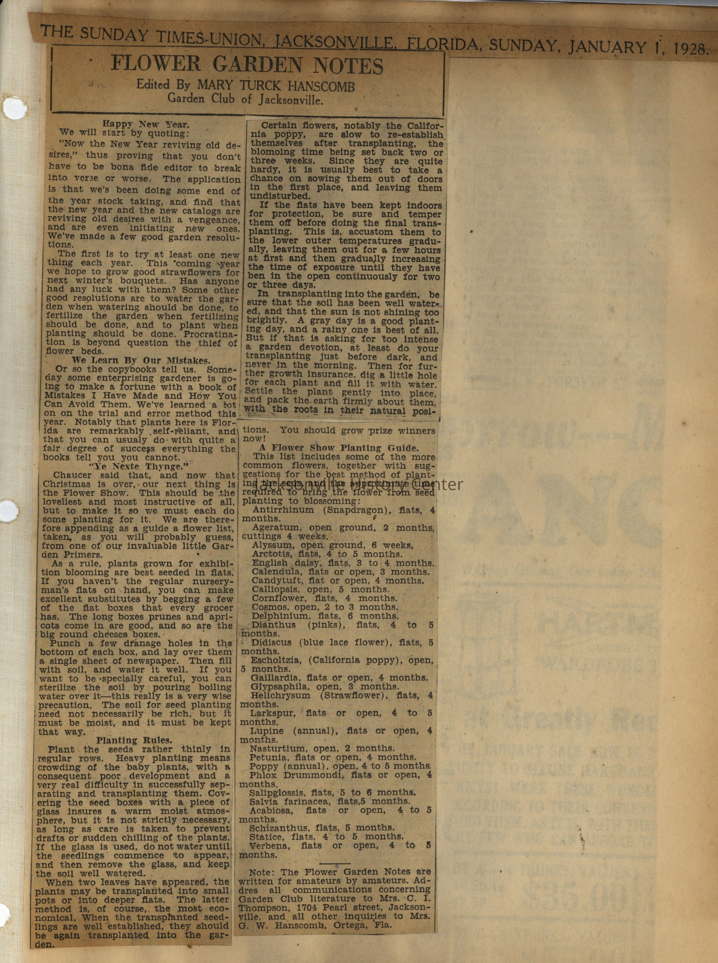 Mimosa Circle, Garden Club of Jacksonville, Florida.Notes