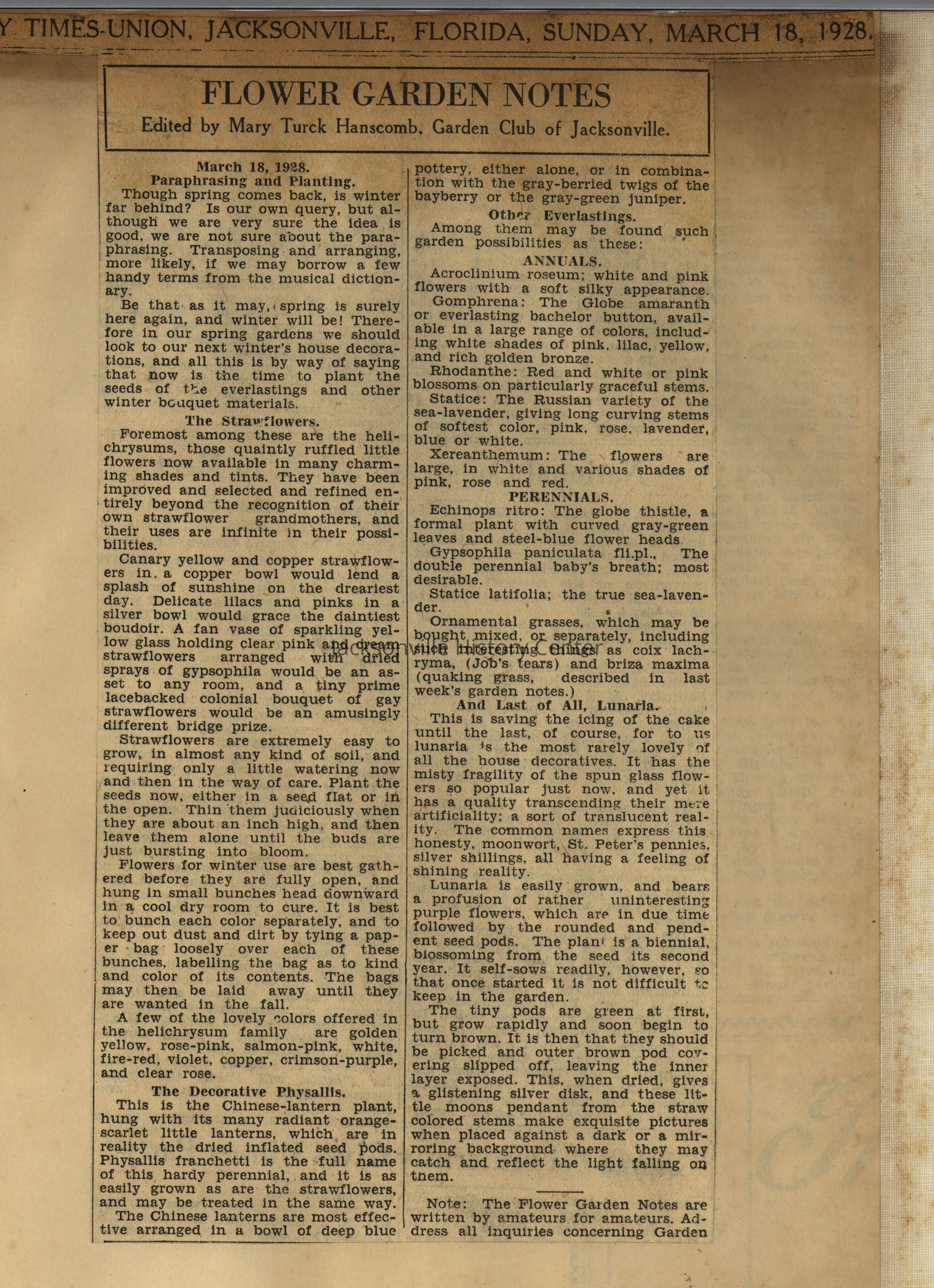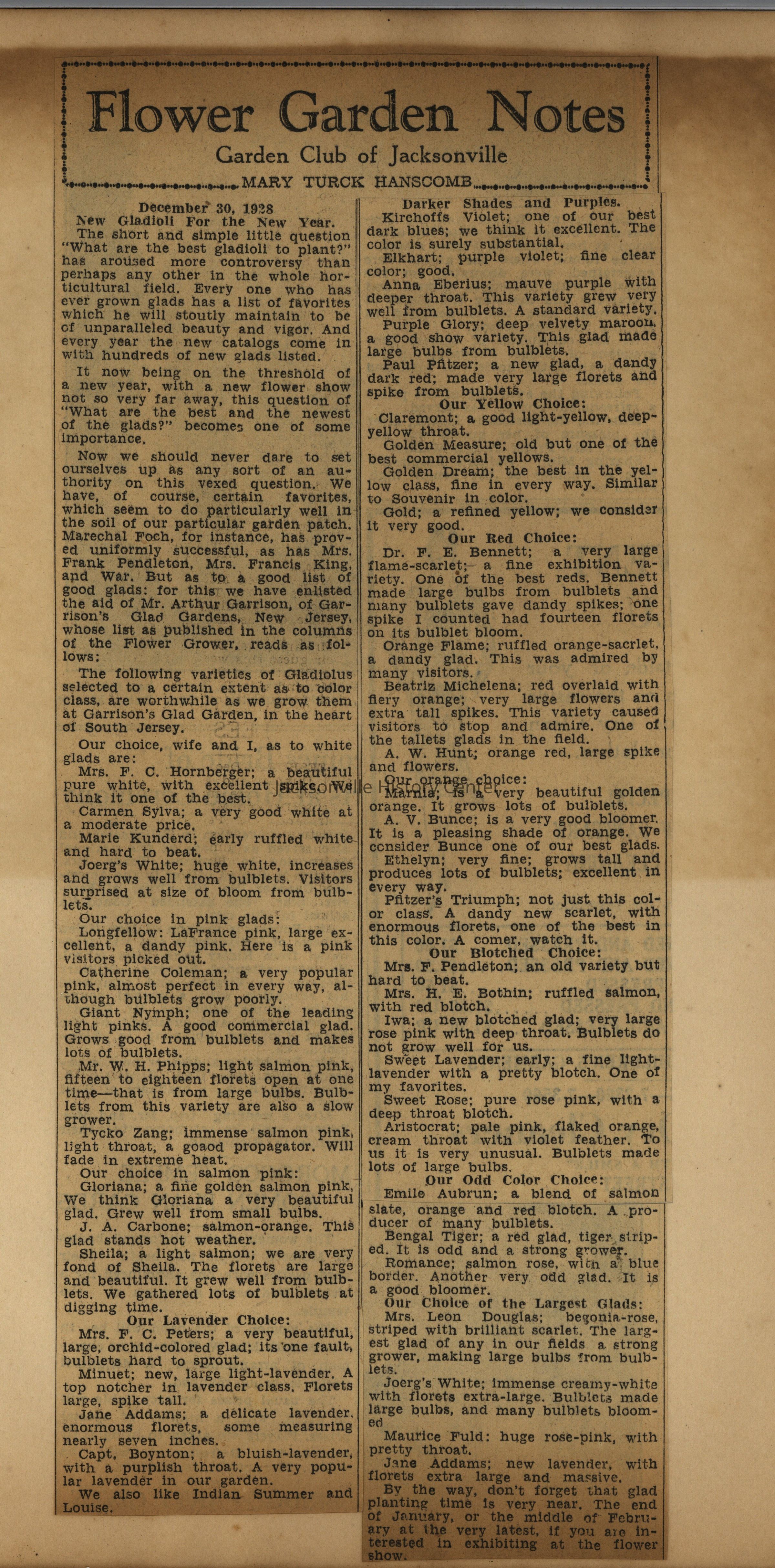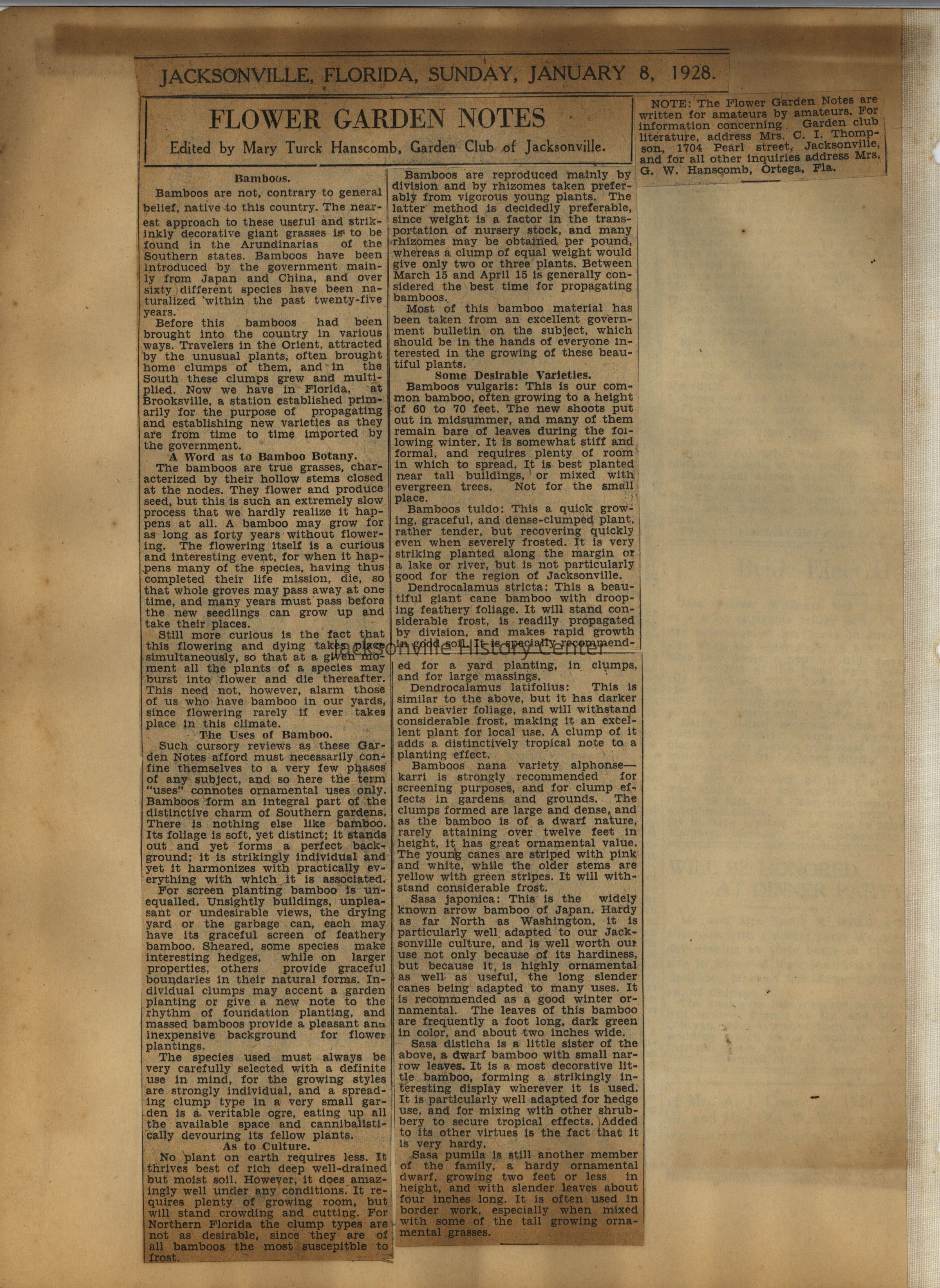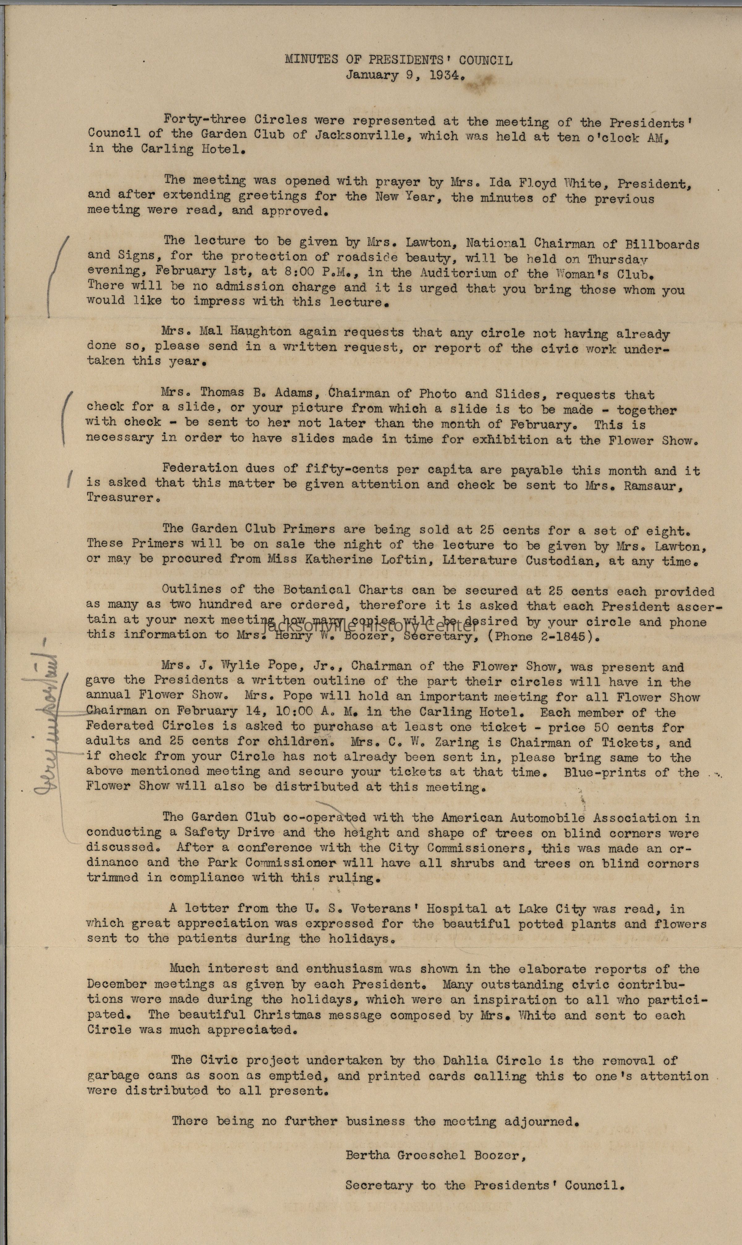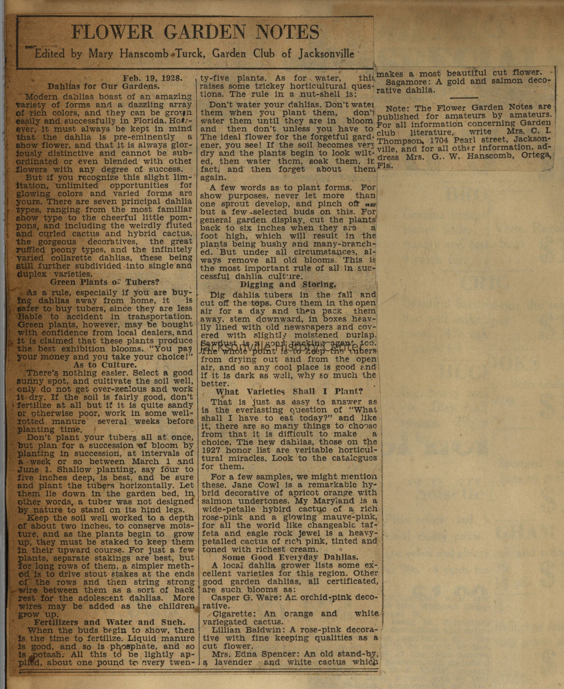 Mimosa Circle, Garden Club of Jacksonville, Florida.Notes